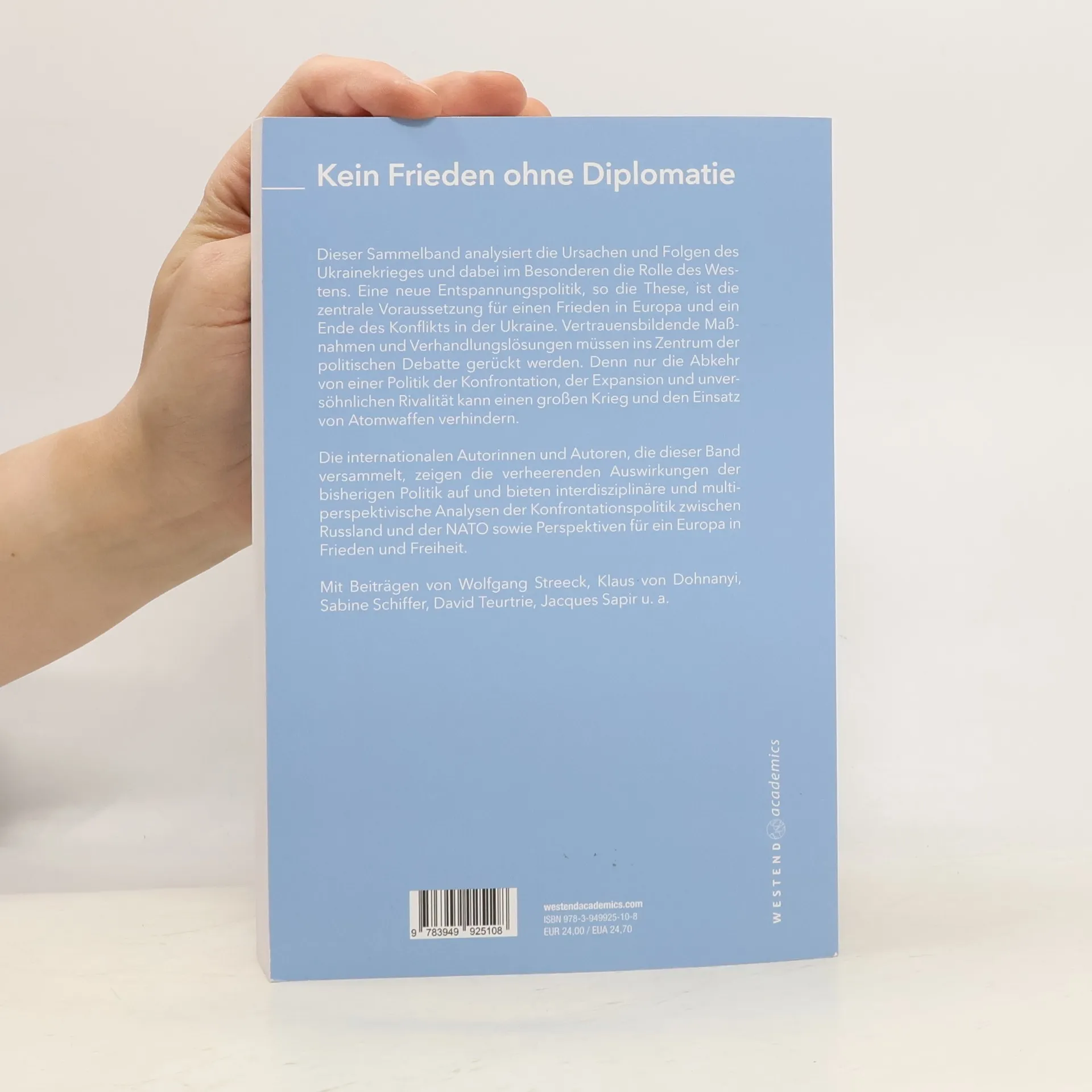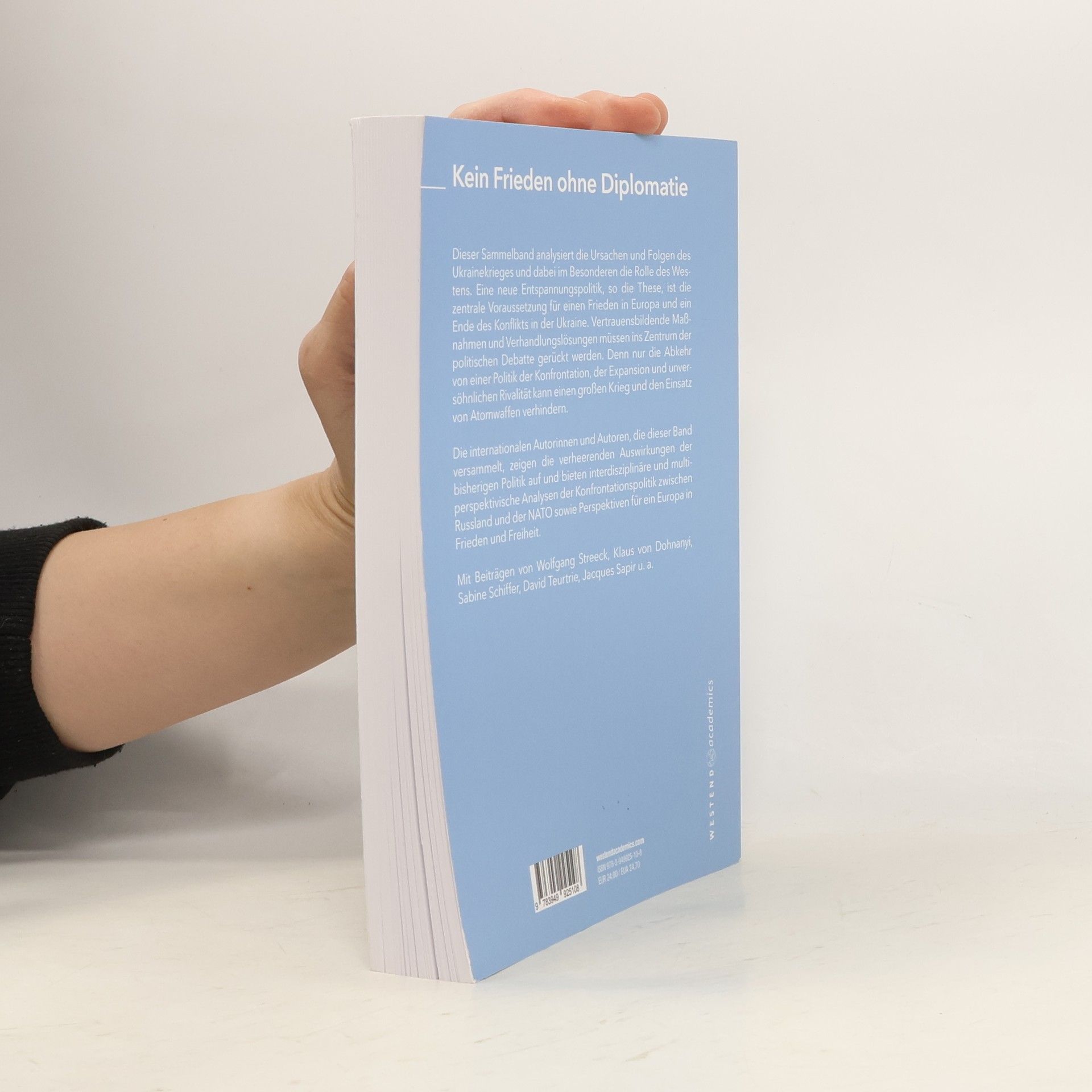 Dieser Sammelband analysiert die Ursachen und Folgen des Ukrainekrieges und dabei im Besonderen die Rolle des Westens. Eine neue Entspannungspolitik, so die These, ist die zentrale Voraussetzung für einen Frieden in Europa und ein Ende des Konfl ikts in der Ukraine. Vertrauensbildende Maßnahmen und Verhandlungslösungen müssen ins Zentrum der politischen Debatte gerückt werden. Denn nur die Abkehr von einer Politik der Konfrontation, der Expansion und unversöhnlichen Rivalität kann einen großen Krieg und den Einsatz von Atomwaffen verhindern. Die internationalen Autorinnen und Autoren, die dieser Band versammelt, zeigen die verheerenden Auswirkungen der bisherigen Politik auf und bieten interdisziplinäre und multiperspektivische Analysen der Konfrontationspolitik zwischen Russland und der NATO sowie Perspektiven für ein Europa in Frieden und Freiheit. Mit Beiträgen von Wolfgang Streeck, Klaus von Dohnanyi, Sabine Schiffer, David Teurtrie, Jacques Sapir u. a.