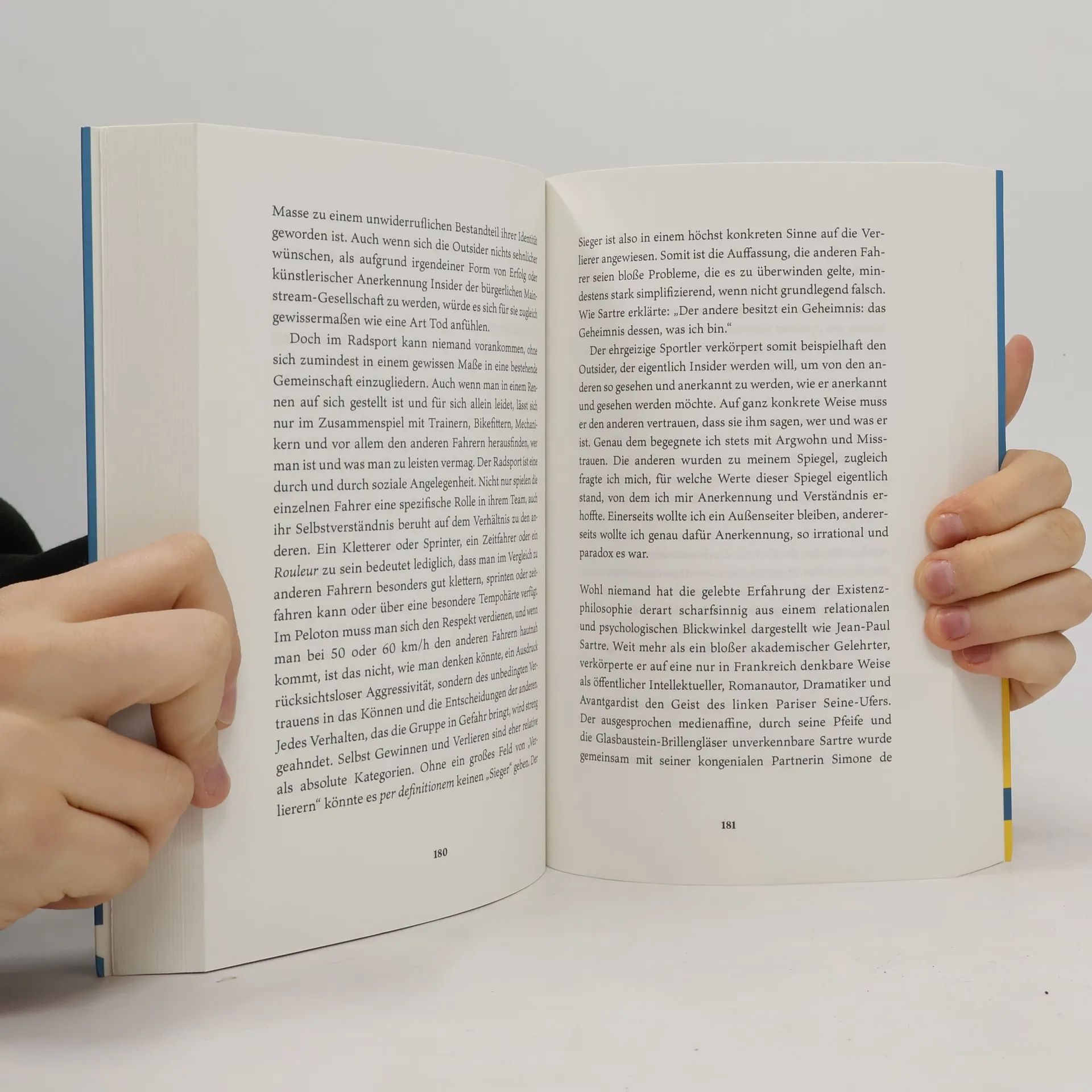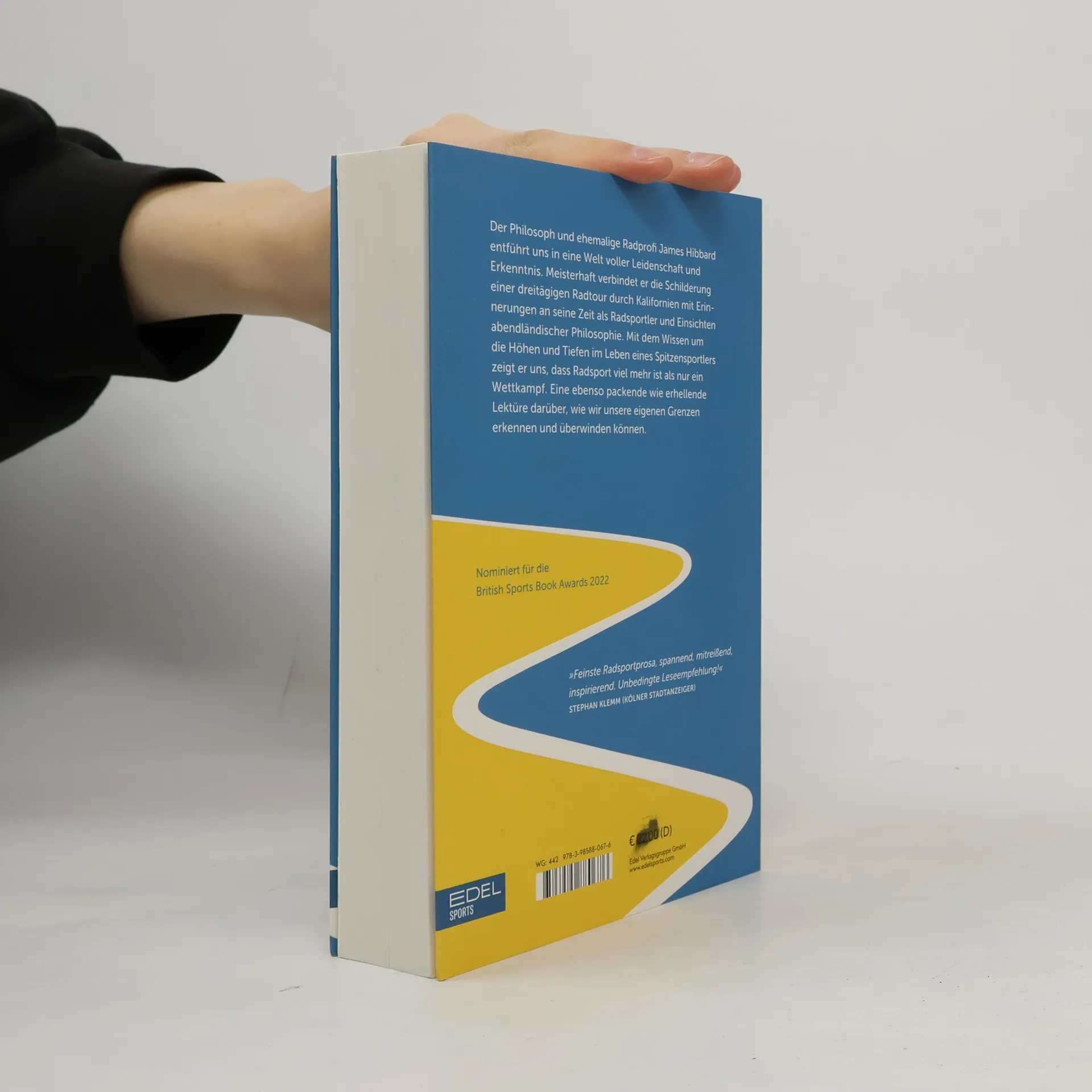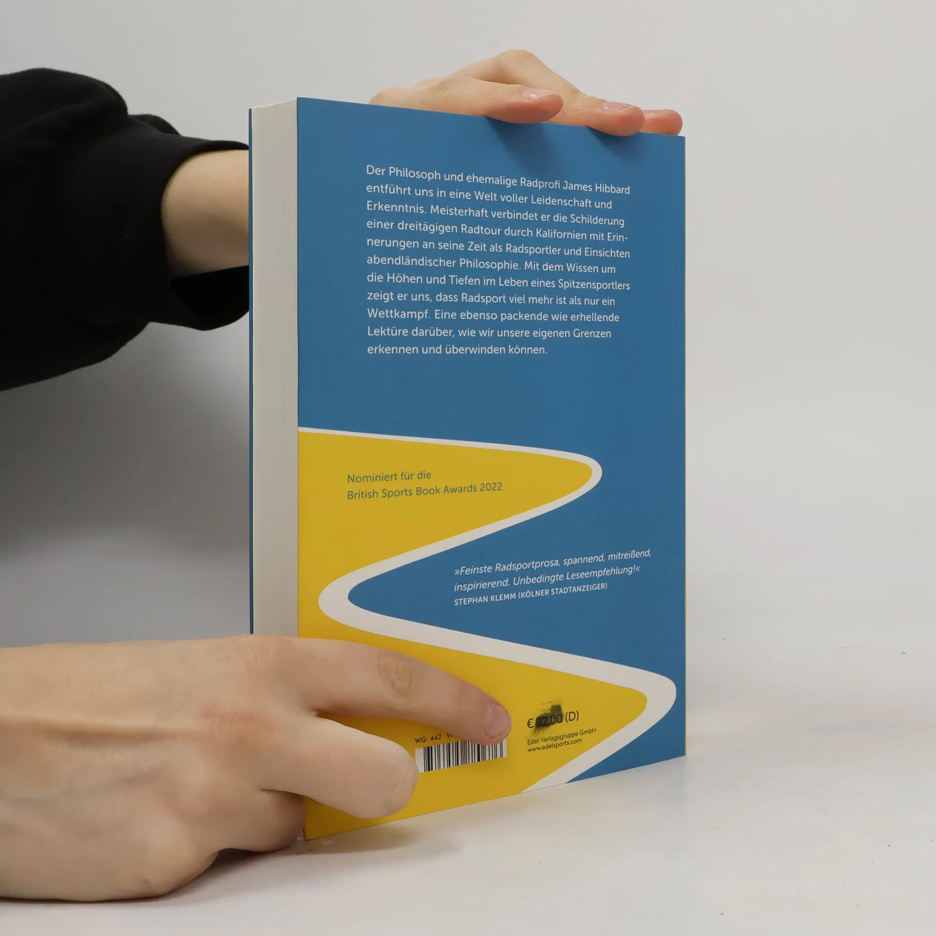 Der ehemalige Radprofi und promovierte Philosoph James Hibbard erzählt in seinem Buch poetisch und literarisch von der Entdeckung des Fahrrads als Lebenselixier. Eingerahmt von der Schilderung einer dreitägigen Radtour mit zwei ehemaligen Profikollegen durch Kalifornien beschreibt er seine Entwicklung vom Amateur zum Profi, seine Erlebnisse als aktiver Fahrer und seine philosophischen Erkenntnisse. Das Buch ist einerseits eine Erzählung über die Liebe zum Radsport und die Erlebnisse, die er bieten kann, andererseits ein Streifzug durch 2500 Jahre abendländischer Philosophie. Breiten Raum nehmen auch die Aspekte des Dopings und die Verurteilung des Sportbetrugs als ethisch nicht tolerierbares Verbrechen ein, eindrucksvoll geschildert aus der Innensicht eines Profis. Offen schildert der Autor auch seine Depressionen und wie ihm Radsport und Philosophie geholfen haben, diese zu überwinden. „Feinste Radsport-Prosa, anziehend und mitreißend. Unbedingte Leseempfehlung!“ Stephan Klemm (Kölner Stadtanzeiger)