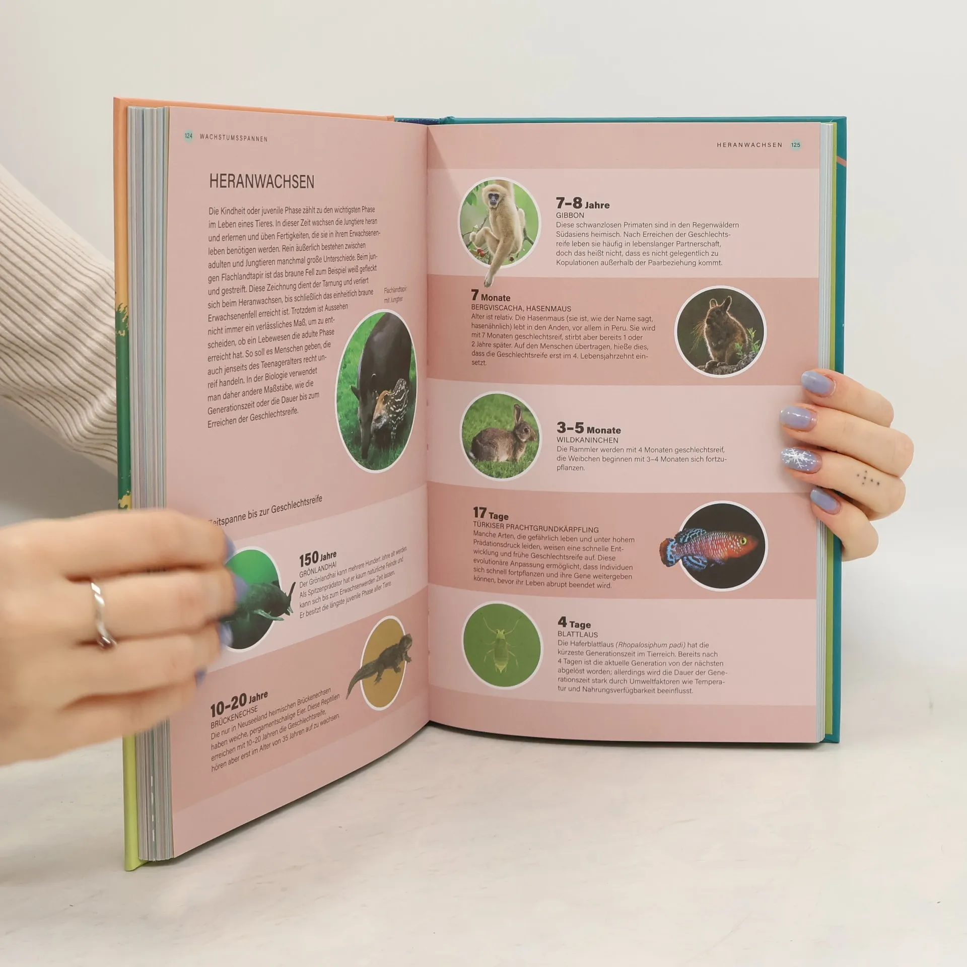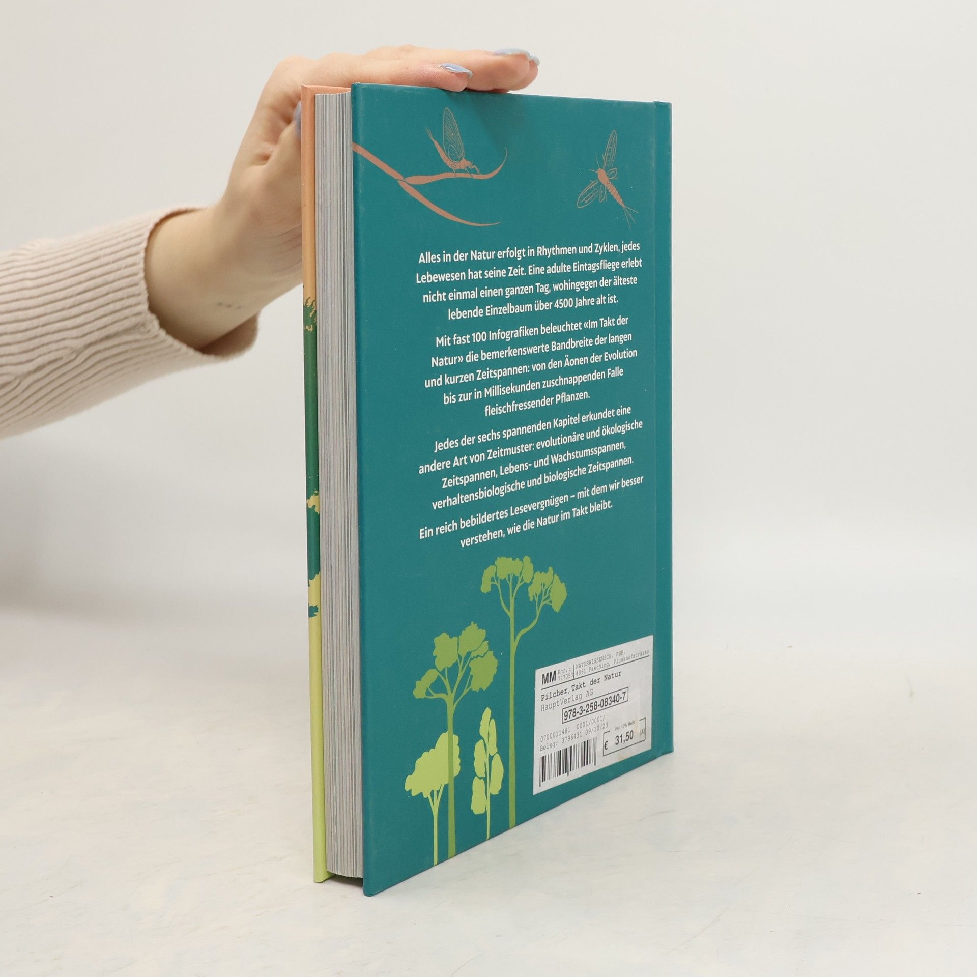 Die faszinierende Vielfalt der Zeitspannen in der Natur. Warum Koalas lange schlafen: Mit diesem Buch verstehen wir, wie die Natur im Takt bleibt. Ein Buch zum Staunen und Schmökern. Alles in der Natur erfolgt in Rhythmen und Zyklen, jedes Lebewesen hat seine Zeit. Eine adulte Eintagsfliege erlebt nicht einmal einen ganzen Tag, wohingegen der älteste lebende Einzelbaum über 4500 Jahre alt ist. Der Grönlandhai erlangt erst mit 150 Jahren die Geschlechtsreife, während der Axolotl lebenslang seine juvenile Form behält. Mit fast 100 außergewöhnlichen Infografiken und Diagrammen beleuchtet «Im Takt der Natur» die bemerkenswerte Bandbreite der langen und kurzen Zeitspannen in der Natur: von den Äonen der Evolution bis zur in Millisekunden zuschnappenden Falle fleischfressender Pflanzen. Jedes der sechs spannenden Kapitel erkundet eine andere Art von Zeitmuster: evolutionäre und ökologische Zeitspannen, Lebens- und Wachstumsspannen, verhaltensbiologische und biologische Zeitspannen. Vom Lebenszyklus unsterblicher Quallen bis zum Massensterben der Korallen – Helen Pilcher greift in diesem unterhaltsamen Buch hochaktuelle und faszinierende Themen auf. Ein reich bebildertes Lesevergnügen – mit dem wir besser verstehen, wie die Natur im Takt bleibt