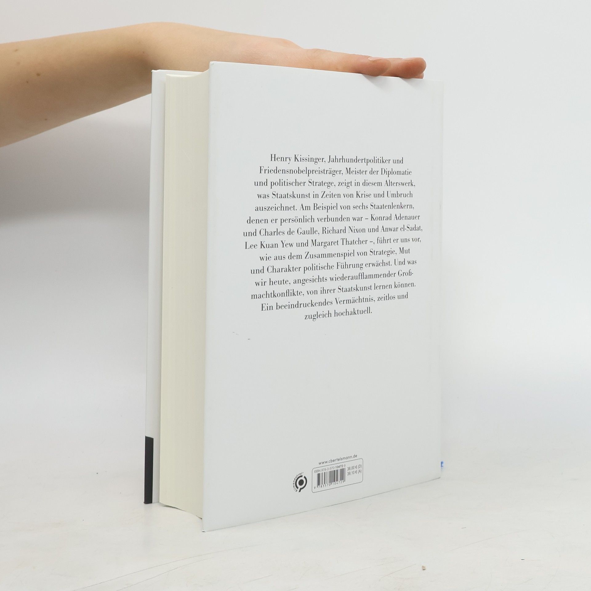 Der Bestseller des Jahrhundertpolitikers (1923 bis 2023) jetzt im Paperback Henry Kissinger, Jahrhundertpolitiker und Friedensnobelpreisträger, Meister der Diplomatie und politischer Stratege, zeigt in diesem Alterswerk, was Staatskunst in Zeiten von Krise und Umbruch auszeichnet. Am Beispiel von sechs Staatenlenkern, denen er persönlich verbunden war – Konrad Adenauer und Charles de Gaulle, Richard Nixon und Anwar el-Sadat, Lee Kuan Yew und Margaret Thatcher –, führt er uns vor Augen, wie aus dem Zusammenspiel von Strategie, Mut und Charakter politische Führung erwächst. Und was wir heute, angesichts wiederaufflammender Großmachtkonflikte, von ihrer Staatskunst lernen können. Ein beeindruckendes Vermächtnis, zeitlos und zugleich hochaktuell.