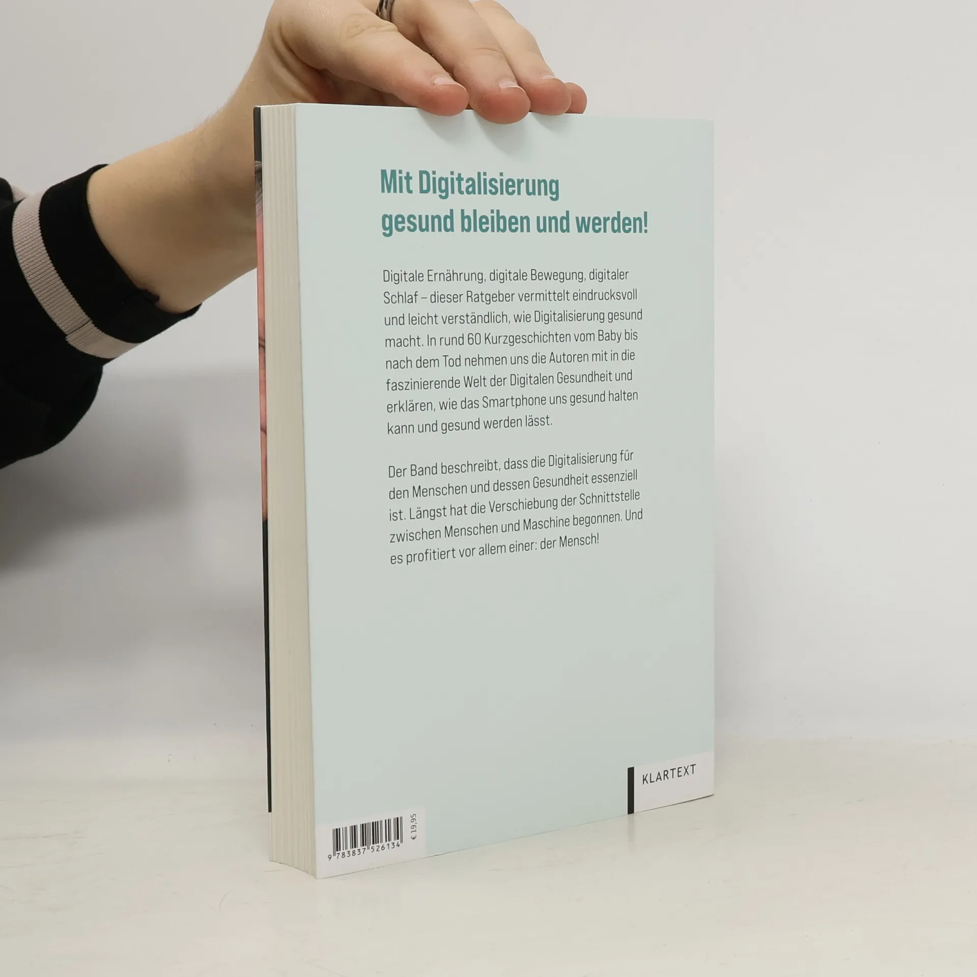 Digitale Ernährung, digitale Bewegung, digitaler Schlaf – dieser Ratgeber vermittelt eindrucksvoll und leicht verständlich, wie Digitalisierung gesund macht. In rund 60 Kurzgeschichten vom Baby bis nach dem Tod nehmen uns die Autoren mit in die faszinierende Welt der digitalen Gesundheit und erklären, wie das Smartphone uns gesund halten kann und gesund werden lässt. Der Band beschreibt, dass die Digitalisierung für 83 Millionen Menschen und deren Gesundheit essenziell ist. Längst hat die Verschiebung der Schnittstelle zwischen Menschen und Maschine begonnen. Und es profitiert vor allem einer: der Mensch!