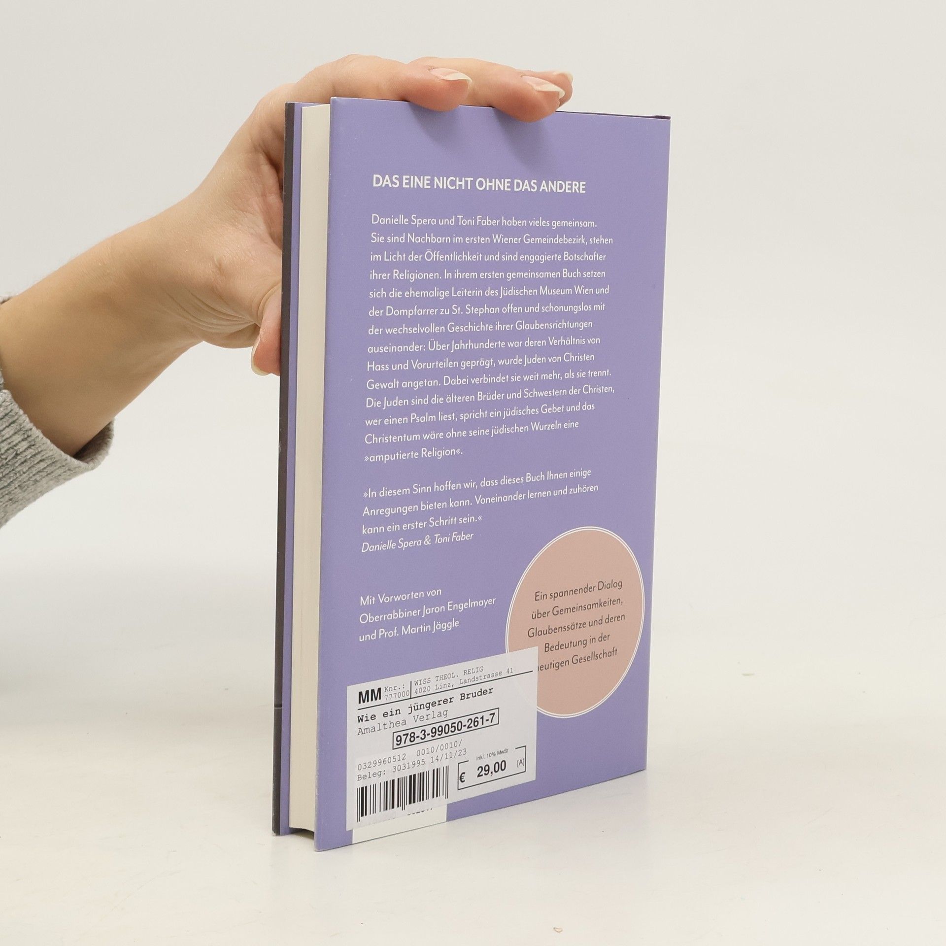 DAS EINE NICHT OHNE DAS ANDERE Danielle Spera und Toni Faber haben vieles gemeinsam. Sie sind Nachbarn im ersten Wiener Gemeindebezirk, stehen im Licht der Öffentlichkeit und sind engagierte Botschafter ihrer Religionen. In ihrem ersten gemeinsamen Buch setzen sich die ehemalige Leiterin des Jüdischen Museum Wien und der Dompfarrer zu St. Stephan offen und schonungslos mit der wechselvollen Geschichte ihrer Glaubensrichtungen auseinander: Über Jahrhunderte war deren Verhältnis von Hass und Vorurteilen geprägt, wurde Juden von Christen Gewalt angetan. Dabei verbindet sie weit mehr, als sie trennt. Die Juden sind die älteren Brüder und Schwestern der Christen, wer einen Psalm liest, spricht ein jüdisches Gebet und das Christentum wäre ohne seine jüdischen Wurzeln eine »amputierte Religion«.