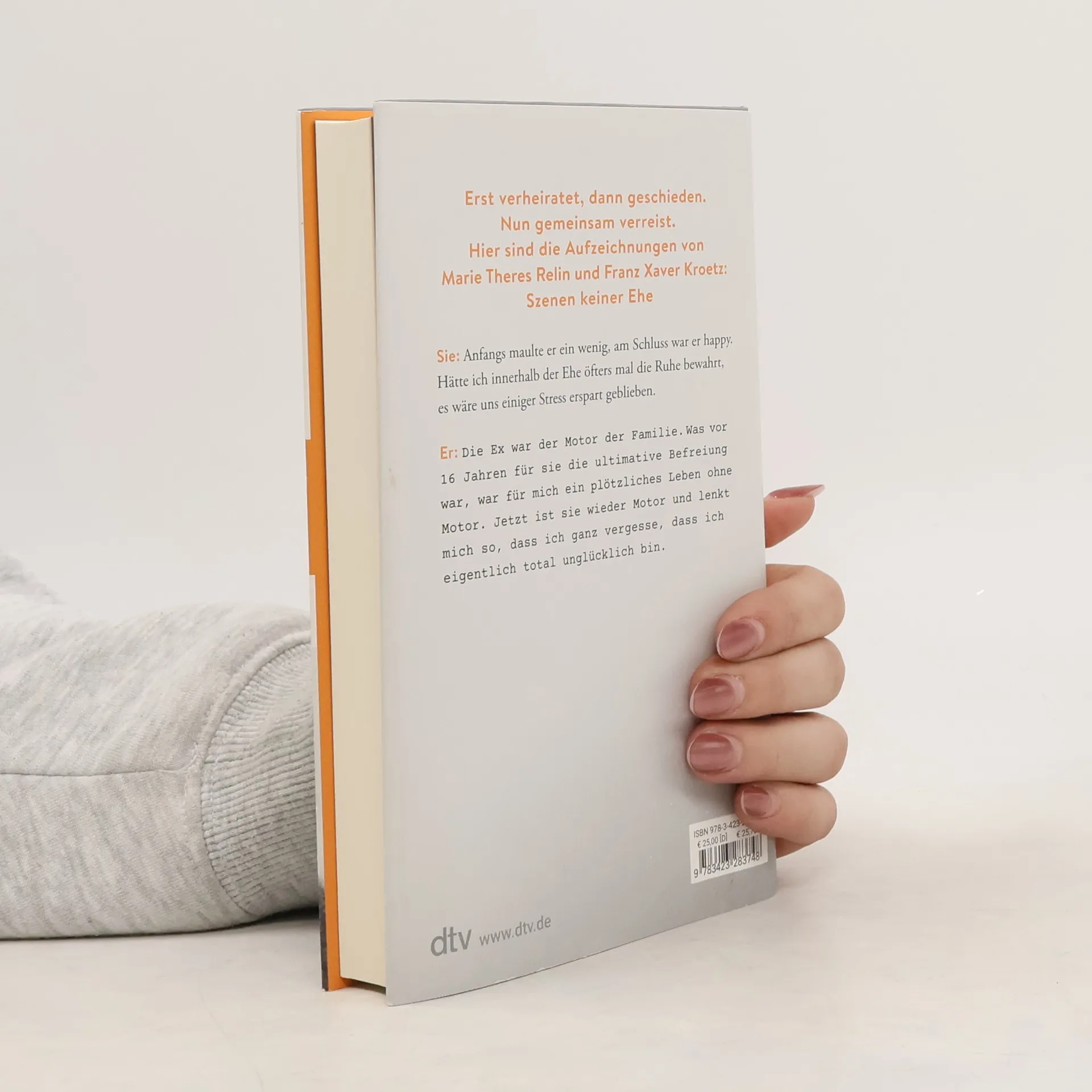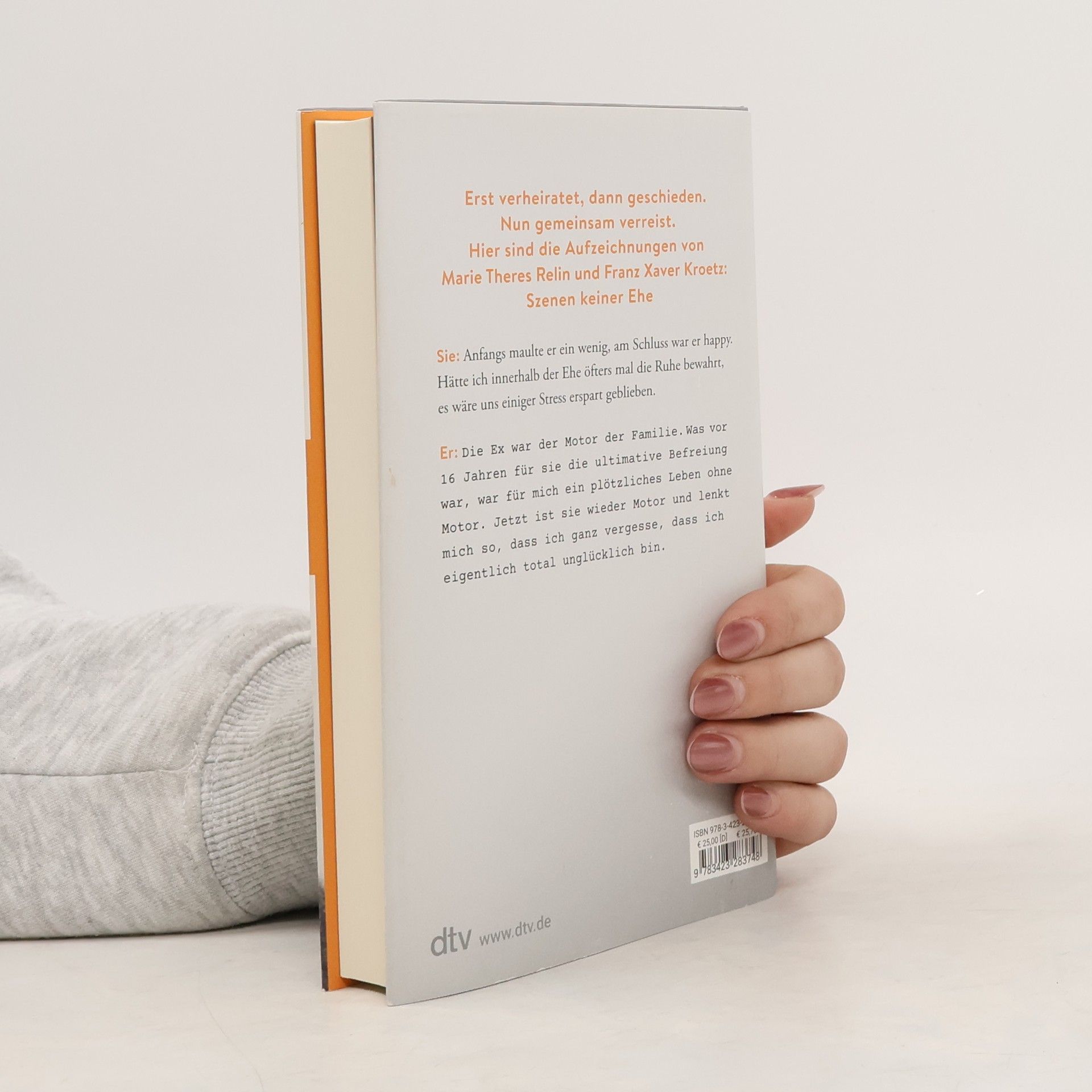 Wenn aus einer langen Beziehung Literatur wird Erst verheiratet, dann geschieden. Nun gemeinsam verreist. Hier sind die Aufzeichnungen von Marie Theres Relin und Franz Xaver Kroetz: Szenen keiner Ehe Es ist der Wunsch von Franz Xaver Kroetz, noch einmal mit seiner Ex-Frau einige Wochen auf Teneriffa zu verbringen, wo sie lange zusammen gelebt haben. Marie Theres Relin willigt ein. Und sie vereinbaren, dass beide getrennt aufschreiben, was ihnen in diesen zwei Monaten durch den Kopf geht. Vernarbte Wunden beginnen wieder zu jucken, alte Zuneigung erwacht. Sie kämpft mit Rückschlägen als Schauspielerin und hat Existenzsorgen, er plagt sich mit dem Alter und als Dramatiker, schafft es aber, eine grandiose Figur zu entwickeln: „ich“. So stark, so beklemmend, so kurzweilig wurde lange nicht über die Paarbeziehung nachgedacht und geschrieben. Wir wissen nicht, wie es weitergeht mit den beiden, aber die Texte bleiben für immer miteinander verbunden. Sie: Anfangs maulte er ein wenig, am Schluss war er happy. Hätte ich innerhalb der Ehe öfters mal die Ruhe bewahrt, es wäre uns einiger Stress erspart geblieben. Er: Die Ex war der Motor der Familie. Was vor 16 Jahren für sie die ultimative Befreiung war, war für mich ein plötzliches Leben ohne Motor. Jetzt ist sie wieder Motor und lenkt mich so, dass ich ganz vergesse, dass ich eigentlich total unglücklich bin.
