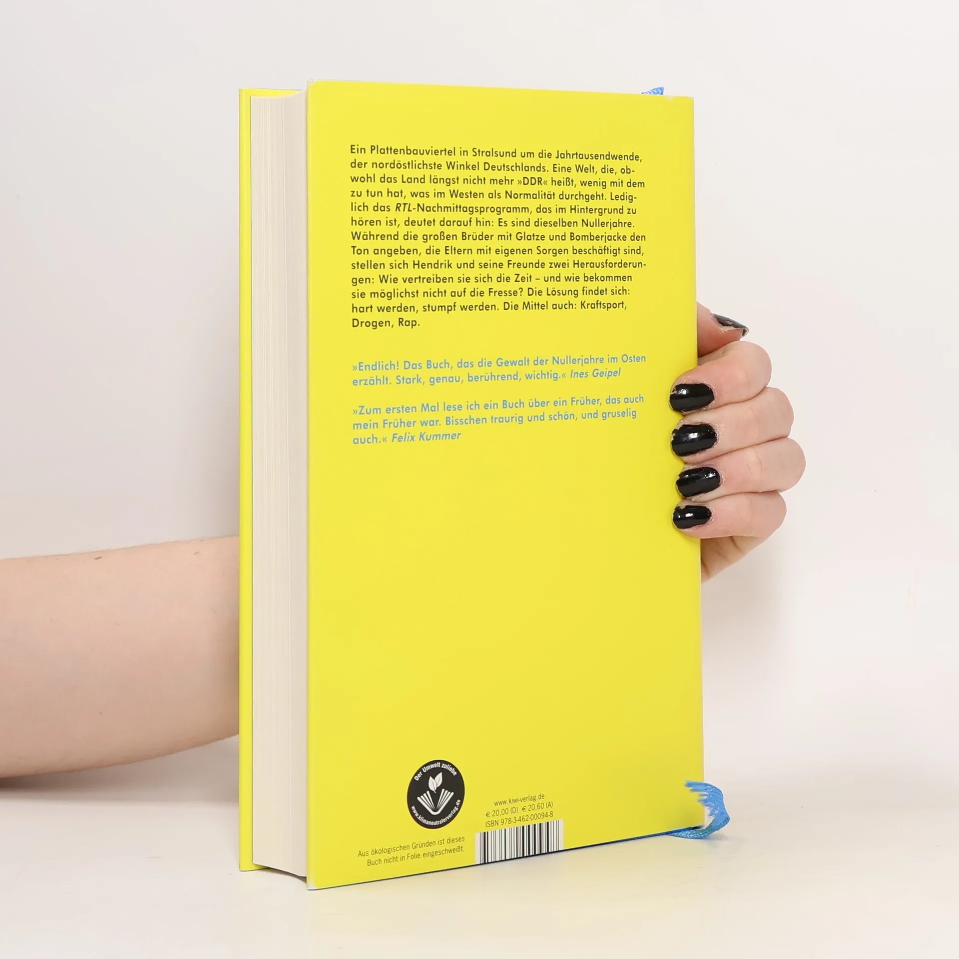 Die Nachwendezeit zwischen den Stralsunder Plattenbauten – während viele Erwachsene die Suche nach einem Platz im neuen System aufgeben, suchen sich Hendrik und seine Freunde Auswege aus der Langeweile. Und andere Vorbilder. Langsam zerfallen die Frontlinien der Baseballschlägerjahre, die Springerstiefel werden von Turnschuhen abgelöst, Rechtsrock von Gangsterrap, die Optionen bleiben dieselben: Fressen oder gefressen werden. Im Kindergarten, in der Schule und im Fußballverein haben sie gelernt, dass der Klügere nur so lange nachgibt, bis er der Dümmere ist. Und so ist das Ziel klar: härter werden. Stumpfer werden. Die Mittel finden sich – Kraftsport, Drogen, Rap. Hendrik Bolz erzählt von den ostdeutschen Nullerjahren, und erklärt uns ein Stück bundesrepublikanische Gegenwart. »Eine Mischung aus Popliteratur, Coming-of-Age-Geschichte, Memoiren und sozialwissenschaftlicher Recherche« Bayerischer Rundfunk