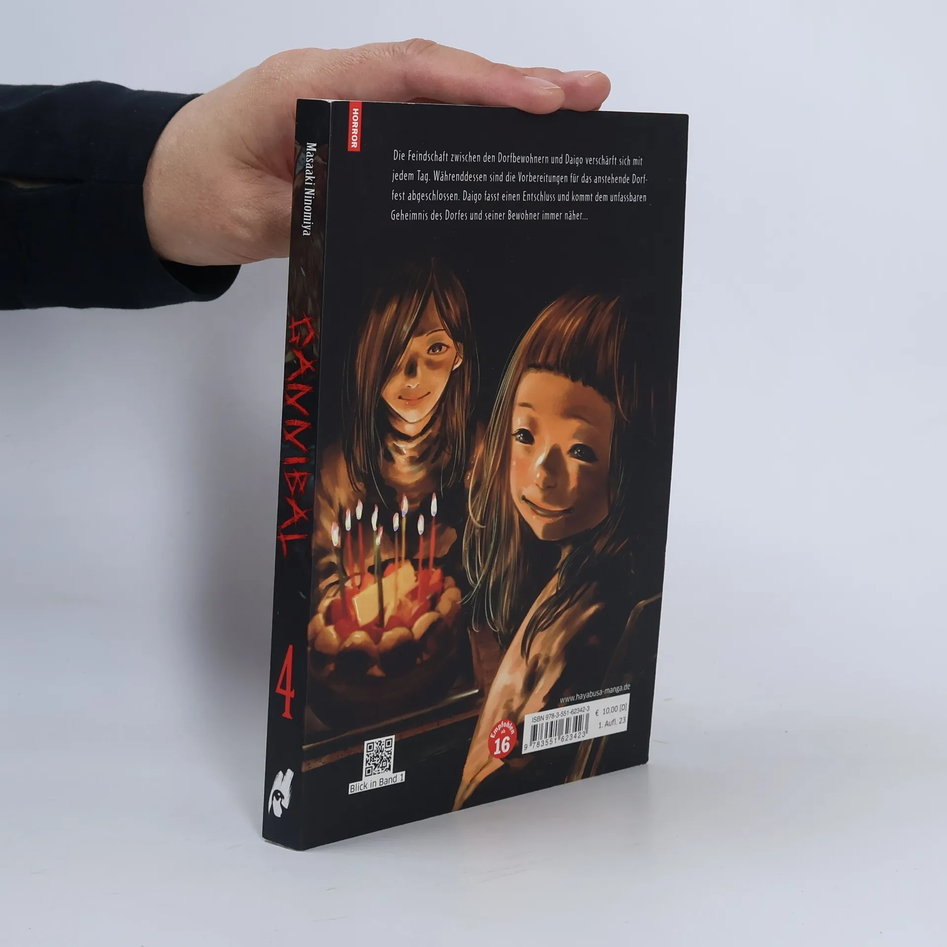 Grafisch anspruchsvoll, erzählerisch ausgeklügelt und eine permanent bis zum Bersten gespannte Atmosphäre machen GANNIBAL zu einer pechschwarz funkelnden Perle des Horror-Genres. Daigo Agawa, ein junger Polizist, wird mitsamt seiner Frau und Tochter in ein abgelegenes und verschneites Bergdorf versetzt. Die Dorfbewohner nehmen die dreiköpfige junge Familie herzlich in den Kreis ihrer Gemeinde auf, doch der Tod einer älteren Dorfbewohnerin lässt Daigo an der freundlichen Fassade der Einheimischen zweifeln… Bedrohlich, atmosphärisch und eiskalt. Dies ist der vierte Band der Serie. Weitere Informationen: - Abgeschlossen in 13 Bänden
