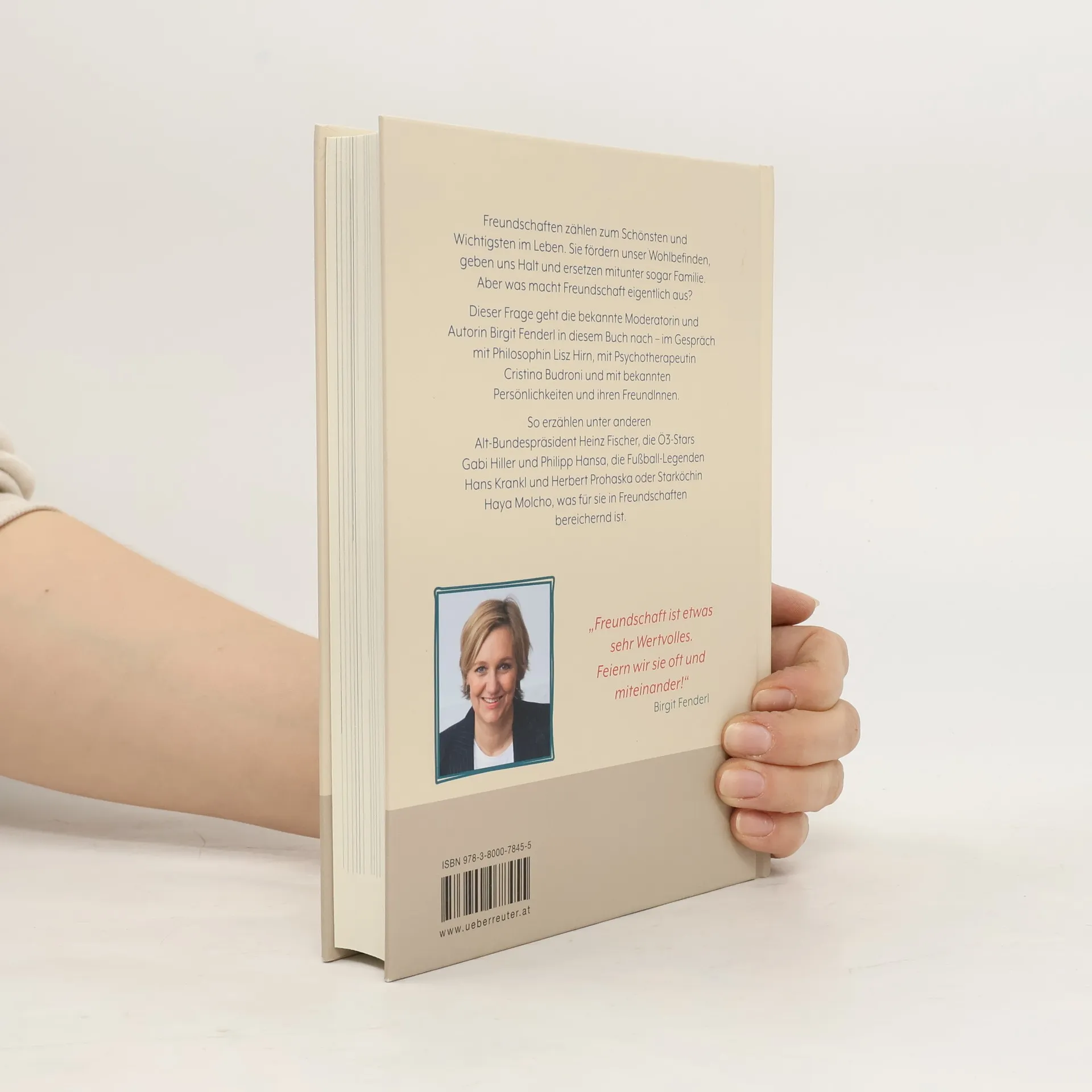 Vom Wert der Freundschaft für unser Leben Altbundespräsident Heinz Fischer erinnert sich an die gemeinsame Volkschulzeit im Nachkriegs-Wien mit seinem Freund John Sailer. Hans Krankl und Herbert Prohaska erklären, wie sie trotz der Gegnerschaft zwischen Rapid und Austria ein Leben lang befreundet blieben. Die Ö3-Stars Gabi Hiller und Philip Hansa philosophieren über platonische Freundschaften zwischen Mann und Frau. Im Gespräch mit bekannten Persönlichkeiten und ihren Freund: innen geht Birgit Fenderl der Freundschaft auf die Spur. Was macht Freundschaft eigentlich aus? Welche Funktionen übernehmen Freund: innen in unserem Leben, warum ist es gar nicht so einfach, lebenslange Freundschaften aufrecht zu erhalten und wie haben Lockdown und Co unsere Freundschaften durcheinandergebracht? Mit einem Beitrag von Lisz Hirn über Freundschaft. Folgende Freundespaare sind im Buch - mit Fotos: Erika Pluhar – Anna Dangel Heinz Fischer – John Sailer Haya Molcho – Ellen Lewis Hans Krankl – Herbert Prohaska Anneliese Rohrer – Susan Buckland Birgit Braunrath – Guido Tartarotti Philipp Hansa – Gabi Hiller Birgit Denk – Alexandra Barcelli Paul Sevelda – Uschi Denison Hannah Lessing – Michaela Ernst Markus Freistätter – Susanne Auzinger Alain Weissgerber – Michael Lentsch Arman T. Riahi – Arash T. Riahi und Azadeh T. Riahi