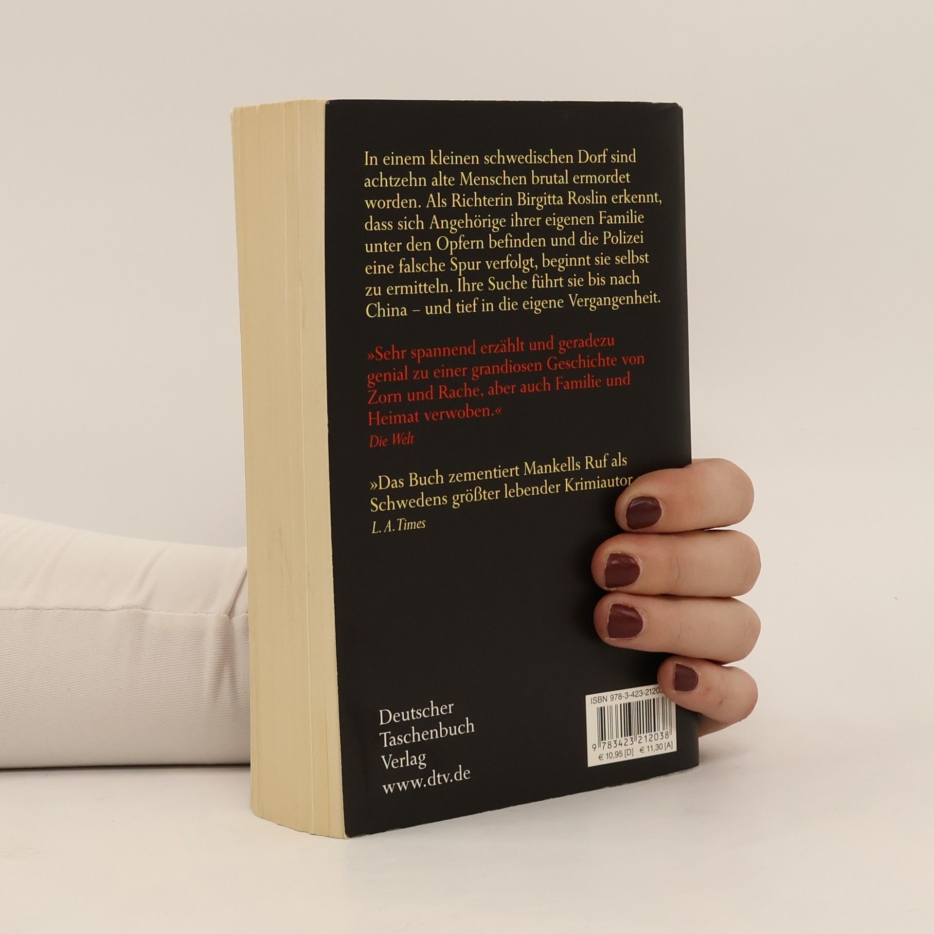 Ein grausiges Massaker An einem frostigen Januartag 2006 macht die Polizei von Hudiksvall eine entsetzliche Entdeckung. In einem kleinen Dorf sind neunzehn Menschen auf bestialische Weise ermordet worden. Die Polizei vermutet dahinter die Tat eines Wahnsinnigen. Als Richterin Birgitta Roslin in der Zeitung von der Tat liest, ist ihr sofort klar, dass die Pflegeeltern ihrer Mutter unter den Mordopfern sind. Mehr noch: Sie erkennt, dass die Polizei eine falsche Spur verfolgt, und beginnt selbst zu recherchieren. Ein Hinweis führt nach China, wo Birgitta auf grausame Machenschaften der politischen Führungselite stößt.