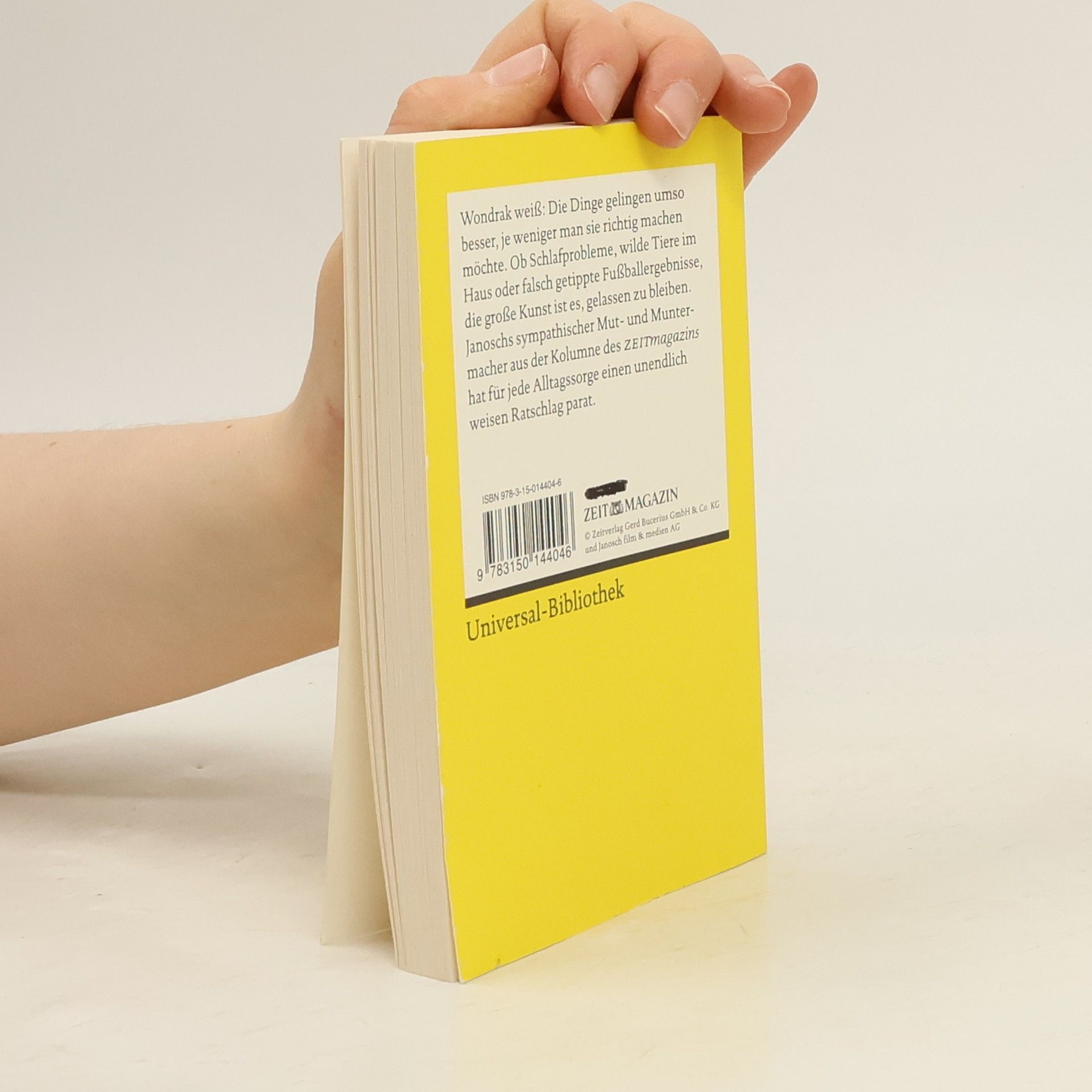 Entspannt durch’s Leben mit Wondrak Herr Wondrak weiß: Je weniger man Dinge richtig machen möchte, umso besser gelingen sie. Ob Schlafprobleme, wilde Tiere im Haus oder falsch getippte Fußballergebnisse – die große Kunst ist es, gelassen zu bleiben. Janoschs sympathischer Mutmacher aus der Kolumne des ZEITmagazins hat für jede Alltagssorge einen humorvollen Ratschlag parat. - Tipps für alle Lebenslagen: Der unendlich weise Alltagsheld aus der Kolumne des ZEITmagazins - Wondraks beste Lebensweisheiten: Mit den unverwechselbaren Illustrationen von Bestsellerautor Janosch und einem Nachwort von ZEITmagazin-Kolumnist Tillman Prüfer - Klassiker zum Sammeln: Ein neuer Janosch-Band in Reclams Universal-Bibliothek - Zum Verschenken oder Selberlesen: Mit Wondraks Weisheiten kann einen nichts aus der Ruhe bringen Einfach leichter leben Herrliche Alltagstipps von dem kleinen Philosophen in der schwarz-gelben Latzhose. Ein amüsantes Geschenkbuch für alle, die entspannt und gechillt durchs Leben gehen möchten.