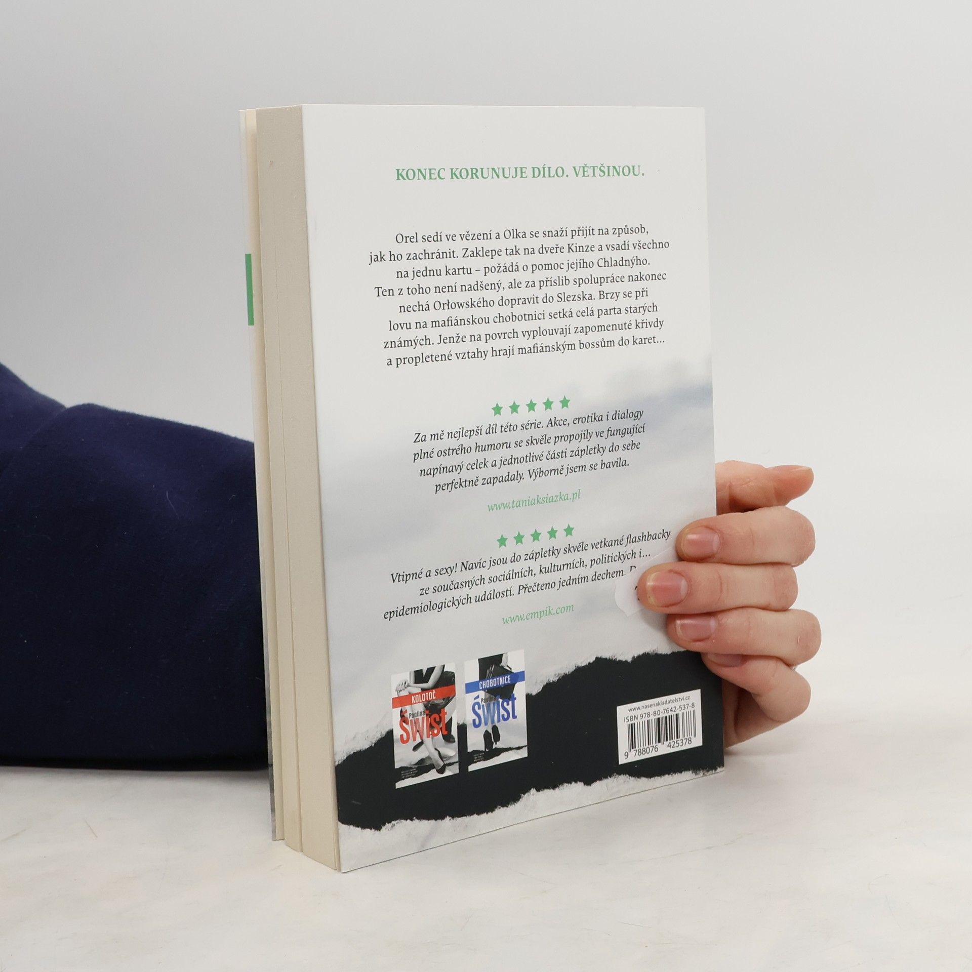 Kde jsou hranice hamižnosti? Neexistují? Anebo jen prostě nejsou vidět, když člověku zakalí zrak mlha tělesné touhy? Několik lidí o tom bude muset vážně popřemýšlet… Orla zatkla policie. Olka se kvůli němu vrací do Polska a žádá o pomoc prokurátora Łukasze Zimnického. Ten souhlasí s tím, že jí vyhoví, ale klade si jednu podmínku: Orłowski se musí stát korunním svědkem. Potíž je však v tom, že Orlovi se do toho příliš nechce. Ve Vratislavi se zase Lilka s Michałem pokouší rozkrýt tajemství sekty, jejímž hlavním úkolem je vyprat špinavé peníze pro Chobotnici. A to všechno je přitom jen špička ledovce…