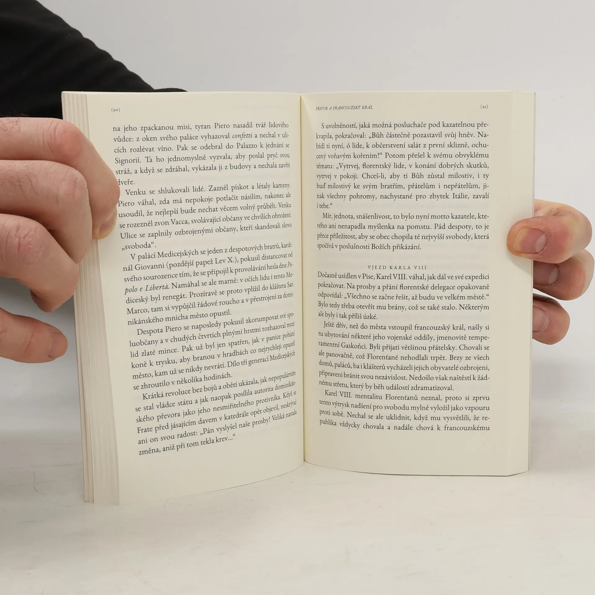 Renesanční Florencie obohatila kulturní dějiny Evropy, ale byla také místem velkých politických a duchovních konfliktů, přičemž nejdramatičtější byl spor mezi dominikánským převorem Girolamem Savonarolou a papežem Alexandrem VI. Odsouzení Savonaroly k smrti a vhození jeho popela do řeky evokuje život a smrt Jana Husa, oba proroci pravdivosti a kritici církve bývají označováni jako „předchůdci reformace“. Théophile Geisendorf-Des Gouttes, ženevský teolog a politolog, se zaměřuje na originalitu Savonaroly, přičemž je občas kritický, ale většinou se snaží porozumět motivacím dominikánského mnicha, zejména jeho fascinaci prorockými texty Bible. Geisendorf napsal své pojednání pro široké publikum, zejména pro mládež, která potřebuje příklady osobností, jež se postavily proti mocným světa. Knížka, napsaná během druhé světové války, odráží autorovu obavu o osud Evropy, kde se i ušlechtilé snahy o spravedlnost mohou zvrhnout v chaos a touha po jednotě v poslušnost vůči diktátorům. Geisendorfova nespokojenost s úrovní turistických brožurek o Florencii ho vedla k napsání průvodce, který zkoumá nejen město květů, ale i život velkého Florenťana, jehož postava může mladým lidem poskytnout povzbuzení a útěchu.