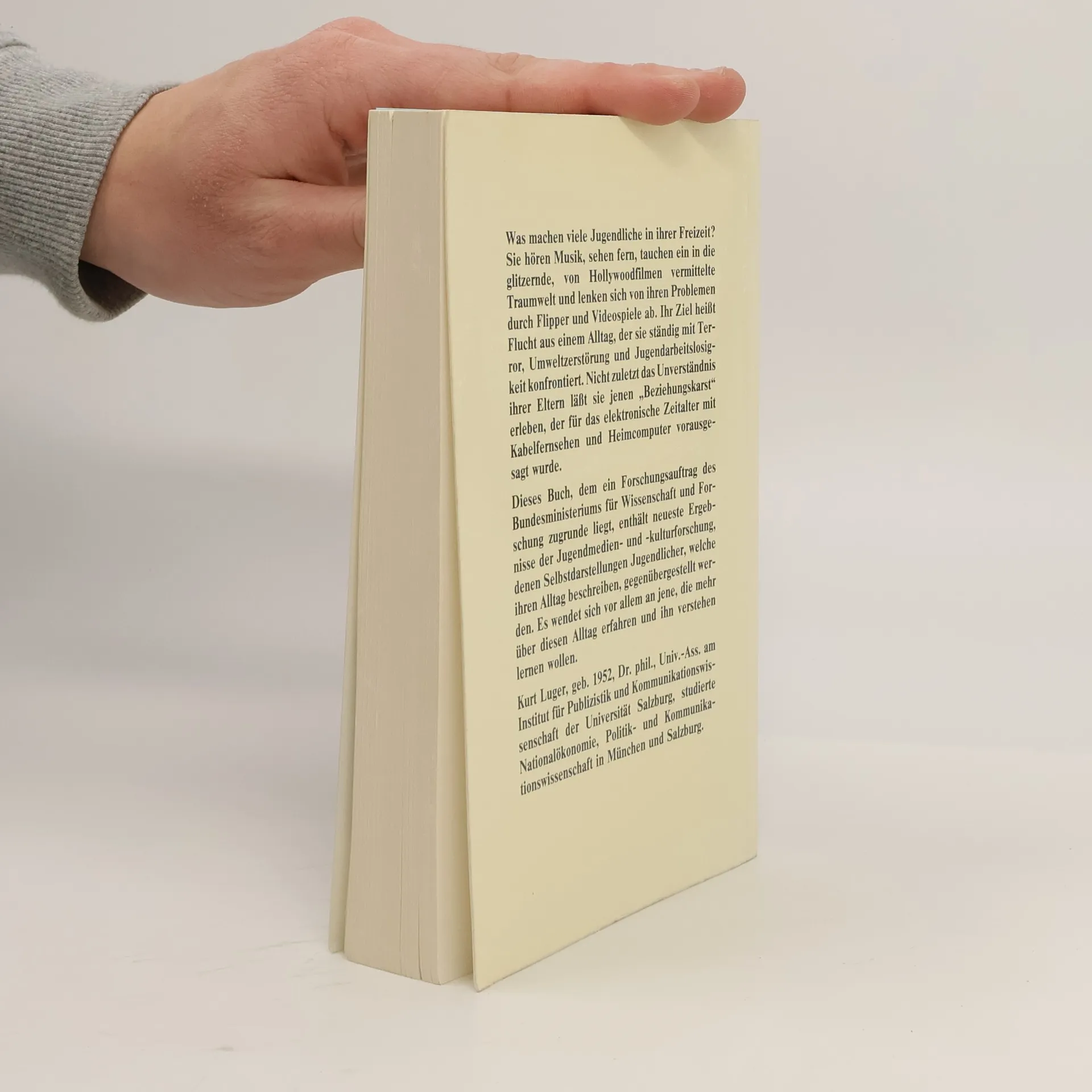 Was machen viele Jugendliche in ihrer Freizeit? Sie hören Musik, sehen fern, tauchen ein in die glitzernde, von Hollywoodfilmen vermittelte Traumwelt und lenken sich von ihren Problemen durch Flipper und Videospiele ab. Ihr Ziel heißt Flucht aus einem Alltag, der sie ständig mit Terror, Umweltzerstörung und Jugendarbeitslosigkeit konfrontiert. Nicht zuletzt das Unverständnis ihrer Eltern läßt sie jenen "Beziehungskarst" erleben, der für das elektronische Zeitalter mit Kabelfernsehen und Heimcomputer vorausgesagt wurde. Dieses Buch, dem ein Forschungsauftrag des Bundesministeriums für Wissenschaft und Forschung zugrunde liegt, enthält neueste Ergebnisse der Jugendmedien- und -kulturforschung, denen Selbstdarstellungen Jugendlicher, welche ihren Alltag beschreiben, gegenübergestellt werden. Es wendet sich vor allem an jene, die mehr über diesen Alltag erfahren und ihn verstehen lernen wollen
