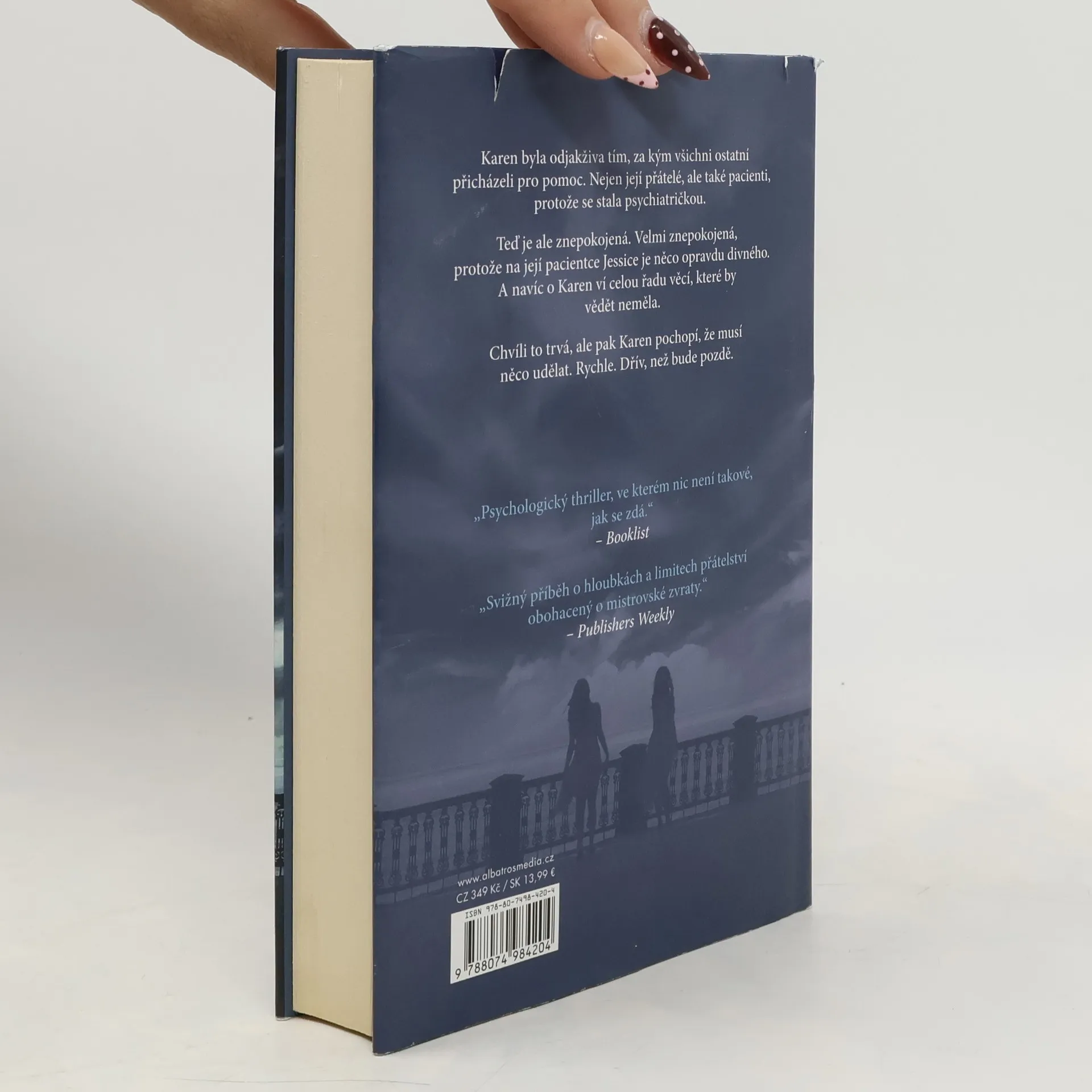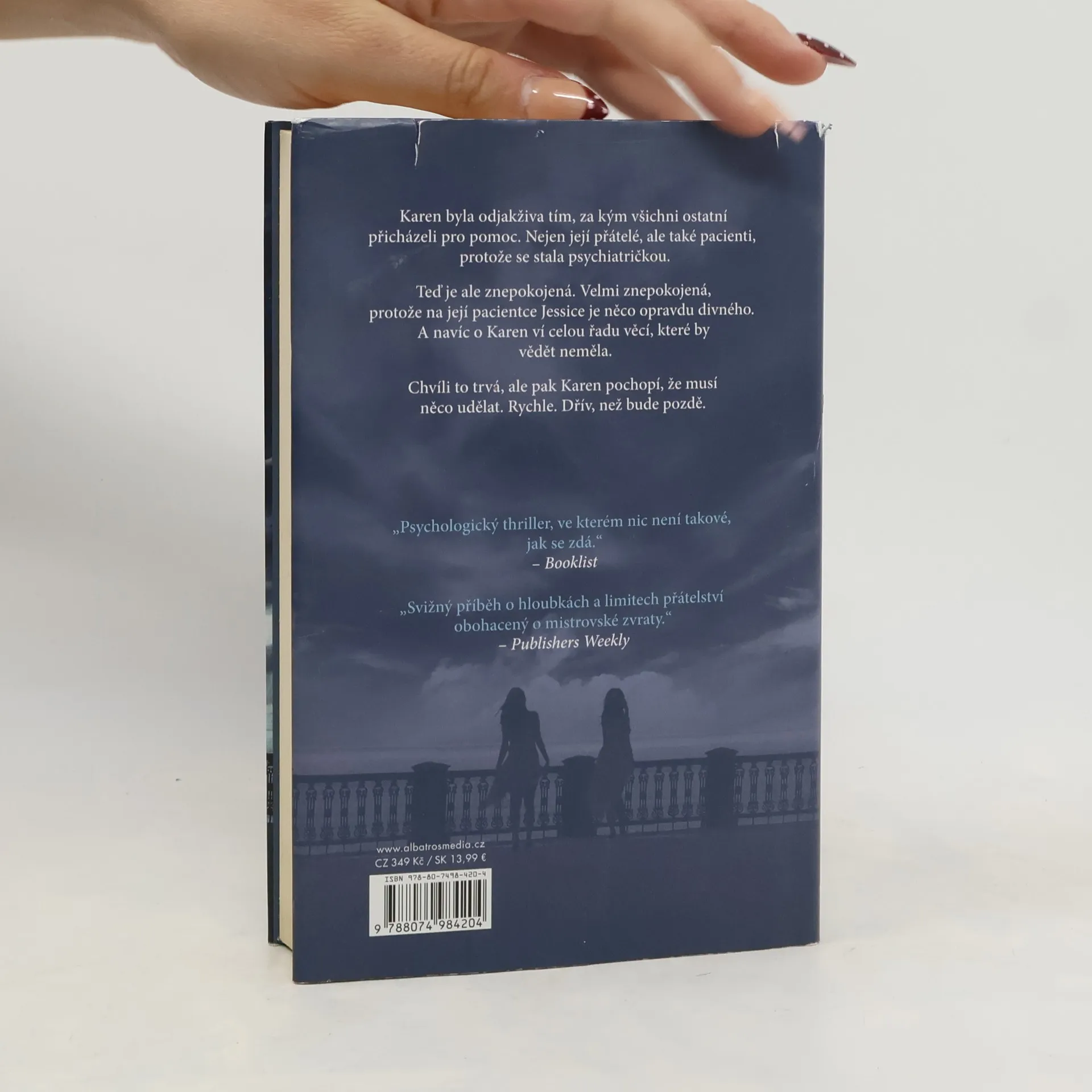 Karen byla odjakživa tím, ke komu si všichni ostatní přicházejí pro pomoc. Nejen její nejlepší kamarádky Bea a Eleanor, ale také pacienti, protože se stala psychiatričkou. Teď je ale znepokojená. Velmi znepokojená. Její pacientka Jessica se v každém ohledu vymyká. Skoro to vypadá, jako by lékařskou pomoc vyhledala z docela jiných důvodů, než je obvyklé. Ale nejvíce znepokojující je to, že o Karen ví celou řadu věcí, které by jako pacientka vědět neměla. Zná podrobnosti jejího osobního života, má informace o Kareniných přátelích... A právě tehdy Karen poprvé napadne, že by měla něco udělat. Dřív, než bude pozdě.