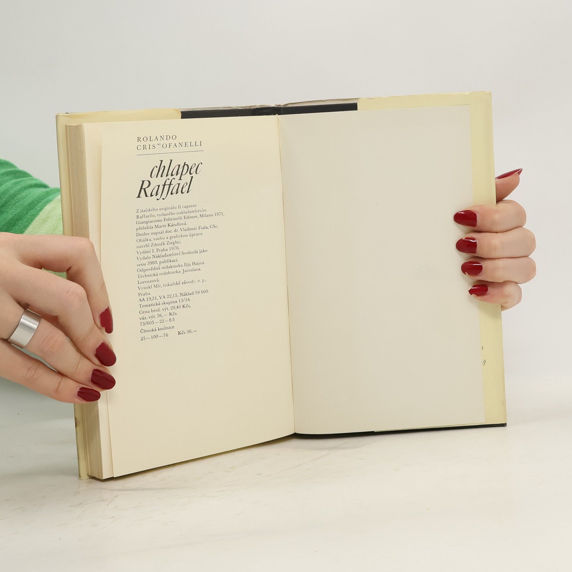 Životopisný román o italském renesančním malíři Raffaelovi Santim napsaný jako fiktivní autoportrét. Část nákladu vyšla brožovaně.