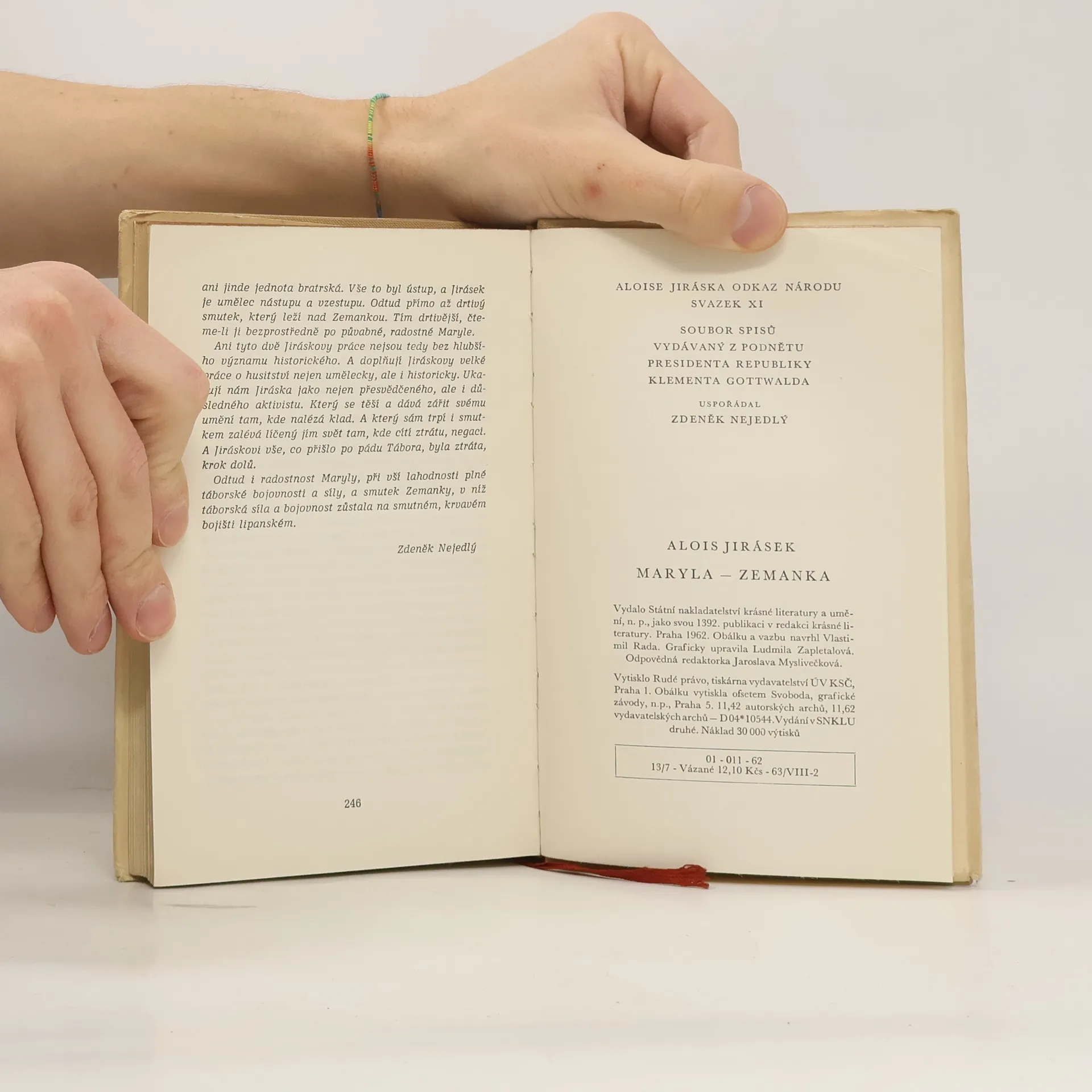 Společné vydání dvou Jiráskových novel: MARYLA, jež je vedle "Filosovské historie" snad druhou Jiráskovou nejrozkošnější novelou, překypující šťastným, ryze jiráskovským humorem. Bylo jistě velkým uměním už jen nalézt dobu v husitství, jež by se pro takovou hravou a smavou novelu hodila. Ale Jirásek ji našel: dobu správcovství Jiříka z Poděbrad. Dobu, kdy dobouřily boje minulé a kdy nezačaly ještě boje budoucí. Maryla přímo kypí ryze historickým pozadím i osobami, již v ní nalézáme řadu nejzákladnějších Jiráskových představ a názorů na dobu husitskou, na které potom postavil i svá veliká díla. Dávala-li pak "Maryla" jeden pohled na dobu správcování Jiřího z Poděbrad, povídka ZEMANKA poskytuje takřka opačný, ač vznikla ve stejné době a jedná o téže době. Jirásek jako by zde, až v krutě smutné povídce, chtěl podat přímo dialektický protiobraz téže doby.