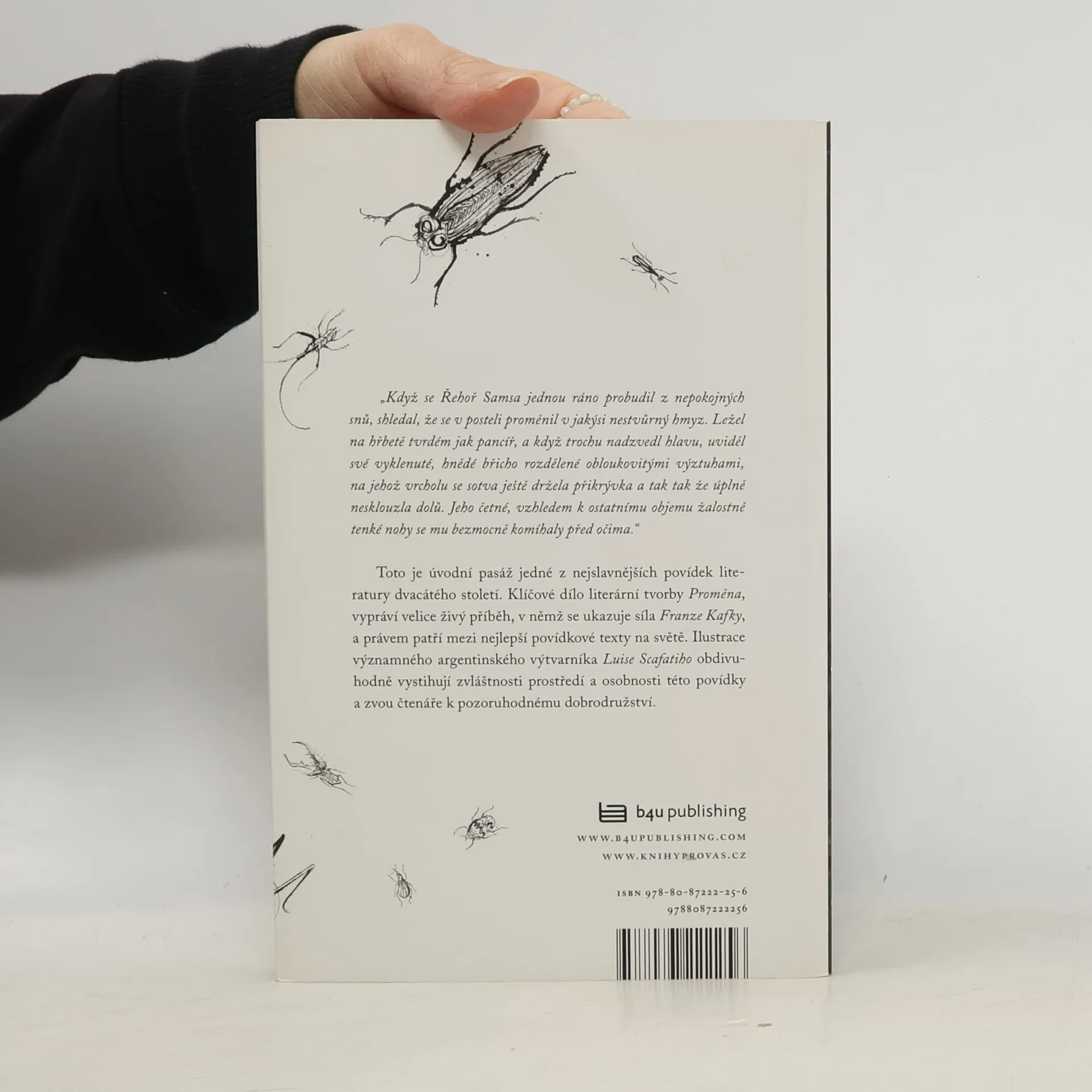 Klíčové dílo literární tvorby Proměna, vypráví velice živý příběh, v němž se ukazuje síla Franze Kafky, a právem patří mezi nejlepší povídkové texty na světě. Ilustrace významného argentinského výtvarníka Luise Scafatiho obdivuhodně vystihují zvláštnosti prostředí a osobnosti této povídky a zvou čtenáře k pozoruhodnému dobrodružství.