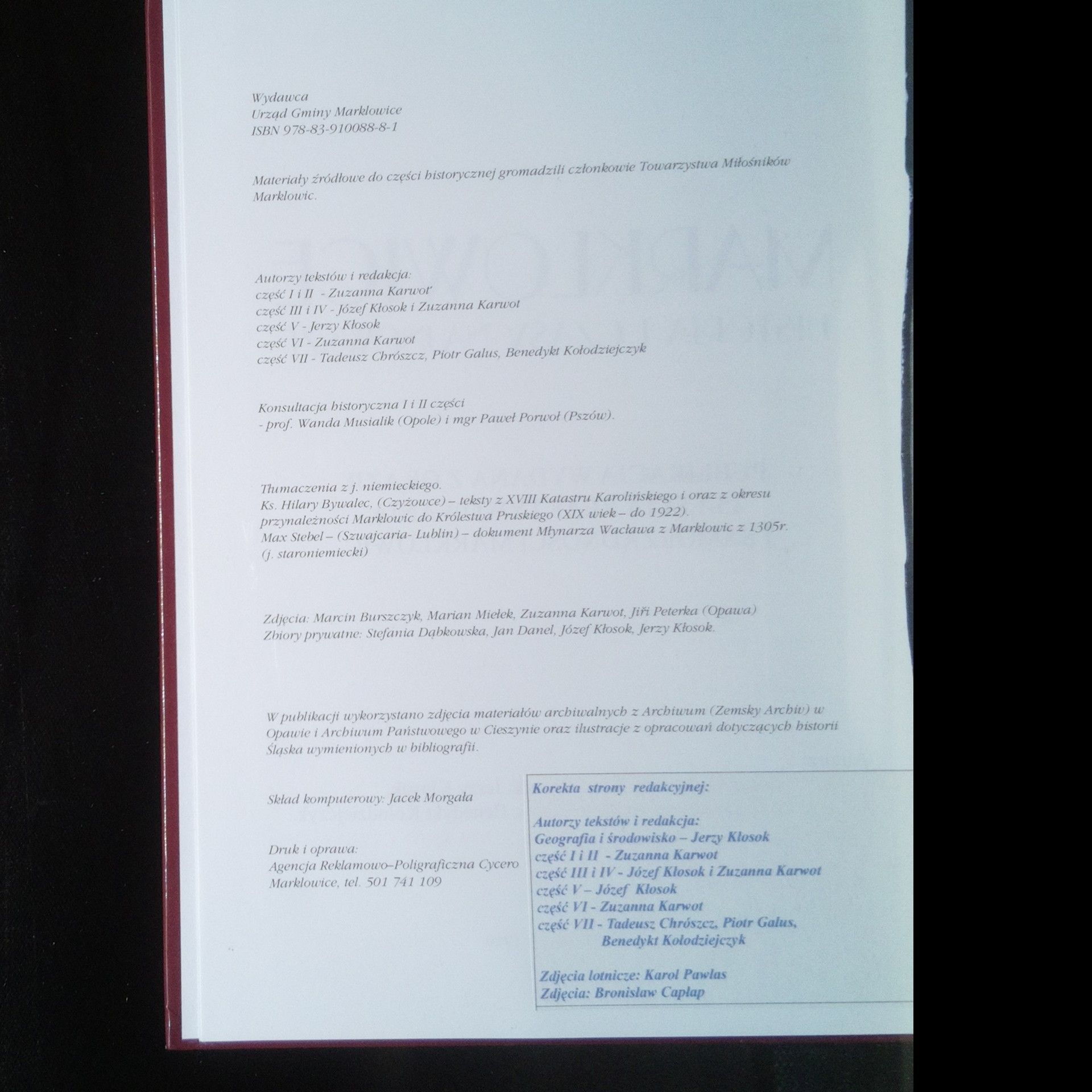 Marklowice. Historia i czasy najnowsze, Autorenkollektiv