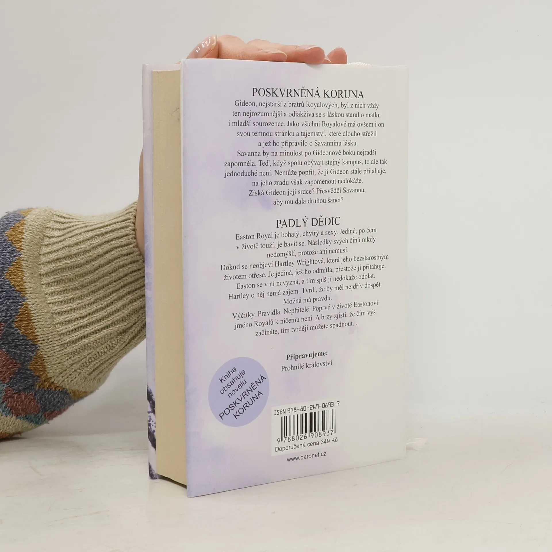 Easton Royal je bohatý, chytrý a sexy. Jediné, po čem v životě touží, je bavit se. Následky svých činů nikdy nedomýšlí, protože ani nemusí. Dokud se neobjeví Hartley Wrightová, která jeho bezstarostným životem otřese. Je jediná, která ho odmítla, přestože ji přitahuje. Easton se v ní nevyzná, a tím spíš jí nedokáže odolat. Hartley o něj nemá zájem. Tvrdí, že by měl nejdřív dospět. Možná má pravdu. Výčitky. Pravidla. Nepřátelé. Poprvé v životě Eastonovi jméno Royalů k ničemu není. A brzy zjistí, že čím výš začínáte, tím tvrději můžete spadnout. Kniha obsahuje i bonusovou novelu Poskvrněná koruna Gideon, nejstarší z bratrů Royalových, byl z nich vždy ten nejrozumnější a odjakživa se s láskou staral o matku i mladší sourozence. Jako všichni Royalové má ovšem i on svou temnou stránku a tajemství, které dlouho střežil a jež ho připravilo o Savanninu lásku. Savanna by na minulost po Gideonově boku nejradši zapomněla. Teď, když spolu obývají stejný kampus, to ale tak jednoduché není. Nemůže popřít, že ji Gideon stále přitahuje, na jeho zradu však zapomenout nedokáže. Získá Gideon její srdce? Přesvědčí Savannu, aby mu dala druhou šanci?
