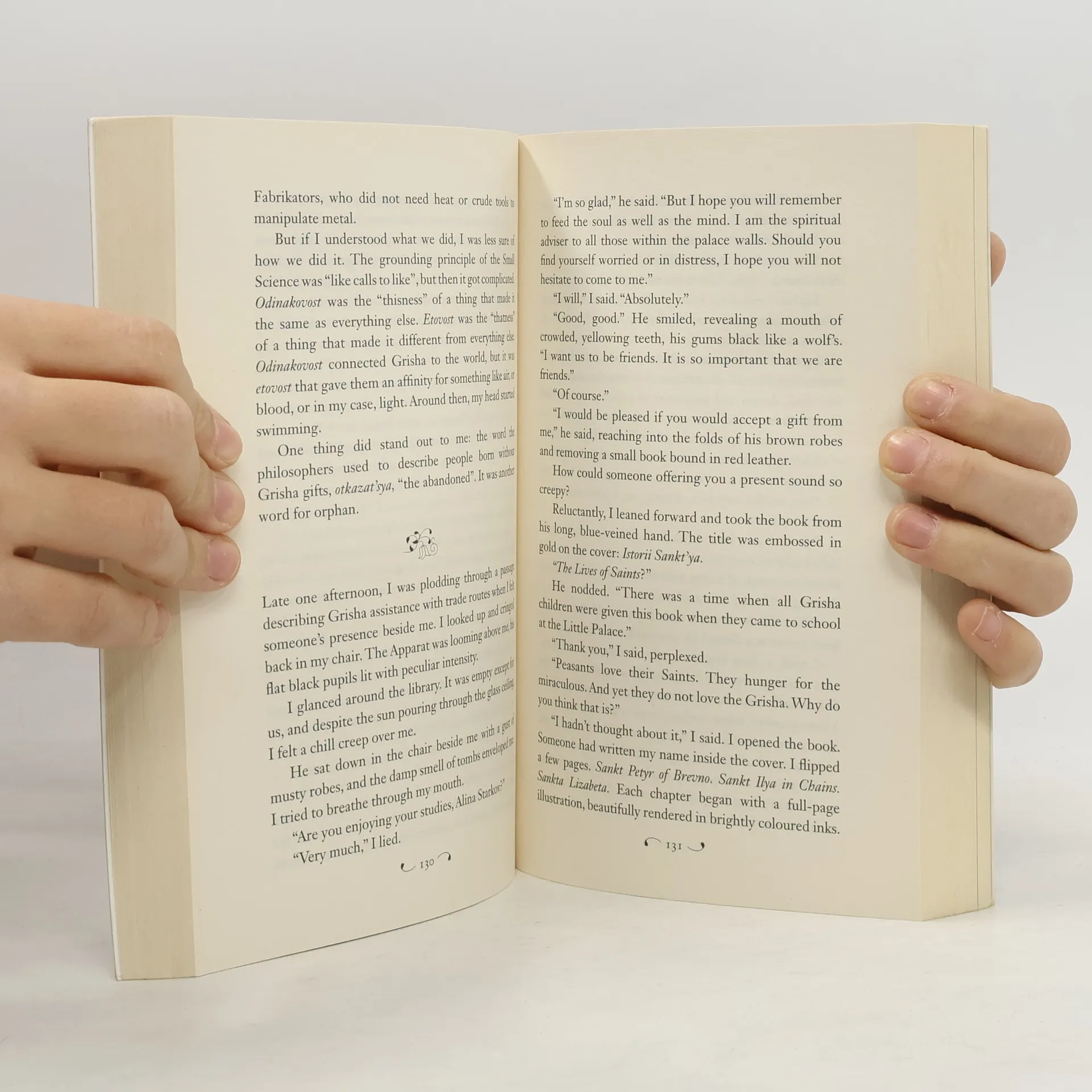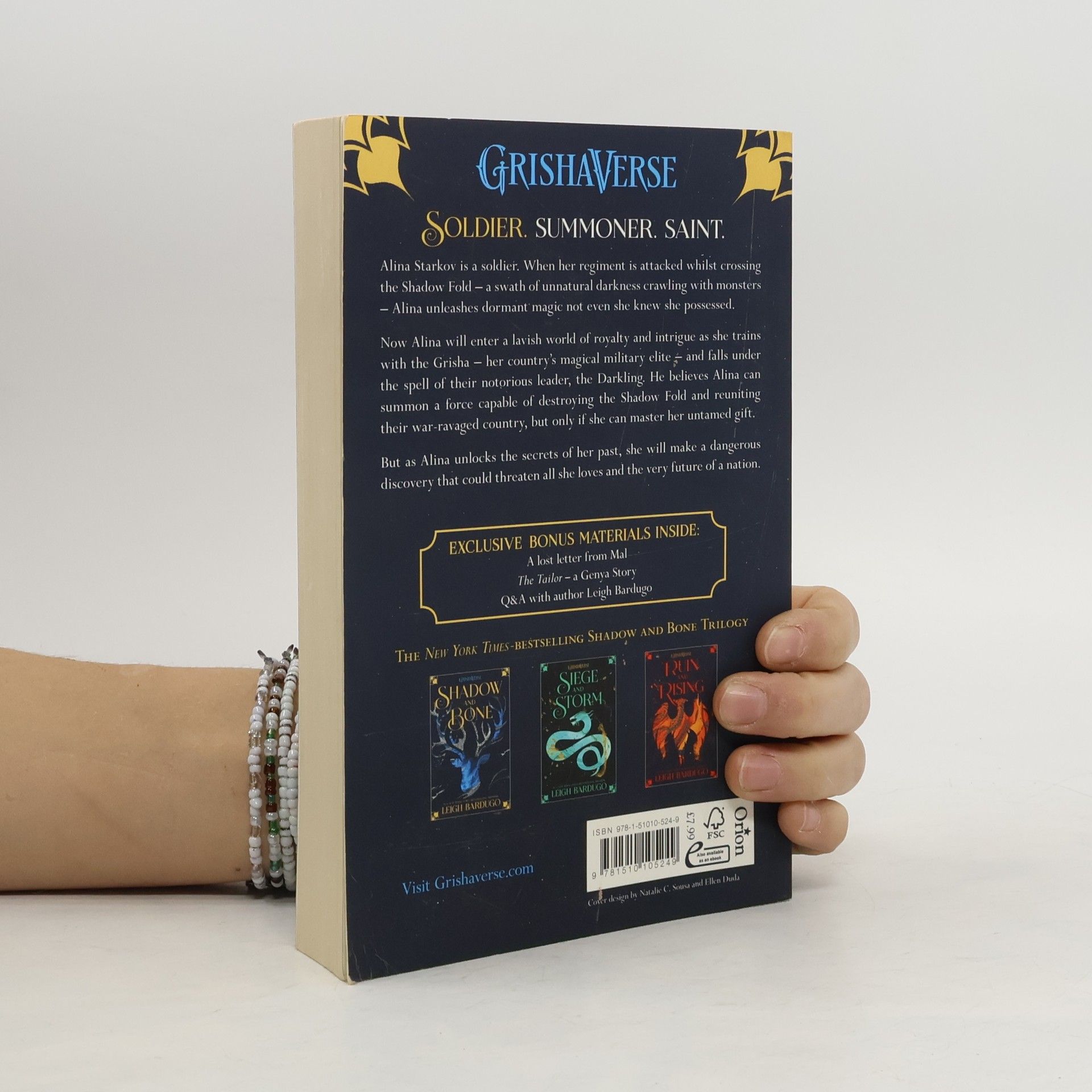 Soldier. Summoner. Saint. Orphaned and expendable, Alina Starkov is a soldier who knows she may not survive her first trek across the Shadow Fold - a swath of unnatural darkness crawling with monsters. But when her regiment is attacked, Alina unleashes dormant magic not even she knew she possessed. Now Alina will enter a lavish world of royalty and intrigue as she trains with the Grisha, her country's magical military elite - and falls under the spell of their notorious leader, the Darkling. He believes Alina can summon a force capable of destroying the Shadow Fold and reuniting their war-ravaged country, but only if she can master her untamed gift. As the threat to the kingdom mounts and Alina unlocks the secrets of her past, she will make a dangerous discovery that could threaten all she loves and the very future of a nation. Welcome to Ravka . . . a world of science and superstition where nothing is what it seems.