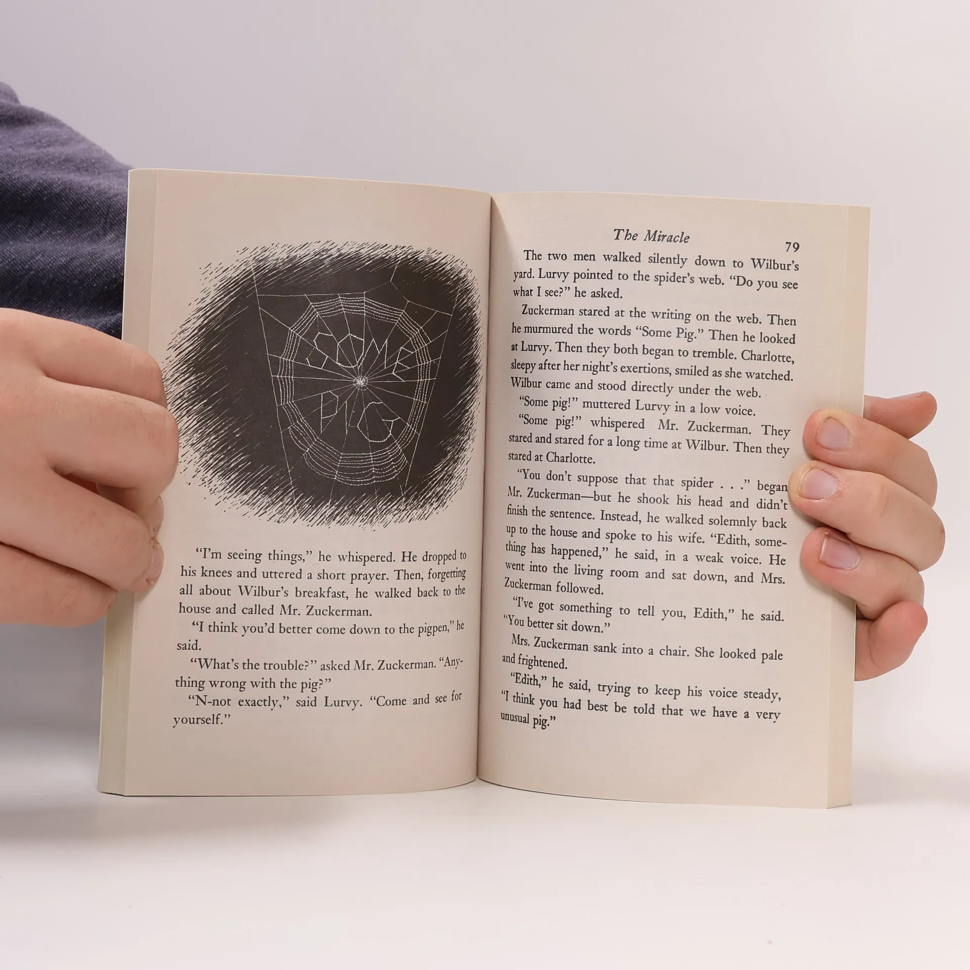 Some Pig. These are the words in Charlotte's Web, high in the barn. Her spiderweb tells of her feelings for a little pig named Wilbur, as well as her feelings of a little girl named Fern...who loves Wilbur, too. Their love has been shared by millions of readers. --back cover