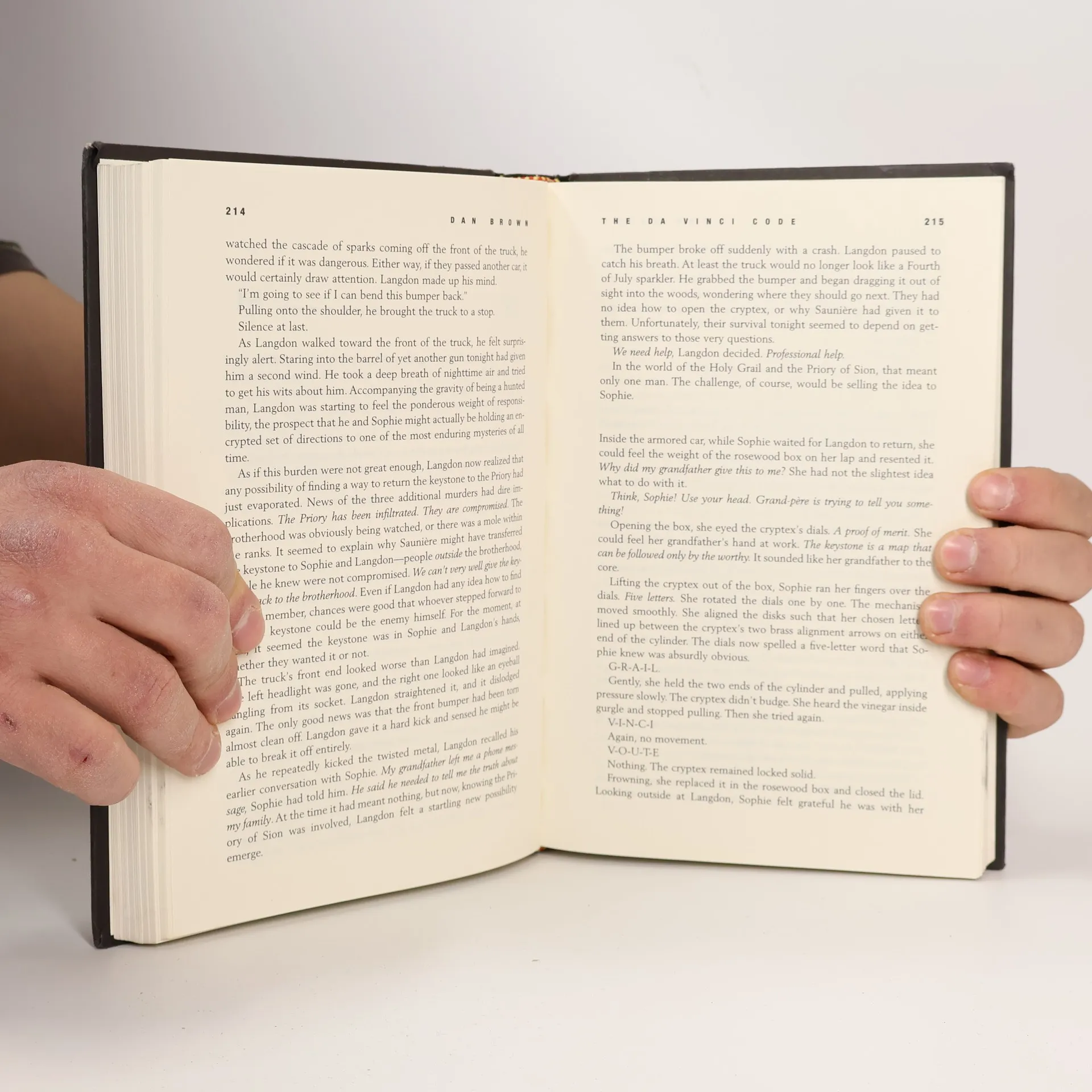 While in Paris on business, Harvard symbologist Robert Langdon receives an urgent late-night phone call. The elderly curator of the Louvre has been murdered inside the museum, a baffling cipher found near the body. As Langdon and a gifted French cryptologist, Sophie Neveu, sort through the bizarre riddles, they are stunned to discover a trail of clues hidden in the works of Da Vinci—clues visible for all to see and yet ingeniously disguised by the painter. The stakes are raised when Langdon uncovers a startling link: The late curator was involved in the Priory of Sion—an actual secret society whose members included Sir Isaac Newton, Botticelli, Victor Hugo, and Da Vinci, among others. Langdon suspects they are on the hunt for a breathtaking historical secret, one that has proven through the centuries to be as enlightening as it is dangerous. In a frantic race through Paris, and beyond, Langdon and Neveu find themselves matching wits with a faceless powerbroker who appears to anticipate their every move. Unless they can decipher the labyrinthine puzzle, the Priory’s secret—and an explosive ancient truth—will be lost forever. --front flap