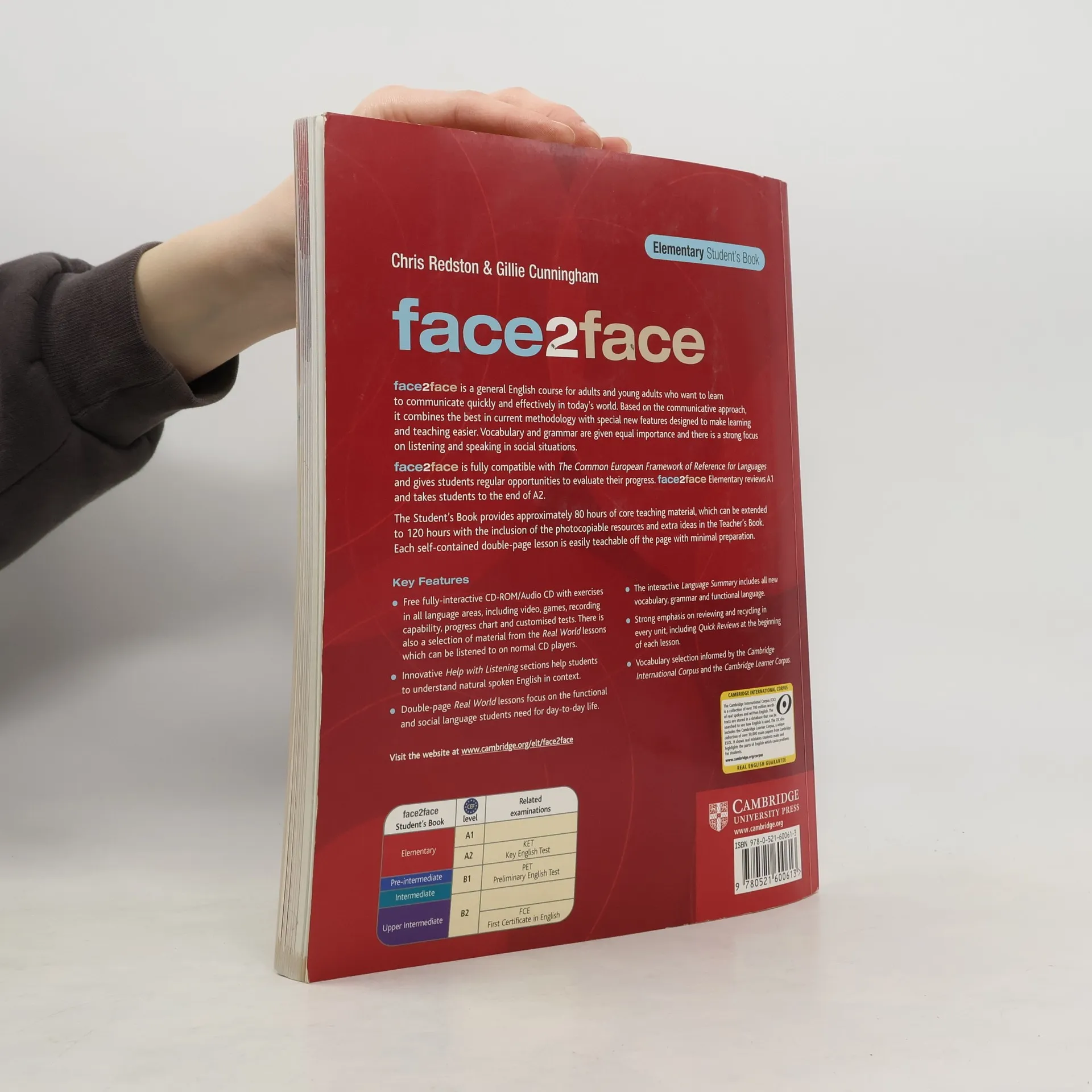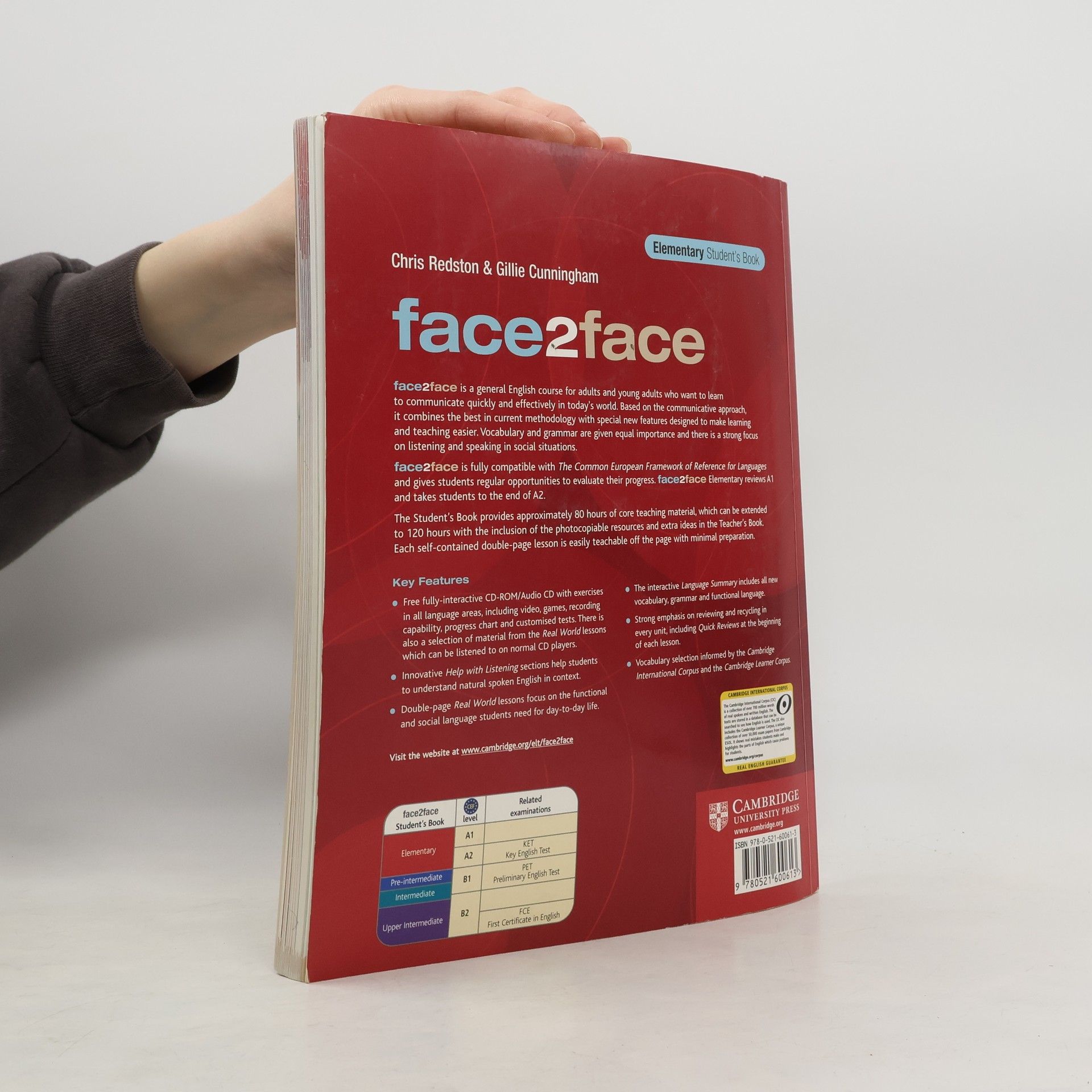 face2face is a six level general English course for adults and young adults. It goes from Starter level through to Advanced. The Student's Book provides approximately 80 hours of core teaching material, which can be extended to 120 hours with the inclusion of the photocopiable resources and extra ideas in the Teacher's Book. Each self-contained double-page lesson is easily teachable off the page. The Student's Book comes packaged with a free fully-interactive CD- ROM/Audio CD with over 200 exercises in all language areas, video, games, recording capability, progress chart and customised tests (please note that the Class Audio is available separately). There is also a selection of material from the Real World lessons which can be listened to on normal CD players.show more