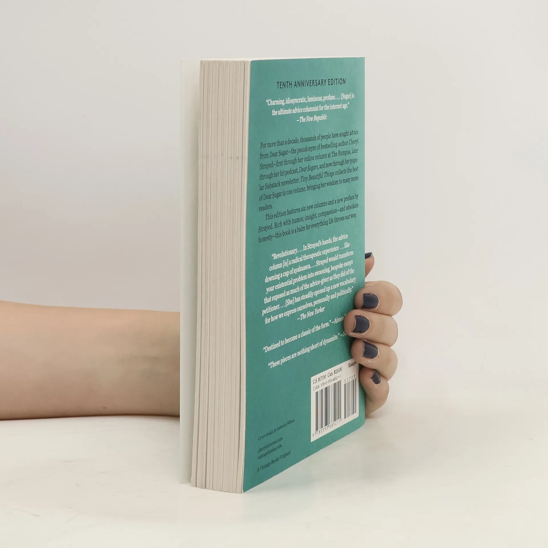 An anniversary edition of the bestselling collection of "Dear Sugar" advice columns written by the author of #1 New York Times bestseller Wild—featuring a new preface and six additional columns. Soon to be a Hulu Original series. For more than a decade, thousands of people have sought advice from Dear Sugar—the pseudonym of bestselling author Cheryl Strayed—first through her online column at The Rumpus, later through her hit podcast, Dear Sugars, and now through her popular Substack newsletter. Tiny Beautiful Things collects the best of Dear Sugar in one volume, bringing her wisdom to many more readers. This tenth-anniversary edition features six new columns and a new preface by Strayed. Rich with humor, insight, compassion—and absolute honesty—this book is a balm for everything life throws our way.