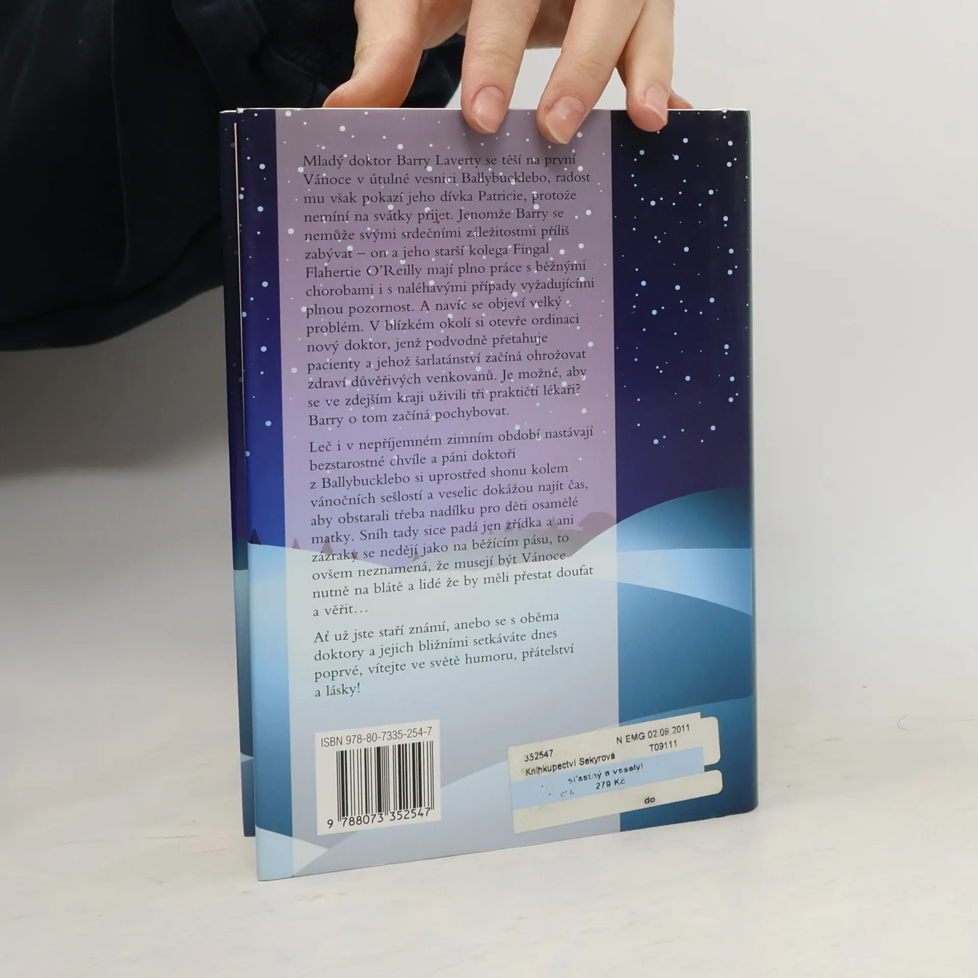 Mladý doktor Barry Laverty se těší na první Vánoce v útulné vesnici Ballybucklebo, radost mu však pokazí jeho dívka Patricie, protože nemíní na svátky přijet. Jenomže Barry se nemůže svými srdečními záležitostmi příliš zabývat on a jeho starší kolega Fingal Flahertie OReilly mají plno práce s běžnými chorobami i s naléhavými případy vyžadujícími plnou pozornost. A navíc se objeví velký problém. V blízkém okolí si otevře ordinaci nový doktor, jenž podvodně přetahuje pacienty a jehož šarlatánství začíná ohrožovat zdraví důvěřivých venkovanů. Je možné, aby se ve zdejším kraji uživili tři praktičtí lékaři? Barry o tom začíná pochybovat. Leč i v nepříjemném zimním období nastávají bezstarostné chvíle a páni doktoři z Ballybucklebo si uprostřed shonu kolem vánočních sešlostí a veselic dokážou najít čas, aby obstarali třeba nadílku pro děti osamělé matky. Sníh tady sice padá jen zřídka a ani zázraky se nedějí jako na běžícím pásu, to ovšem neznamená, že musejí být Vánoce nutně na blátě a lidé že by měli přestat doufat a věřit Ať už jste staří známí, anebo se s oběma doktory a jejich bližními setkáváte dnes poprvé, vítejte do světa humoru, přátelství a lásky!