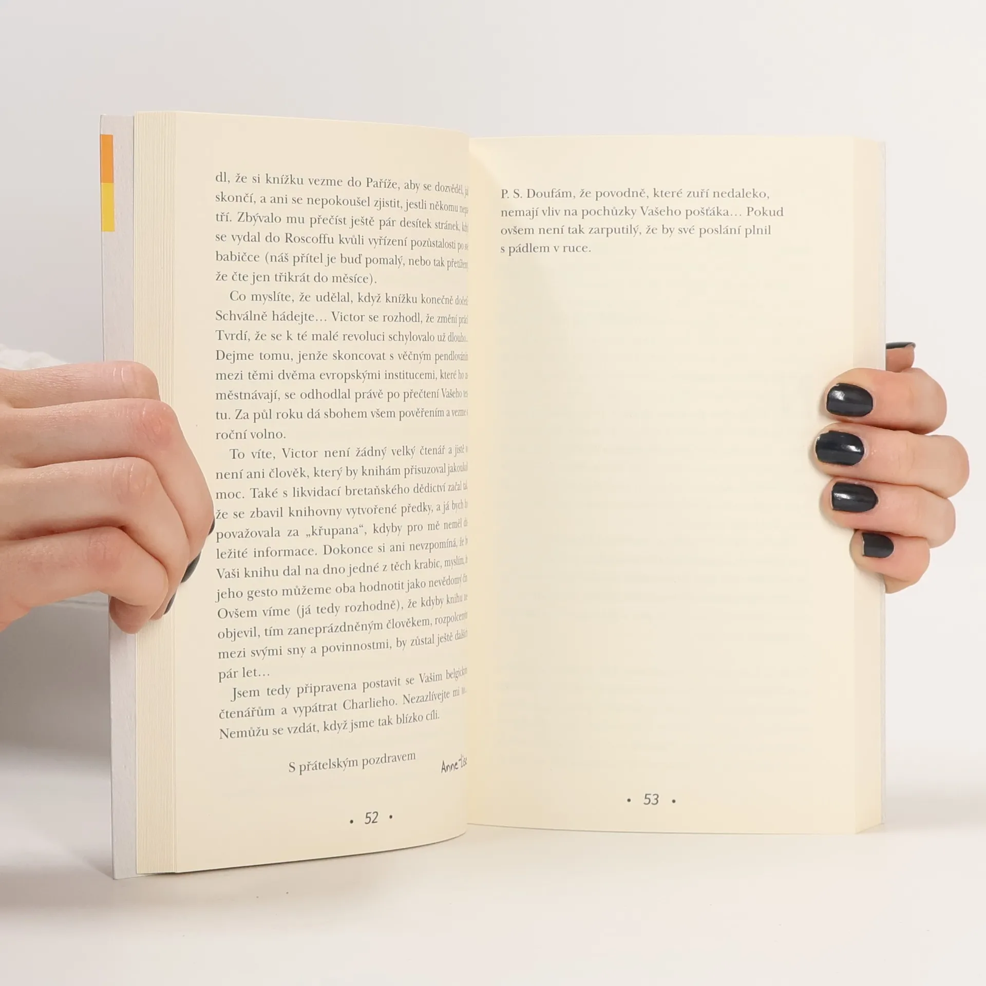 Román o kráse a síle psaného slova, magii potkávání a kouzlu dopisů. Kdo si nikdy nepřál, aby mu do života zasáhl závan romantiky? Když si Anne-Lise objednává pokoj č. 128 v hotelu Beau Rivage, aby mohla strávit krátkou dovolenou v Bretani, ještě netuší, jak se jí tím promění život. V nočním stolku objeví rukopis knihy… a v něm adresu. Jako láhev vylovenou z moře posílá rukopis tomu, o kom se domnívá, že je jeho majitelem. Ale nejdřív si příběh přečte. Je krásný a dojemný. A nedokončený. K jejímu překvapení autor rukopisu Sylvester na zprávu odpoví. Zaskočí ji tvrzením, že rukopis ztratil již před 33 lety během letu z Francie do Kanady. A dosud ho nedopsal. Sylvester touží jen po klidu a zapomnění, ale Anna-Lise se k jeho velkému zděšení rozhodne přijít na to, jak se rukopis do jejího pokoje dostal. Prostřednictvím dopisů se dozvídá o jeho putování od čtenáře ke čtenáři i o tom, jak poznamenal život každého z nich. A tak se před ní odvíjí příběh plný milostných citů i rozepří, přátelství, pohnutých osudů a důvěrných tajemství. A čím víc se cesta nedokončeného rukopisu blíží k pokoji č. 128, tím je jasnější, že má moc změnit život i jí…