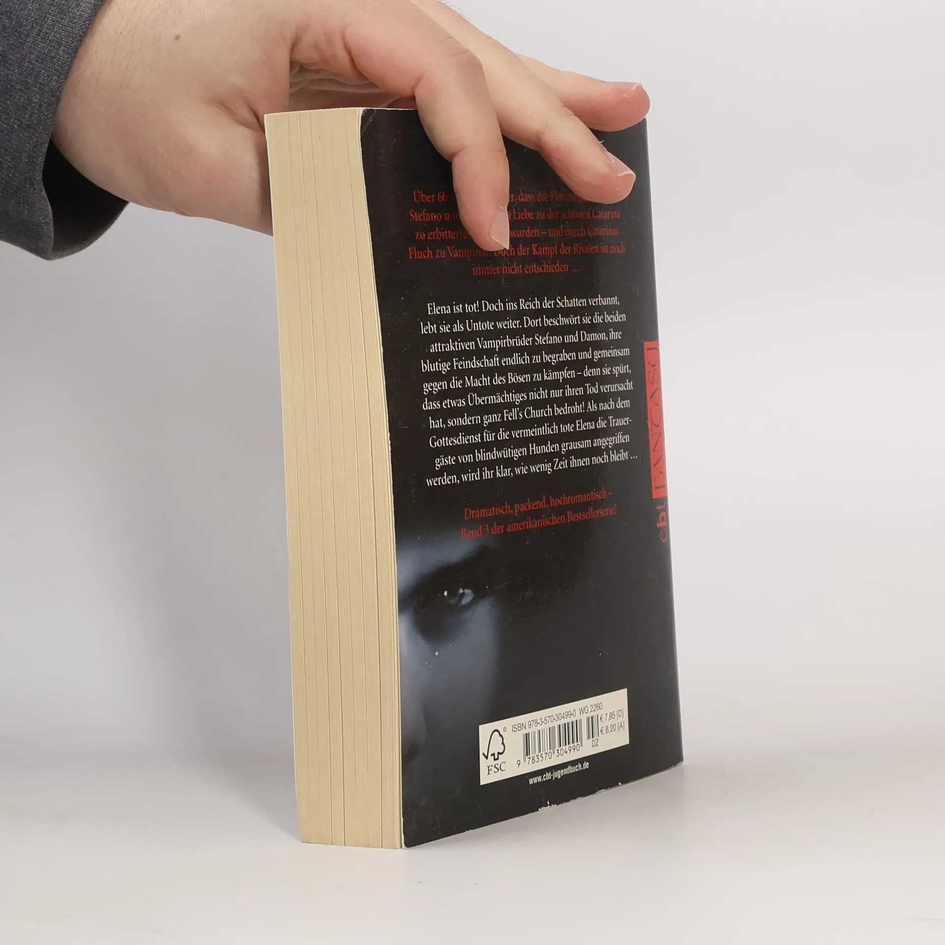 Der 3. Band der Vampirreihe "Tagebuch eines Vampirs" (Band 1 BA 2/09, weitere Bände in dieser Nr.) liest sich beihnahe wie ein Krimi, denn Elena und ihre Freunde versuchen herauszufinden, wer "das Böse" sein könnte, das Elena getötet hat. Sie haben mehrere Verdächtige, so z.B. den kumpelhaften Geschichtslehrer, der sich übermäßig für die unheilvollen Vorkommnisse der letzten Wochen zu interessieren scheint. Schließlich stellt er sich jedoch als harmloser wissenschaftlicher Forscher der Parapsychologie heraus. Auch die anderen Verdächtigungen erweisen sich als falsch und erst am Ende des Buches erfahren wir die Wahrheit: Hinter dem "Bösen" steckt Caterina, die ehemalige Geliebte von Stefano und Damon, der sie ihr Vampirdasein zu verdanken haben. Um sie zu bekämpfen, begraben die beiden Vampirbrüder sogar ihre ewige Feindschaft und Elena opfert sich heldenhaft, um die Bewohner der Stadt zu retten und versinkt in der Schattenwelt. Dramatisch, romantisch, einfach gestrickt - zur Fortsetzung empfohlen. . - Im 3. Band der Vampirreihe versuchen Elena und ihre Freunde herauszufinden, wer hinter dem "Bösen" steckt und stoßen schließlich auf Caterina, die ehemalige Geliebte von Stefano und Damon. Ab 14.
