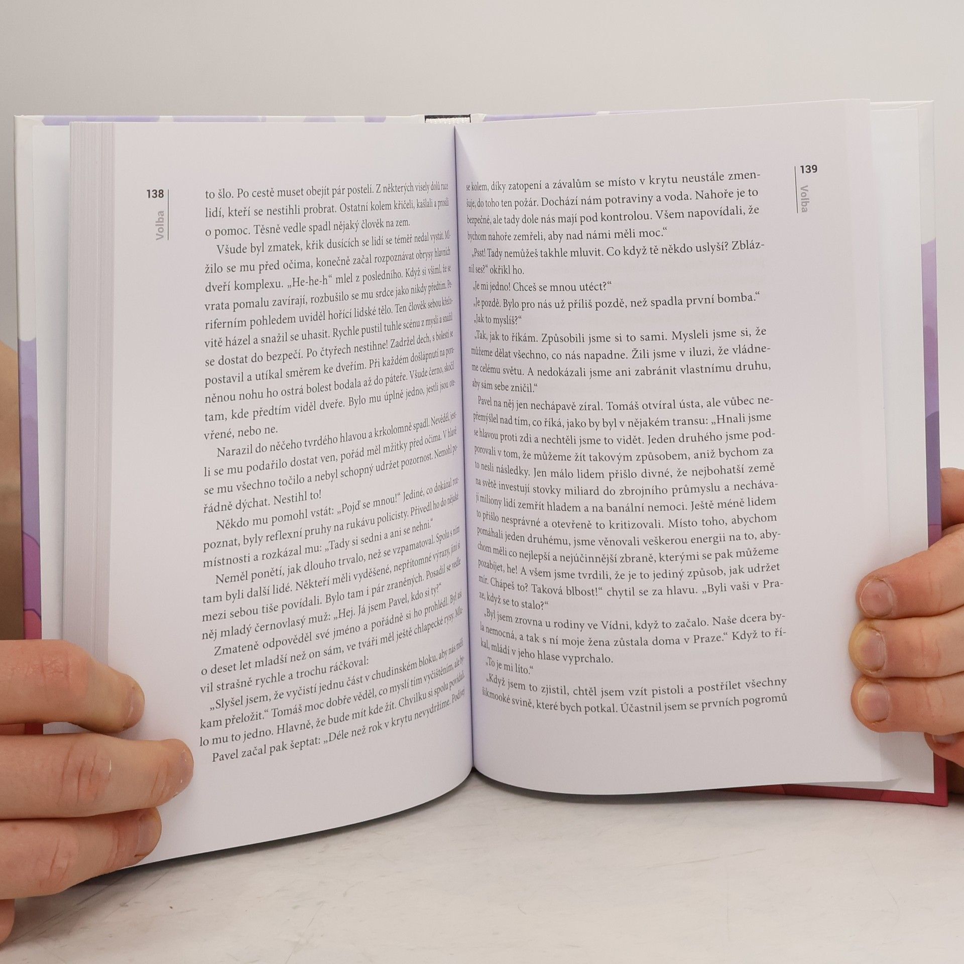 "Zdá se mi o světě v plamenech. O jaderných bombách, které dopadají jedna za druhou a polykají města jako rakovina. O našem dožívání v podzemním krytu, kde se z nás pomalu stávají zvířata. Ty sny jsou tak živé. Bojím se, že se jednou budu chtít probudit a zjistím, že je pozdě.“ Tomáš je mladý muž v nejlepších letech. Ačkoliv se zdá, že mu nic neschází, upadá do stále větší deprese. V práci to s ním jde od desíti k pěti a po marných pokusech vzdává i snahu o opětovné sblížení se svou ženou Eliškou. Aby toho nebylo málo, pronásledují ho postapokalyptické sny plné beznaděje. Depresivní nálada ho opustí až v okamžiku, kdy se seznámí s podivínským psychologem Kohlem, který mu ukáže, jak být šťastným a lepším člověkem. To je ovšem jen začátek Tomášova příběhu, který nakonec vyústí ve strhující finále. Volba je literárním debutem mladého českého autora Jakuba Trpiše. Prolínají se v ní prvky duchovní literatury, sci-fi, detektivky, psychologického i milostného románu. Volba se v roce 2018 stala bestsellerem, kdy se jí prodalo 15 000 výtisků. Téhož roku vyšlo třetí vydání s pevnou vazbou i novou obálku a také anglický překlad The Choice.