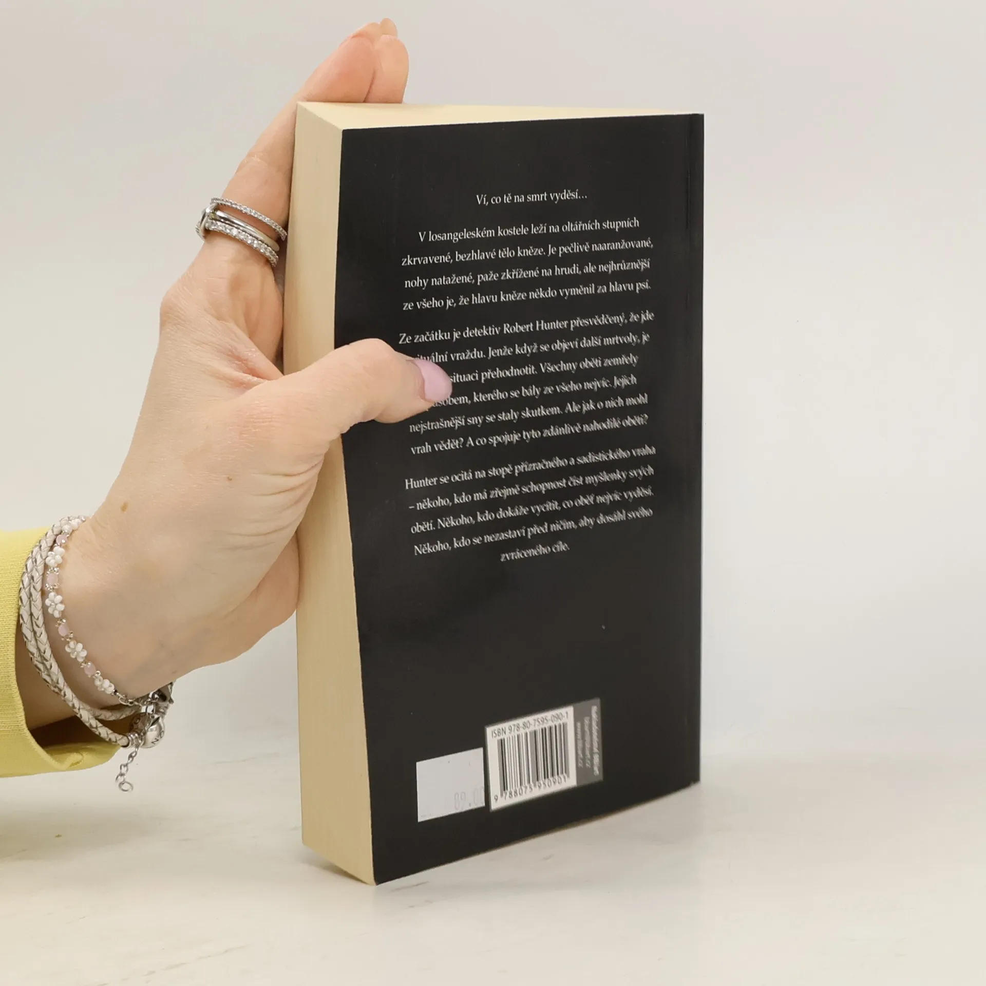 Ví, co tě na smrt vyděsí… V losangeleském kostele leží na oltářních stupních zkrvavené, bezhlavé tělo kněze. Je pečlivě naaranžované, nohy natažené, paže křížené na hrudi, ale nejhrůznější ze všeho je, že hlavu kněze někdo vyměnil za hlavu psí. Ze začátku je detektiv Robert Hunter přesvědčený, že jde o rituální vraždu. Jenže když se objeví další mrtvoly, je nucen situaci přehodnotit. Všechny oběti zemřely způsobem, kterého se bály ze všeho nejvíc. Jejich nejstrašnější sny se staly skutkem. Ale jak o nich mohl vrah vědět? A co spojuje tyto zdánlivě nahodilé oběti? Hunter se ocitá na stopě přízračného a sadistického vraha – někoho, kdo má zřejmě schopnost číst myšlenky svých obětí. Někoho, kdo dokáže vycítit, co oběť nejvíc vyděsí. Někoho, kdo se nezastaví před ničím, aby dosáhl svého zvráceného cíle.