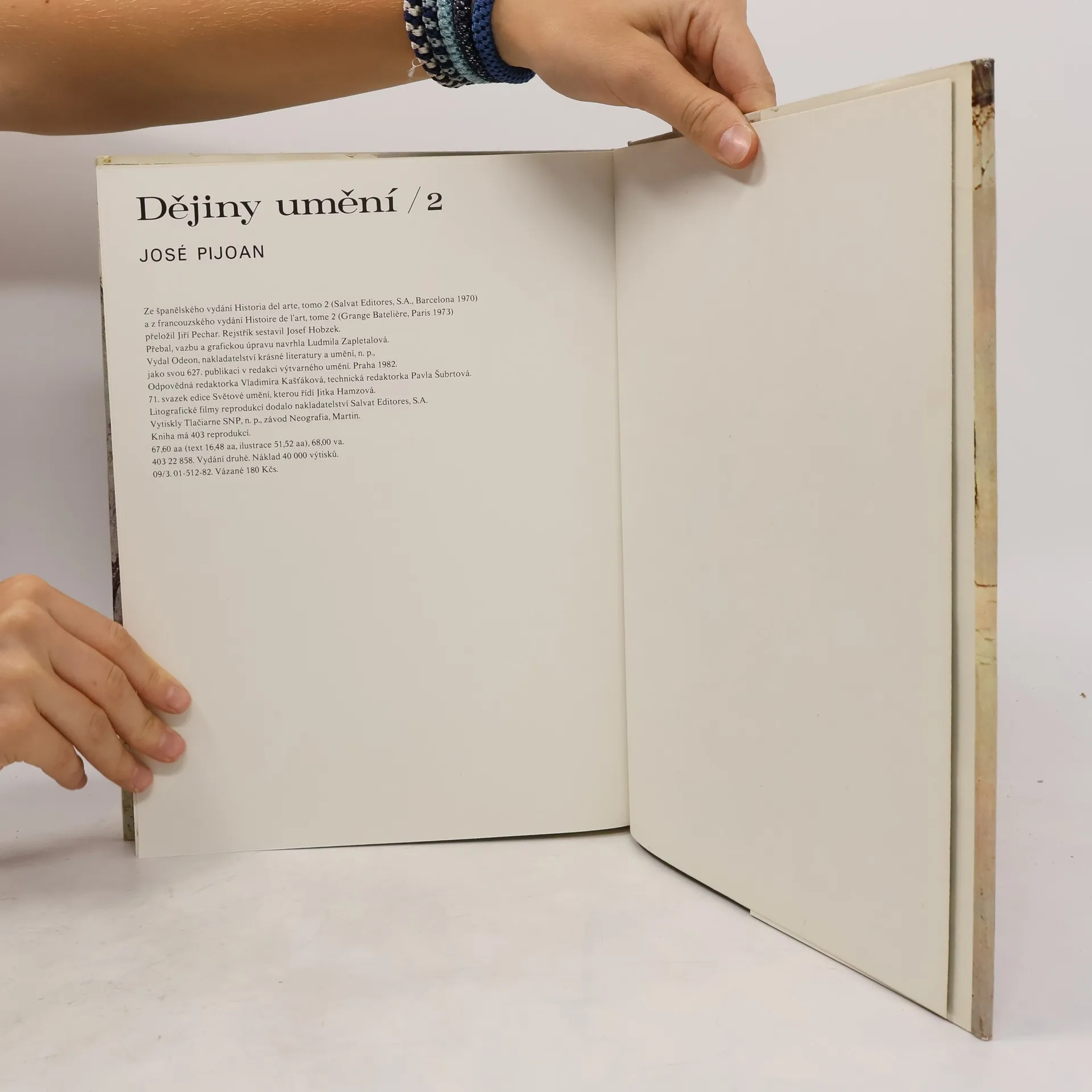 Druhý svazek Pijoanových Dějin umění je věnován antice. Jde o knihu tematicky ucelenou, a může tedy sloužit samostatně jako dobrá přehledná příručka dějin umění Řecka a Říma. Obsahuje: umění předhelénské, řecké archaické umění do perských válek a po per. válkách, řecké umění v době Periklově, řecké umění 4.st.,helénistické umění, etruské umění, římské umění v době svých počátků a za republiky, římské umění za Augusta a jeho nástupců, římské umění za Flaviovců a Antoninovců, římské umění provinční a vojenské, římské pozdní umění.