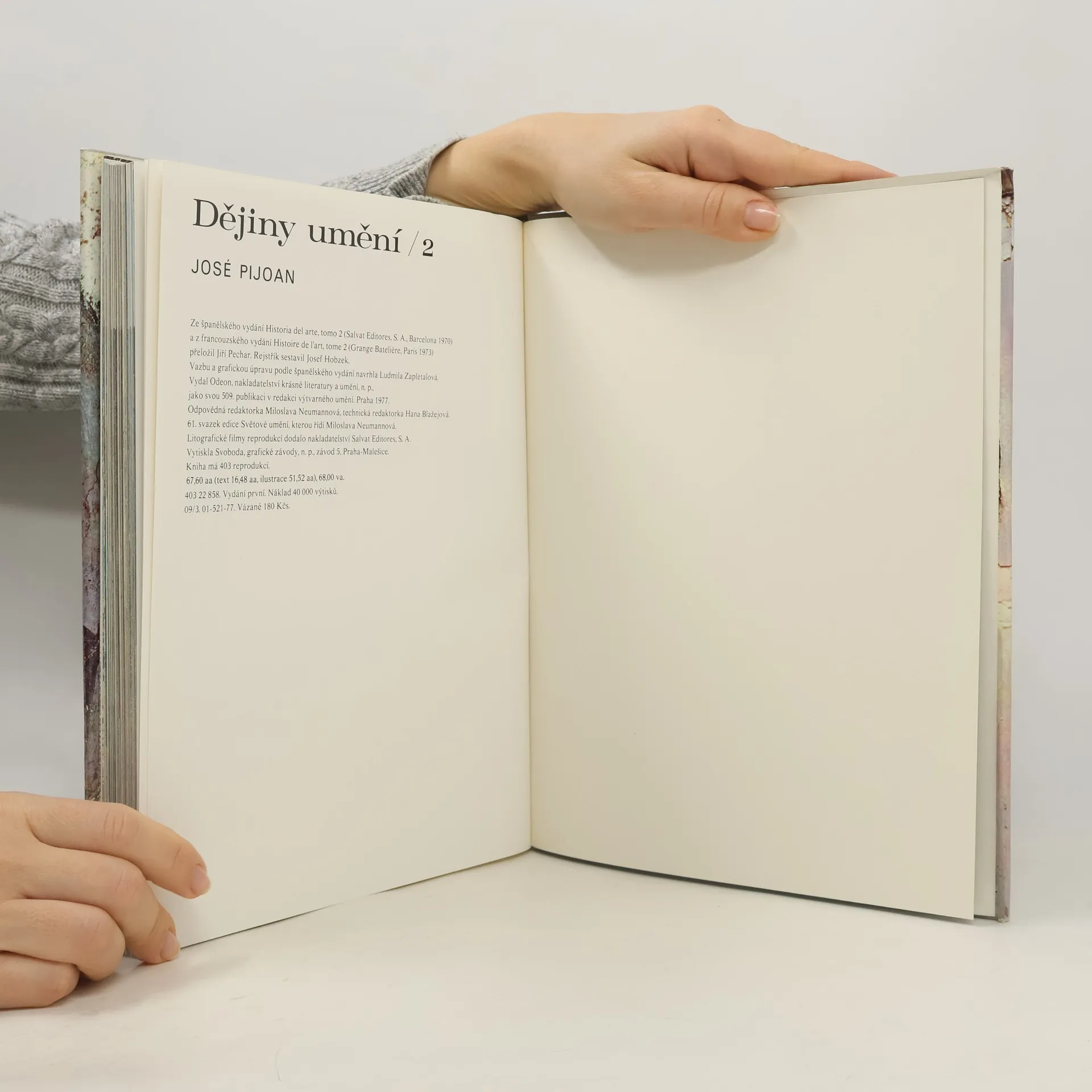 Toto rozsáhlé encyklopedické dílo čtenáře postupně seznámí s poklady světového umění. Opírá se o proslulé dějiny Josého Pijoana, které vyšly před téměř 70 lety. Čtenáři, milovníci umění, ocení bohatství obrazové dokumentace, na níž je dílo založeno. Vynikající barevné reprodukce představují jednotlivé kultury, epochy, umělecké proudy a osobnosti. Desetidílné Dějiny umění jsou určeny širokému okruhu zájemců o výtvarnou kulturu a kulturní historii. Druhý svazek je věnován antice. Samostatně může sloužit jako vynikající přehledná příručka dějin umění Řecka a Říma. Začíná líčením obdivuhodné kultury mínójské a mykénské, věnuje se archaickému umění Řecka, rozkvětu Athén a k helénismu Velkého Řecka. Zabývá se výtvarným umem Etrusků i vývojem římského umění až do jeho podního období.