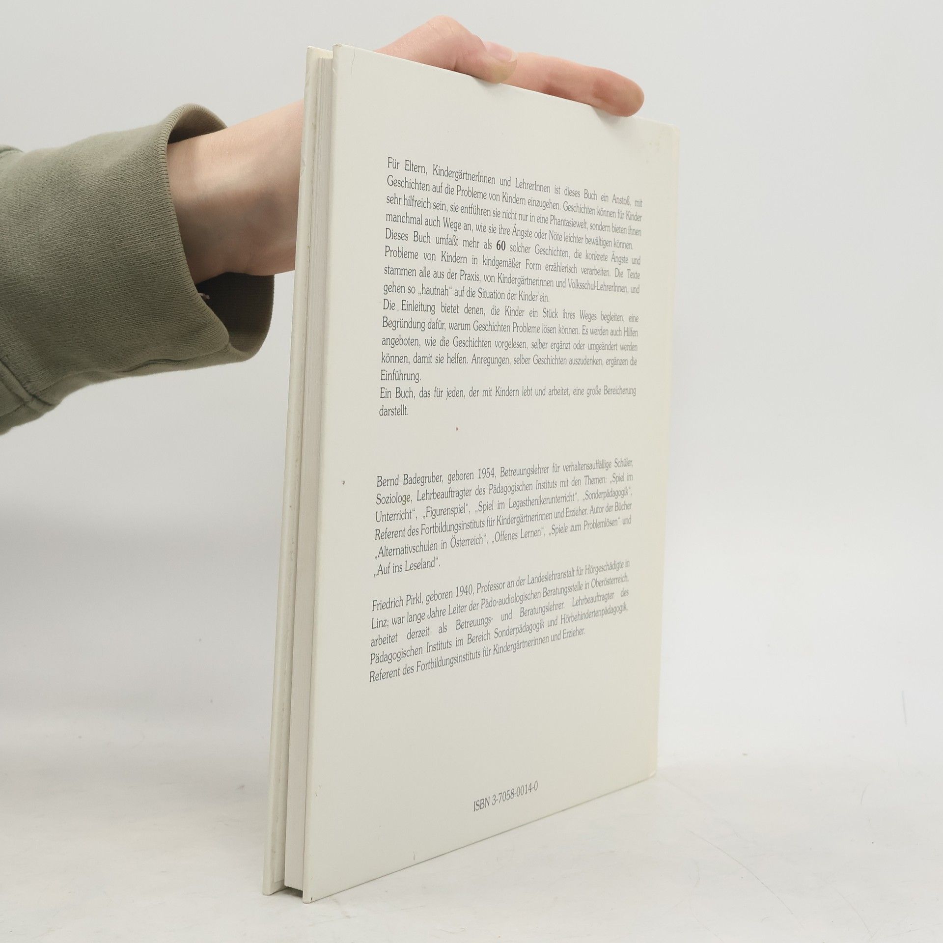 Mehr als 60 Geschichten aus dem Alltag der Kinder werden in kindgemäßer Form in diesem Buch erzählerisch verarbeitet. Das Ergebnis ist eine wertvolle Hilfe für Erzieher, um auf ihre Kinder einzugehen. Durch ein Register sind die individuell zum Problembereich des Kindes passenden Geschichten leicht auffindbar.