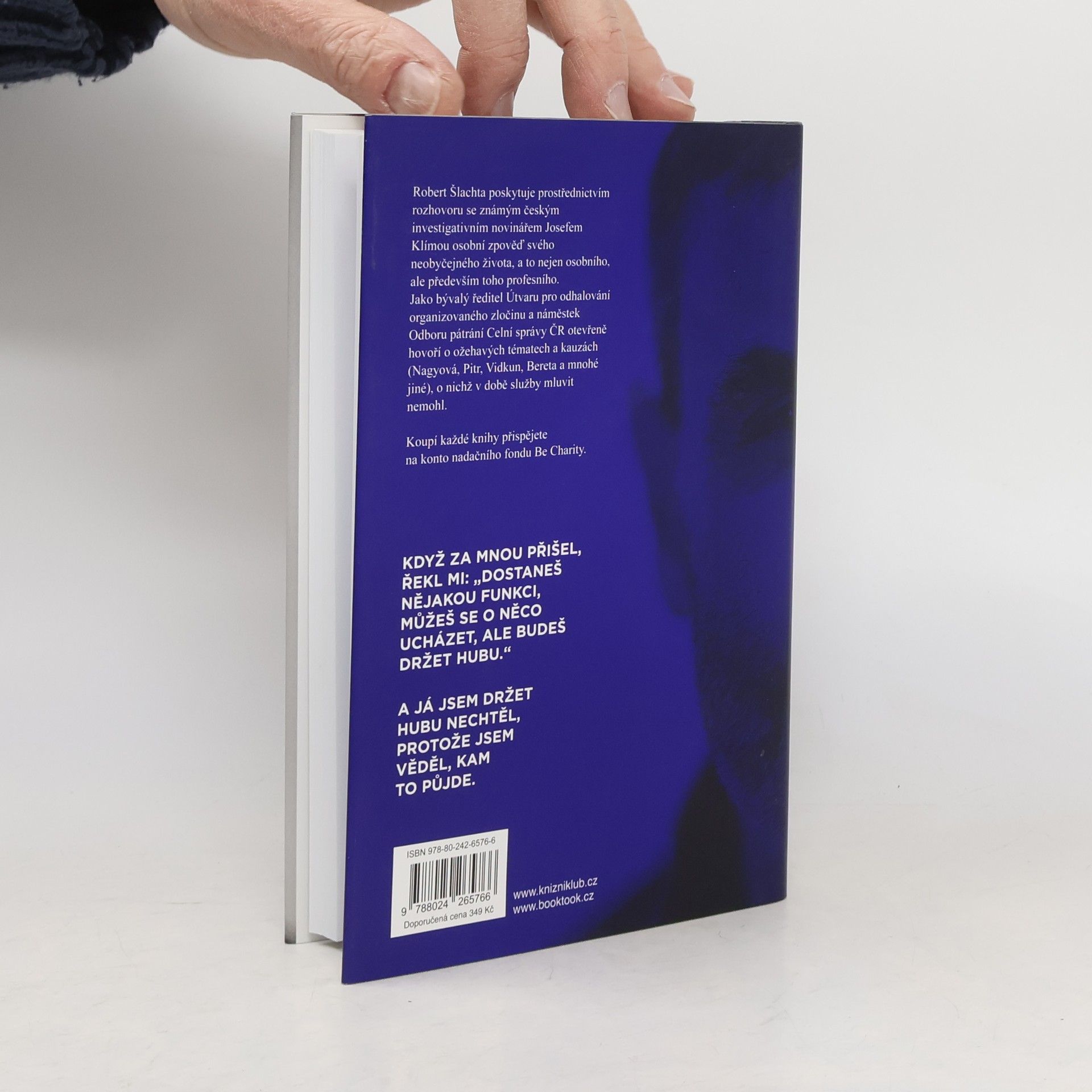 Robert Šlachta poskytuje prostřednictvím rozhovoru se známým českým investigativním novinářem Josefem Klímou osobní zpověď svého neobyčejného života, a to nejen osobního, ale především toho profesního. Jako bývalý ředitel Útvaru pro odhalování organizovaného zločinu a náměstek Odboru pátrání Celní správy ČR otevřeně hovoří o ožehavých tématech a kauzách (Nagyová, Pitr, Vidkun, Bereta a mnohé jiné), o nichž v době služby mluvit nemohl. Koupí každé knihy přispějete 50 Kč na konto nadačního fondu Be Charity.