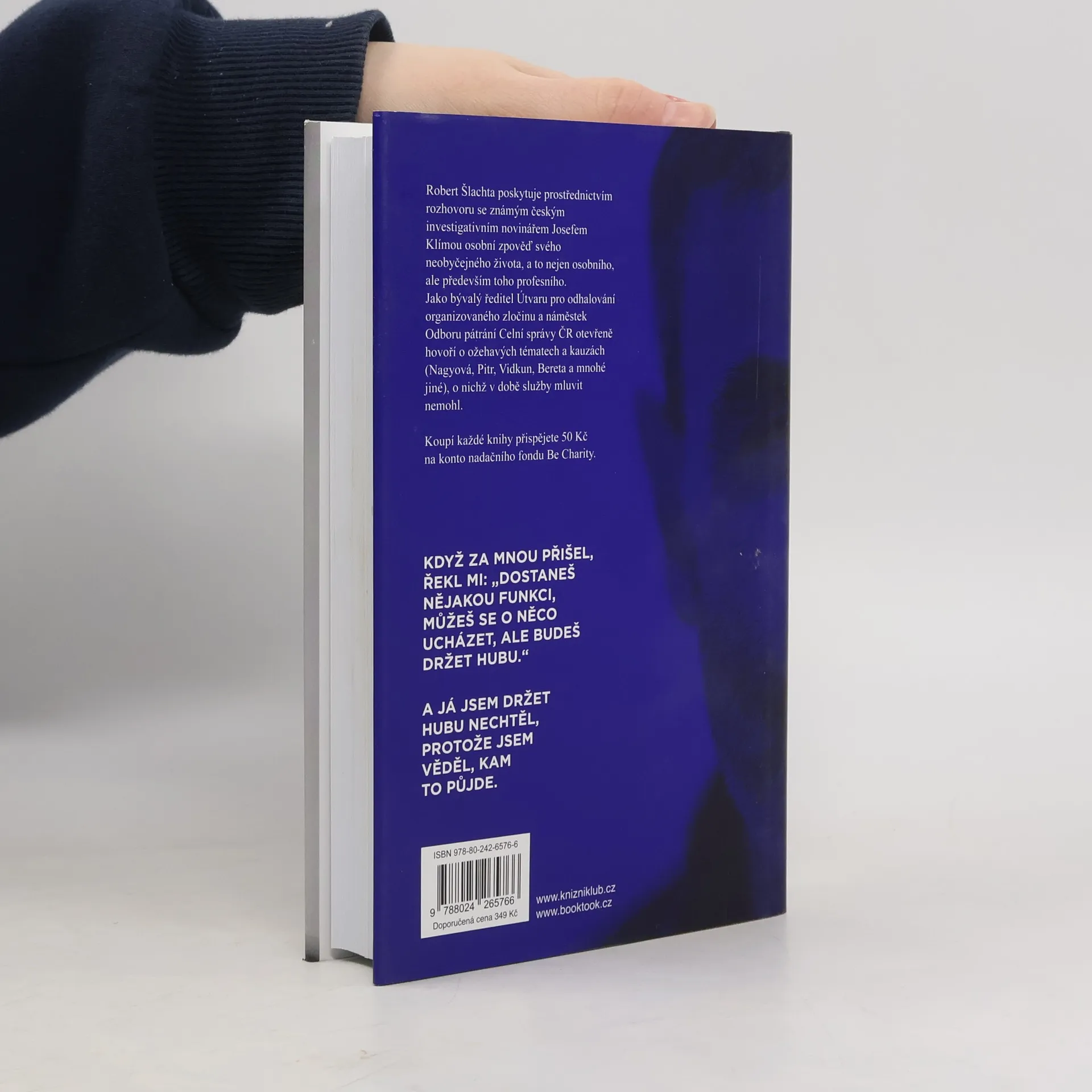 Robert Šlachta poskytuje prostřednictvím rozhovoru se známým českým investigativním novinářem Josefem Klímou osobní zpověď svého neobyčejného života, a to nejen osobního, ale především toho profesního. Jako bývalý ředitel Útvaru pro odhalování organizovaného zločinu a náměstek Odboru pátrání Celní správy ČR otevřeně hovoří o ožehavých tématech a kauzách (Nagyová, Pitr, Vidkun, Bereta a mnohé jiné), o nichž v době služby mluvit nemohl. Koupí každé knihy přispějete 50 Kč na konto nadačního fondu Be Charity.