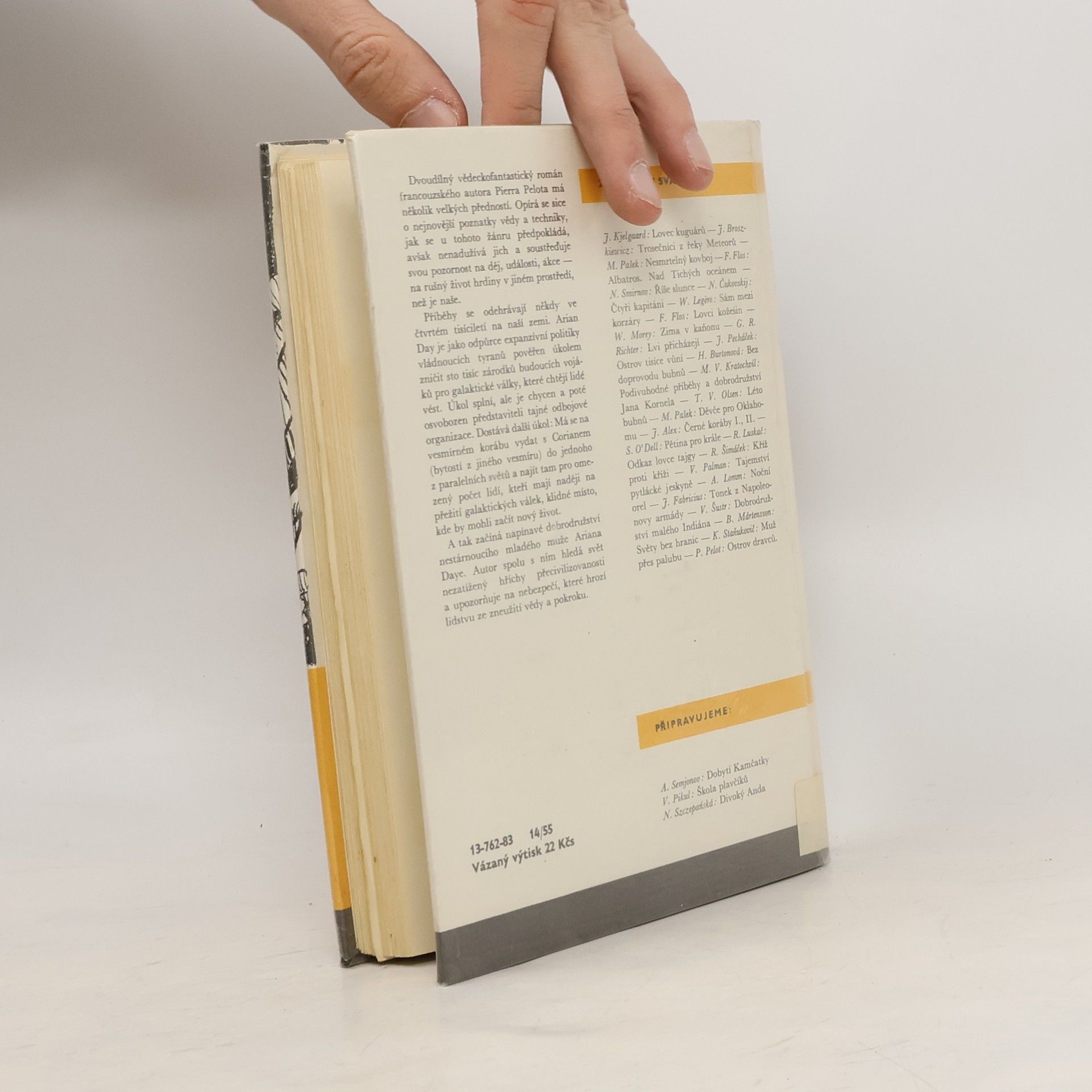 Dvoudílný vědeckofantastický román francouzského autora Pierra Pelota má několik velkých předností. Opírá se sice o nejnovější poznatky vědy a techniky, jak se u tohoto žánru předpokládá, avšak nenadužívá jich a soustřeďuje svou pozornost na děj, události, akce — na rušný život hrdiny v jiném prostředí, než je naše. Příběhy se odehrávají někdy ve čtvrtém tisíciletí na naší zemi. Arian Day je jako odpůrce expanzivní politiky vládnoucích tyranů pověřen úkolem zničit sto tisíc zárodků budoucích vojáků pro galaktické války, které chtějí lidé vést. Úkol splní, ale je chycen a poté osvobozen představiteli tajné odbojové organizace. Dostává další úkol: Má se na vesmírném korábu vydat s Corianem (bytostí z jiného vesmíru) do jednoho z paralelních světů a najít tam pro omezený počet lidí, kteří mají naději na přežití galaktických válek, klidné místo, kde by mohli začít nový život. A tak začíná napínavé dobrodružství nestárnoucího mladého muže Ariana Daye. Autor spolu s ním hledá svět nezatížený hříchy přecivilizovanosti a upozorňuje na nebezpečí, které hrozí lidstvu ze zneužití vědy a pokroku.