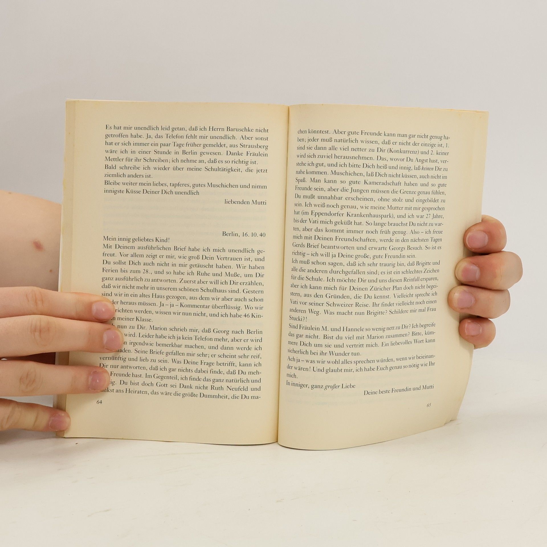 Die deutsche Jüdin Hertha Feiner schickte ihre beiden 'halbjüdischen' Töchter 1938 vor der zunehmenden Verfolgung durch die Nationalsozialisten in ein Internat am Genfer See. Inge war zu diesem Zeitpunkt vierzehn Jahre alt, Marion elf. 124 Briefe, die Hertha Feiner von 1939 bis 1942 aus Berlin an ihre Töchter schrieb, sind erhalten geblieben und wurden durch die Arbeit des Historikers Karl Heinz Jahnke zugänglich gemacht. Die 57 ausgewählten Briefe sind ein bewegendes und historisch wertvolles Dokument. Sie bezeugen die mütterliche Liebe und Sorge, mit der diese gebildete Frau die Entwicklung ihrer Töchter aus der Ferne begleitete, und dokumentieren zugleich den Alltag einer Jüdin im nationalsozialistischen Berlin. Die Briefe schildern die fortschreitende Behinderung jüdischer Bildungseinrichtungen, erzwungene Auswanderungen, Einschränkungen der Bewegungsfreiheit und Kommunikationsmöglichkeiten, sowie die Vertreibung aus bestimmten Wohnvierteln. Der Leidensweg führte bis zur systematischen Deportation und Ausrottung aller Juden. Hertha Feiner wurde als eine der letzten abgeholt und nahm sich im März 1943 auf dem Transport nach Auschwitz das Leben, nachdem sie gezwungen worden war, bei den Vorbereitungen der Deportation mitzuwirken. Ihre Hoffnung, die Töchter könnten nach Berlin zurückkehren und sie vor der Deportation bewahren, erfüllte sich nicht.