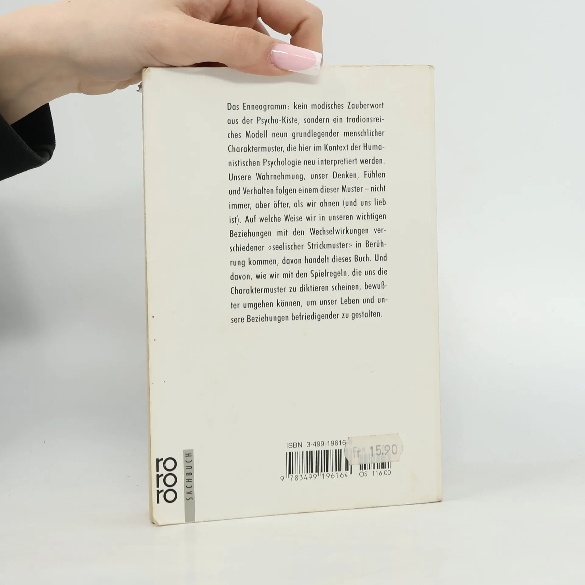 Das Enneagramm: kein modisches Zauberwort aus der Psycho-Kiste, sondern ein traditionsreiches Modell neun grundlegender menschlicher Charaktermuster, die hier im Kontext der Humanistischen Psychologie neu interpretiert werden. Unsere Wahrnehmung, unser Denken, Fühlen und Verhalten folgen einem dieser Muster - nicht immer, aber öfter, als wir ahnen (und uns lieb ist). Auf welche Weise wir in wichtigen Beziehungen mit den Wechselwirkungen verschiedener „seelischer Strickmuster“ in Berührung kommen, davon handelt dieses Buch. Und davon, wie wir mit den Spielregeln, die uns die Charaktermuster zu diktieren scheinen, bewusster umgehen können, um unser Leben und unsere Beziehungen befriedigender zu gestalten.