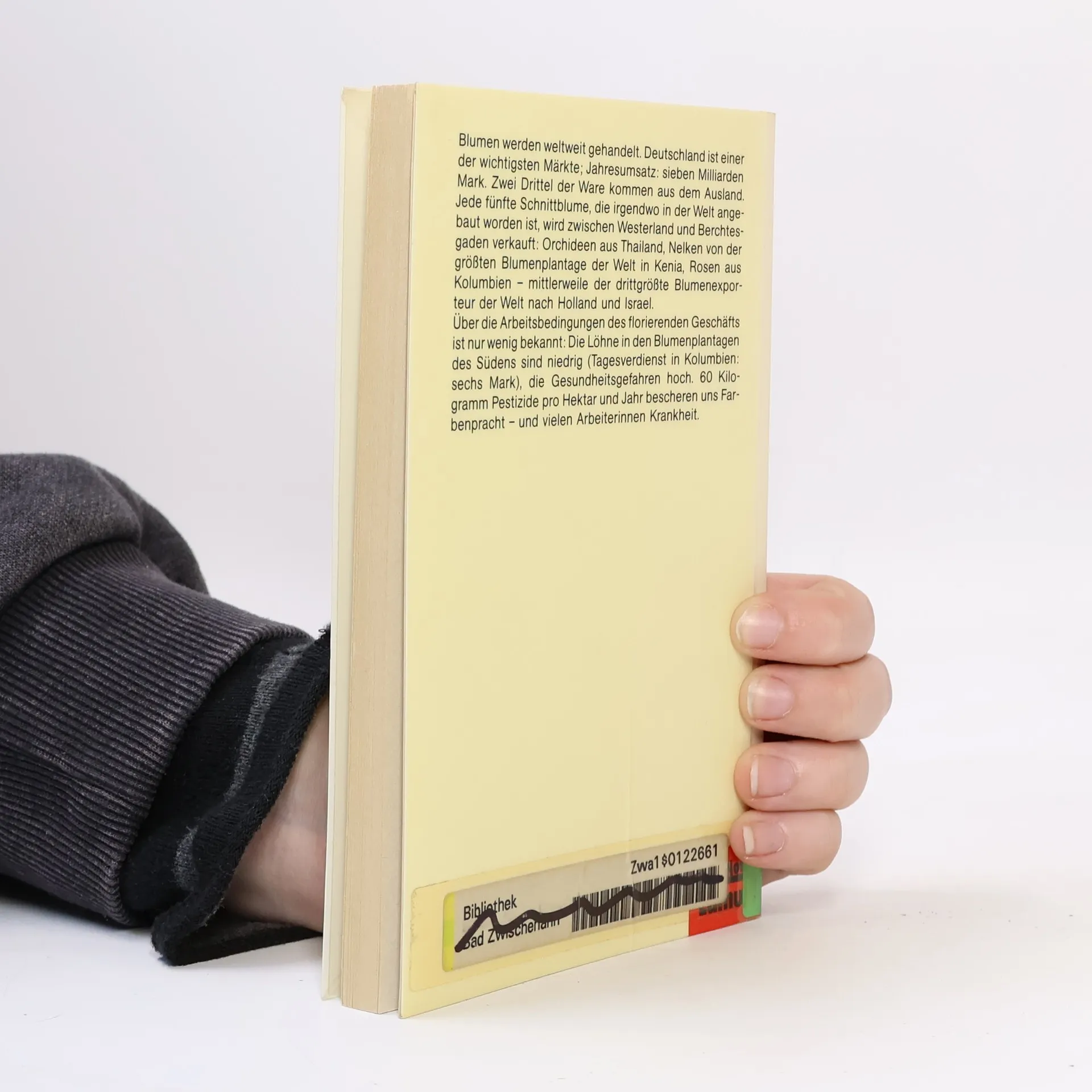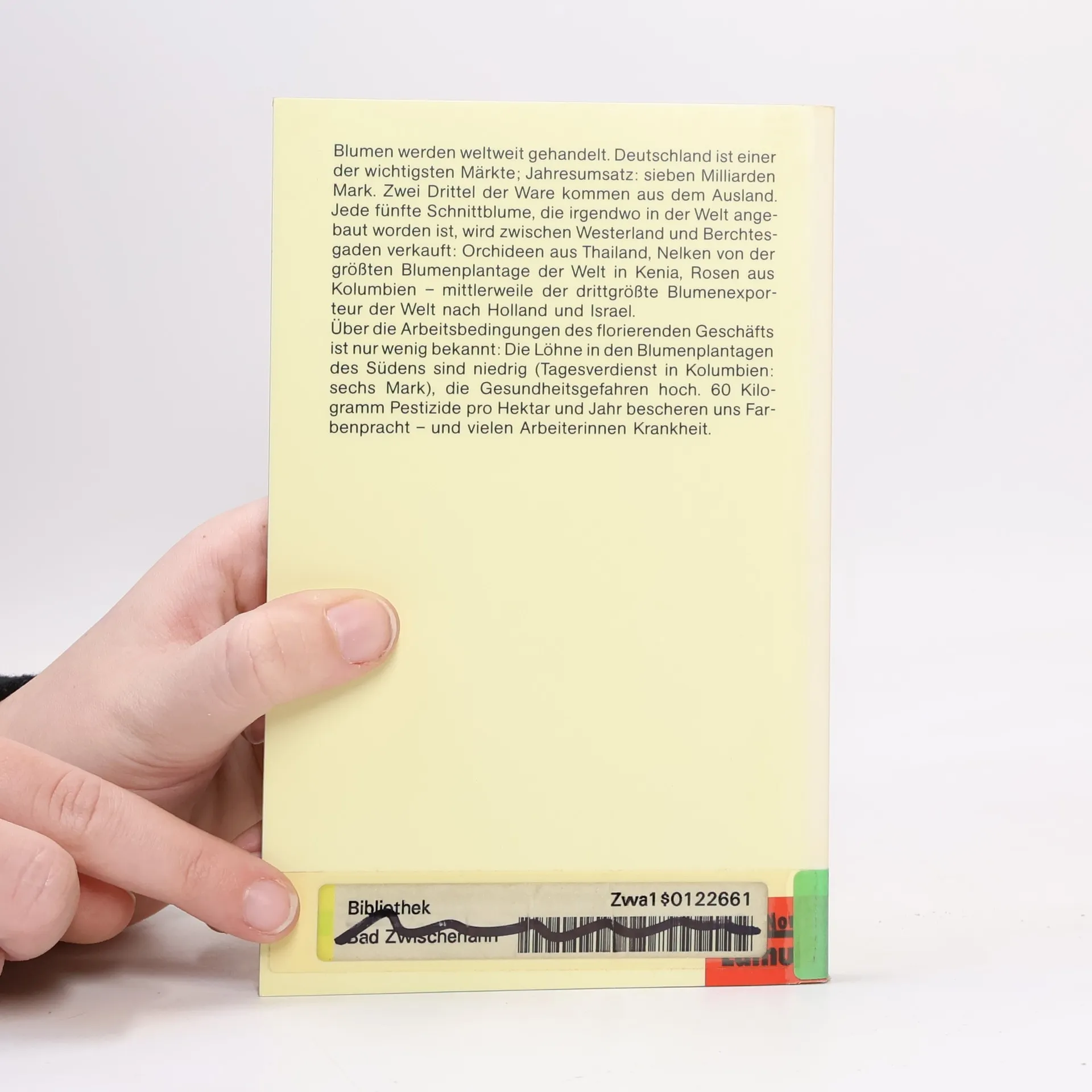 Zahlen, Daten, Fakten rund um das Thema Blumen. Das Buch klärt uns über die meist widrigen Umstände auf, unter denen die Arbeiter auf den Blumenplantagen ihr Geld verdienen müssen. (Quelle: Katalog SBE)