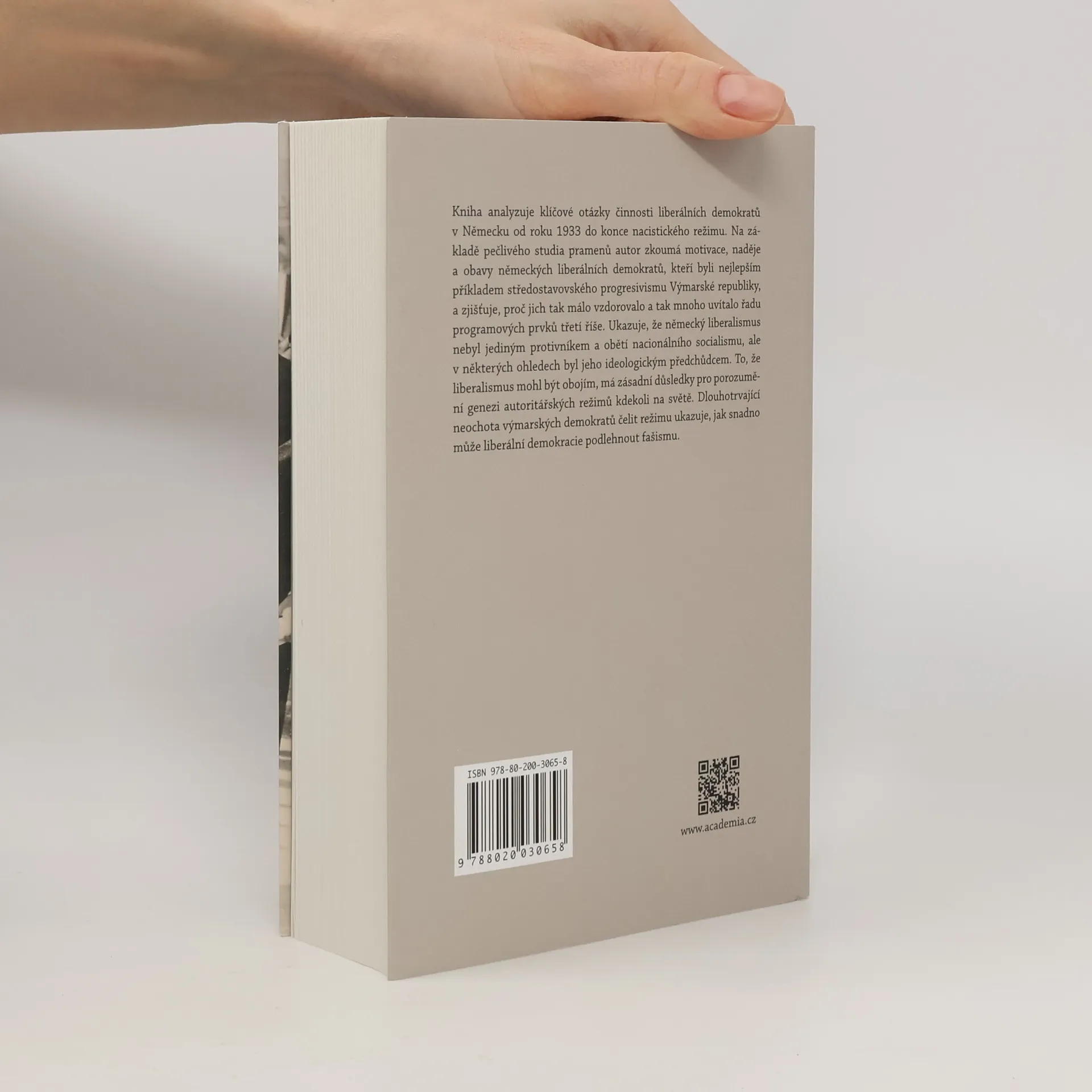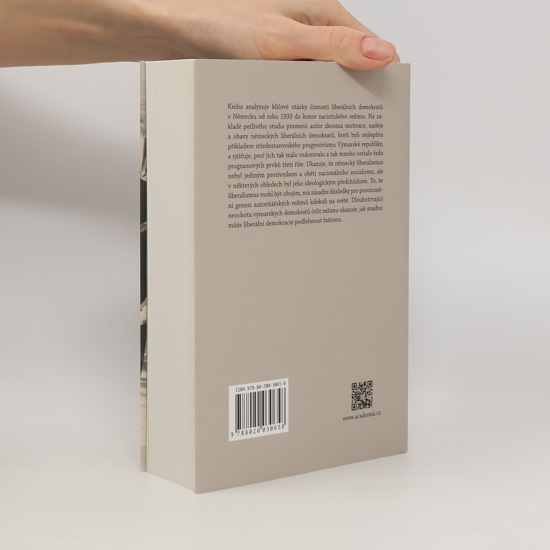 Kniha analyzuje klíčové otázky činnosti liberálních demokratů v Německu od roku 1933 do konce nacistického režimu. Na základě pečlivého studia pramenů autor zkoumá motivace, naděje a obavy německých liberálních demokratů, kteří byli nejlepším příkladem středostavovského progresivismu Výmarské republiky, a zjišťuje, proč jich tak málo vzdorovalo a tak mnoho uvítalo řadu programových prvků třetí říše. Ukazuje, že německý liberalismus nebyl jediným protivníkem a obětí nacionálního socialismu, ale v některých ohledech byl jeho ideologickým předchůdcem. To, že liberalismus mohl být obojím, má zásadní důsledky pro porozumění genezi autoritářských režimů kdekoli na světě. Dlouhotrvající neochota výmarských demokratů čelit režimu ukazuje, jak snadno může liberální demokracie podlehnout fašismu.