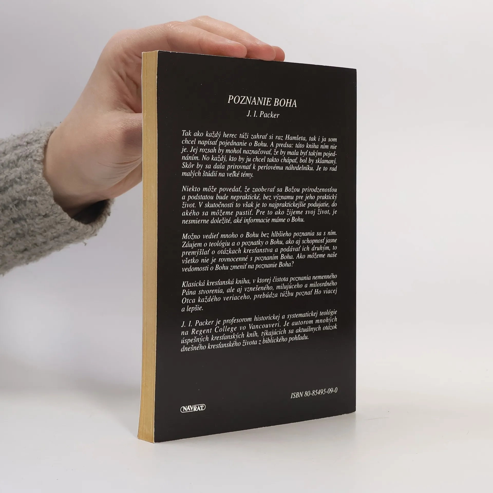 Poznanie Boha je súčasťou učebných textov na väčšine britských a amerických teologických a misíjnych seminároch. Jej slovenský preklad vydaný vydavateľstvom Návrat Domov umožňuje kresťanom na Slovensku prežiť niečo zo zážitku poznávania Boha. Je to zážitok mysle aj srdca. Autor knihy, James I. Packer, je profesor evanjelikálnej teológie na Regent College vo Vancouveri. Okrem toho je členom redakčnej rady popredného evanjelikálneho časopisu Christianity Today, kazateľom a autorom niekoľkých desiatok kníh o teológii a duchovnom živote. Často je nazývaný “Posledný Puritán”.