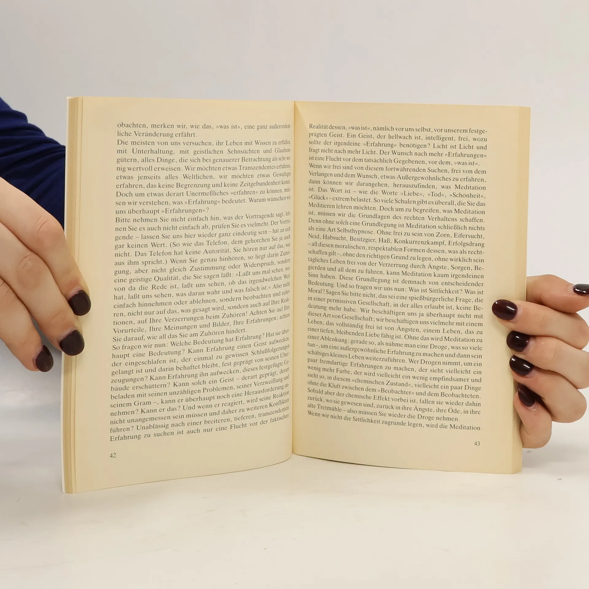 Die gesammelten Aufzeichnungen von Vorträgen, Gesprächen und Diskussionen Krishnamurtis in London, Amsterdam, Paris und Saanen (Schweiz) lassen die Vielfalt der Themen erkennen, mit denen sich der berühmte indische Weisheitslehrer im Laufe seines langen Lebens beschäftigt hat. Sie reichen vom Freiheitsbegriff bis zur wissenschaftlichen Forschung und ihren praktischen wie ethischen Folgen. Neben solchen abstrakten, theoretischen Fragestellungen setzt sich der Autor auch mit ganz aktuellen Themen wie der wachsenden Gewalt in den Industriestaaten, mit dem um sich greifenden Fremden- und Rassenhaß und der grassierenden Umweltvernichtung auseinander, allerdings nicht in belehrend moralisierender Form, sondern in Rede und Gegenrede. Insofern sind seine Bücher unverändert zeitgemäß und thematisch von brisanter Aktualität.