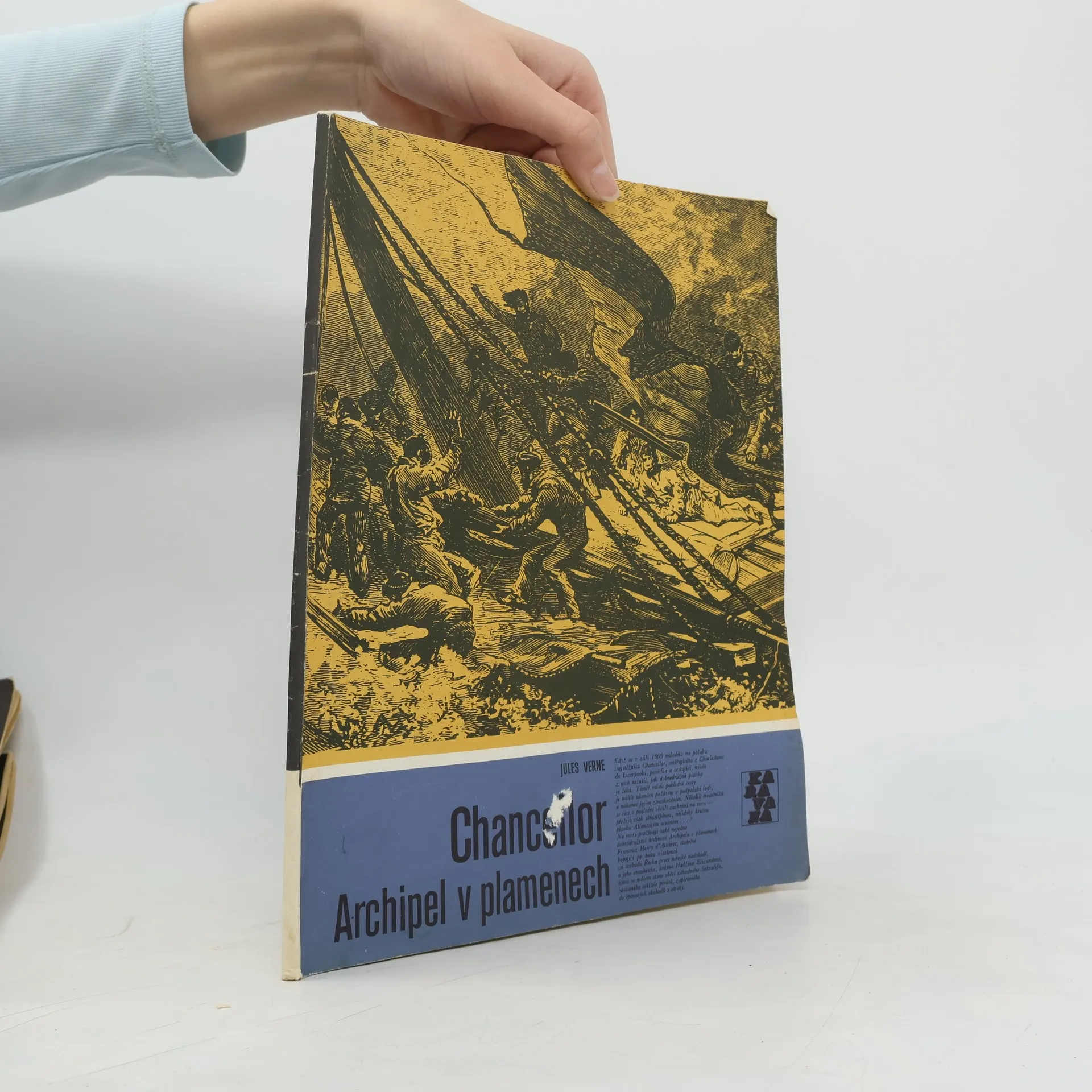 Souborné vydání dvou kratších Verneových prací, první vyšla poprvé v roce 1875, druhá v roce 1884. Chancellor – Když se v září 1869 nalodila na palubu trojstěžníku Chancellor, směřujícího z Charlestonu do Liverpoolu posádka a cestující, nikdo z nich netušil, jak dobrodružná plavba ječeká. Téměř měsíc poklidné cesty je náhle ukončen požárem v podpalubí lodi, a nakonec jejím ztroskotáním. Několik trosečníků se sice v poslední chvíli zachrání na voru, ale čeká je strastiplná, nelidsky krutá plavba Atlantickým oceánem. Celý příběh je líčen prostřednictvím deníku jednoho z trosečníků, pana J. R. Kazallona. Archipel v plamenech – V roce 1827 se odehrává příběh z řeckých ostrovů. Jeho hrdiny jsou Francouz Henry dʼAlbaret, statečně bojující po boku vlastenců za svobodu Řecka proti turecké nadvládě a jeho snoubenka, krásná Hadžina Elizundová. Ta se málem stane obětí záhadného Sakratifa, obávaného velitele pirátů, zapleteného do špinavých obchodů s otroky.