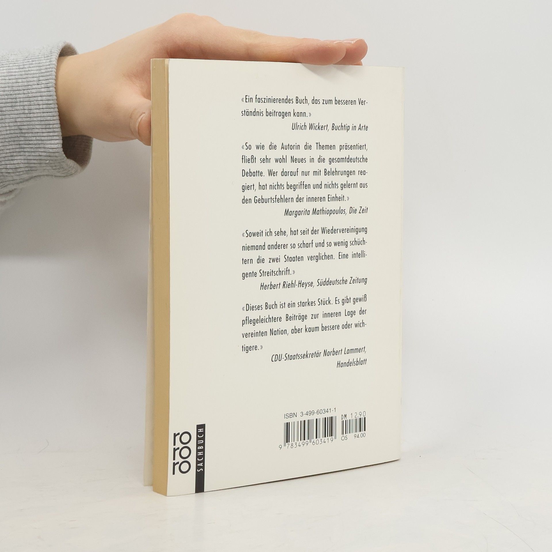 Jüngsten Umfragen zufolge akzeptiert nur noch jeder dritte Ostdeutsche die westliche Ordnung, und jeder zweite gibt an, daß es ihm heute schlechter geht als erwartet. Dieser Unzufriedenheit spürt Daniela Dahn bei sich und anderen nach: erklärend, rechtfertigend, polemisierend. Mit verschärfter Angriffslust schildert sie aber auch die im wahrsten Wortsinn kopflose Reaktion vieler „Wessis“ auf solch herausfordernden „Oststolz“. Wer es wagt, Vergangenes zu verteidigen und die eigene Biographie nicht zu befreien, gilt als unverbesserliche ideologische „Altlast“, womöglich sogar als Demokratie untauglich.