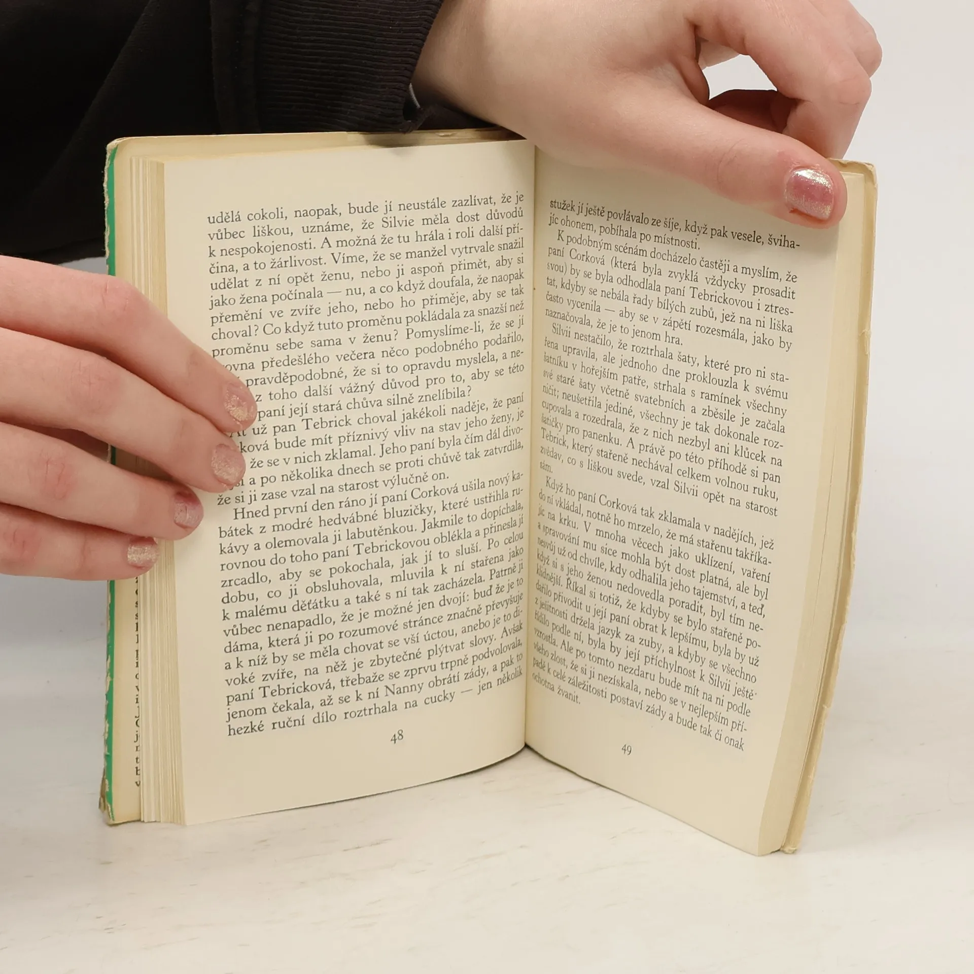 Dvě novely z raného období tvorby anglického avantgardního spisovatele dvacátých let, kritika a esejisty, kterými se stal známým ve světové literatuře a v nichž v satirickém a ironickém vyprávění zpracovává fantasticko-absurdní náměty, přičemž se nevyhýbá i hlubším etickým problémům. V první novele (Dáma v lišku, 1922) zachycuje nečekanou proměnu mladé krásné ženy v lišku, její postupné odlidšťování i reakce jejího milujícího manžela. Druhá (Člověk v zoologické zahradě, 1924) s humorem líčí situaci člověka, který se nabídne zoologické zahradě jako exemplář homo sapiens a který chce izolací od lidí, v kleci v pavilónu lidoopů, řešit své citové problémy. Předmluvu napsal Radoslav Nenadál.