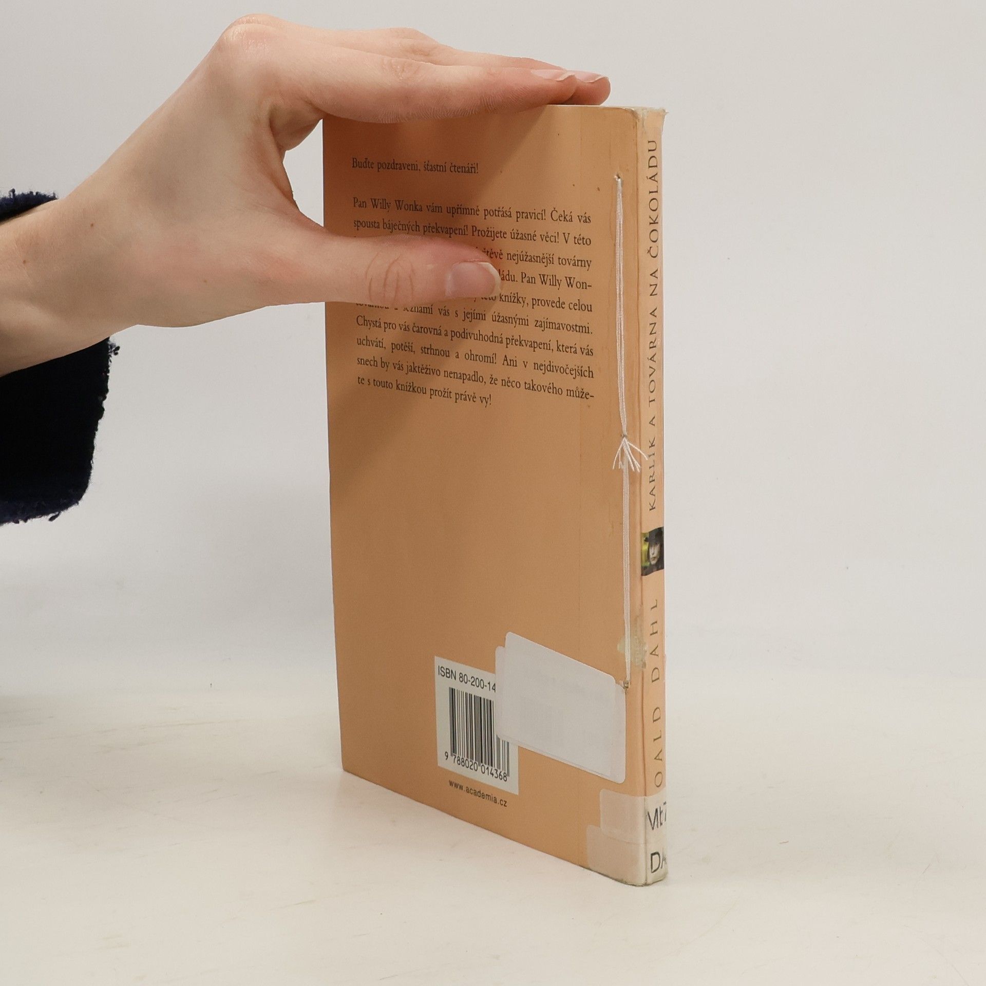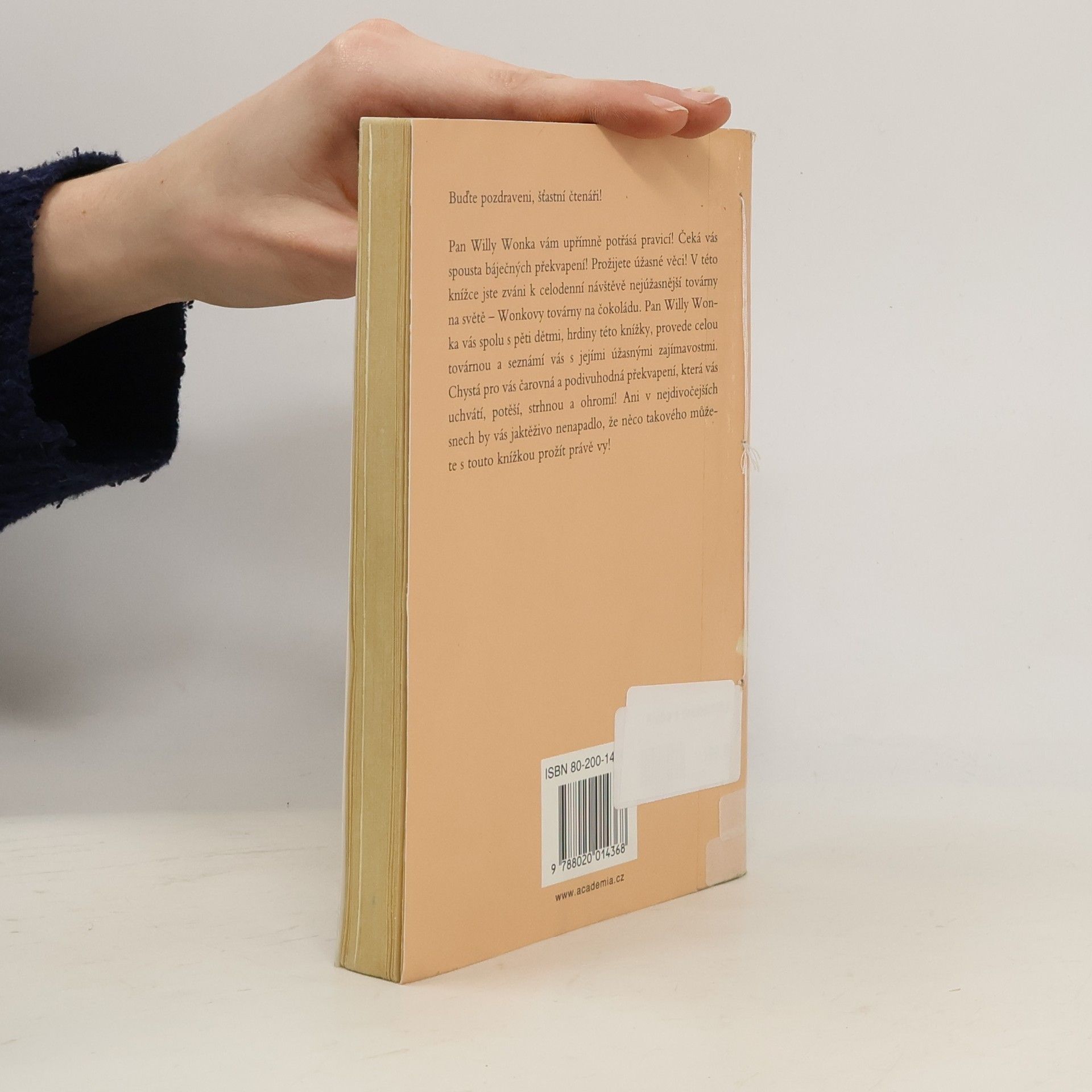 Moderní pohádkový příběh je plný fantazie, hravosti a jemného humoru o chudém chlapci, kterému se splní jeho velký sen. Vhodné pro děti mladšího školního věku. Karlík žije ve městě, kde stojí slavná Wonkova továrna na čokoládu. Chlapec si však čokolády moc neužije, protože jeho rodina je velice chudá. Jednoho dne se na něj ale usměje štěstí a on má možnost, spolu s dalšími čtyřmi dětmi a jejich doprovodem a svým dědečkem, navštívit proslulou továrnu na sladkosti. Sám pan Willy Wonka je provede mnoha zajímavými sály, v nichž se vyrábí ty nejúžasnější, nejsladší, nejoriginálnější dobroty. Ukáže jim, jak se mísí čokoláda vodopádem, předvede jim žvýkačkový automat, televizní čokoládu i cvičené veverky, které louskají ořechy tak, jak to nikdo jiný neumí. Největší překvapení však na Karlíka čeká na závěr celé exkurze. Doplněno fotografiemi z filmu Tima Burtona. Dotisk v r. 2007 (ISBN 978-80-200-1436-8)