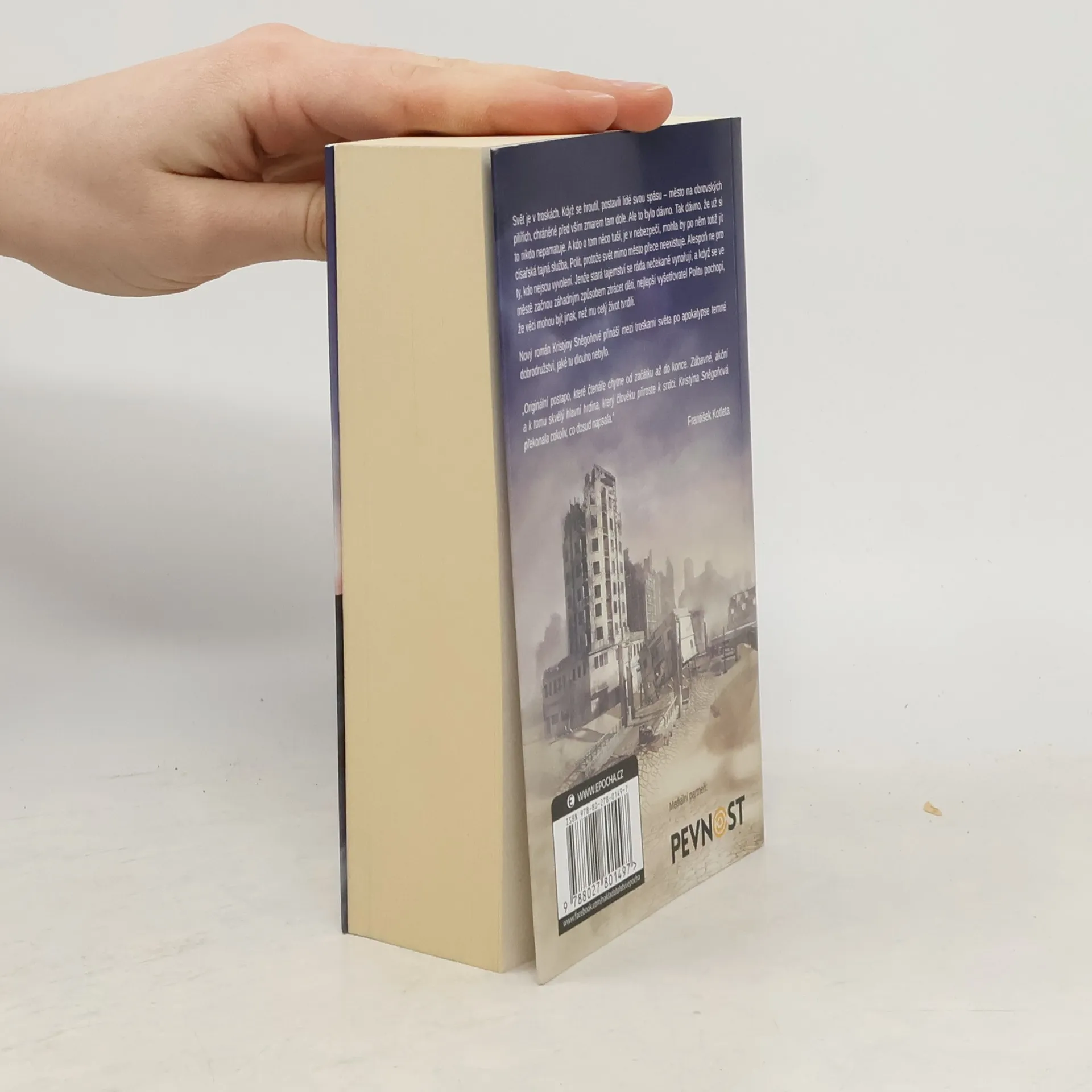 Svět je v troskách. Když se hroutil, postavili lidé svou spásu – město na obrovských pilířích, chráněné před vším zmarem tam dole. Ale to bylo dávno. Tak dávno, že už si to nikdo nepamatuje. A kdo o tom něco tuší, je v nebezpečí, mohla by po něm totiž jít císařská tajná služba, Polit, protože svět mimo město přece neexistuje. Alespoň ne pro ty, kdo nejsou vyvolení. Jenže stará tajemství se ráda nečekaně vynořují, a když se ve městě začnou záhadným způsobem ztrácet děti, nejlepší vyšetřovatel Politu pochopí, že věci mohou být jinak, než mu celý život tvrdili. Nový román Kristýny Sněgoňové přináší mezi troskami světa po apokalypse temné dobrodružství, jaké tu dlouho nebylo.