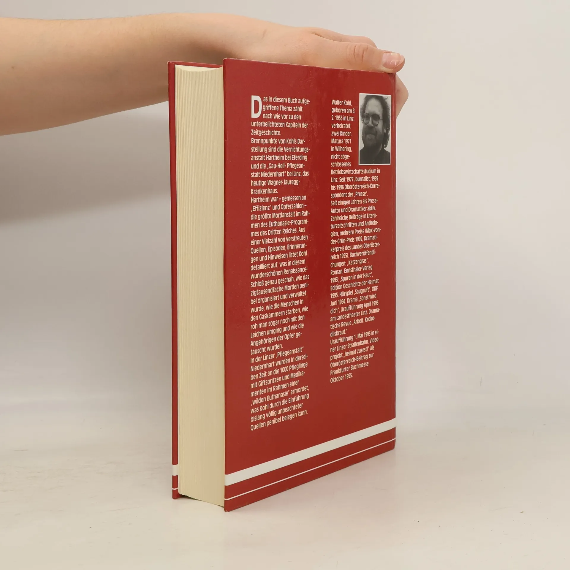 Schwerpunkte von Kohls Darstellung sind die Vernichtungsanstalt Hartheim bei Eferding und die „Gau-Heil- und Pflegeanstalt Niedernhart in Linz. Hartheim war - gemessen an “Effizienz" und Opferzahlen - die größte Mordanstalt im Rahmen des Euthanasie-Programms des Dritten Reiches.