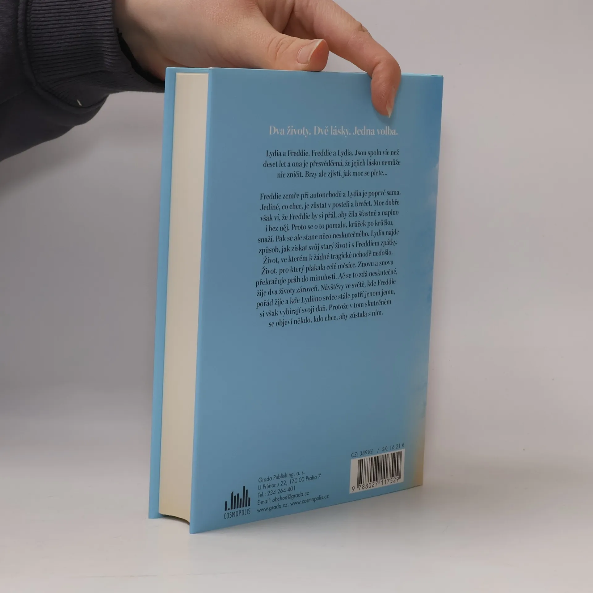 Dva životy. Dvě lásky. Jedna volba. Lydia a Freddie. Freddie a Lydia. Jsou spolu víc než deset let a ona je přesvědčená, že jejich lásku nemůže nic zničit. Brzy ale zjistí, jak moc se plete… Freddie zemře při autonehodě a Lydia je poprvé sama. Jediné, co chce, je zůstat v posteli a brečet. Moc dobře však ví, že Freddie by si přál, aby žila šťastně a naplno i bez něj. Proto se o to pomalu, krůček po krůčku, snaží. Pak se ale stane něco neskutečného. Lydia najde způsob, jak získat svůj starý život i s Freddiem zpátky. Život, ve kterém k žádné tragické nehodě nedošlo. Život, pro který plakala celé měsíce. Znovu a znovu překračuje práh do minulosti. Ač se to zdá neskutečné, žije dva životy zároveň. Návštěvy ve světě, kde Freddie pořád žije a kde Lydiino srdce stále patří jenom jemu, si však vybírají svoji daň. Protože v tom skutečném se objeví někdo, kdo chce, aby zůstala s ním.